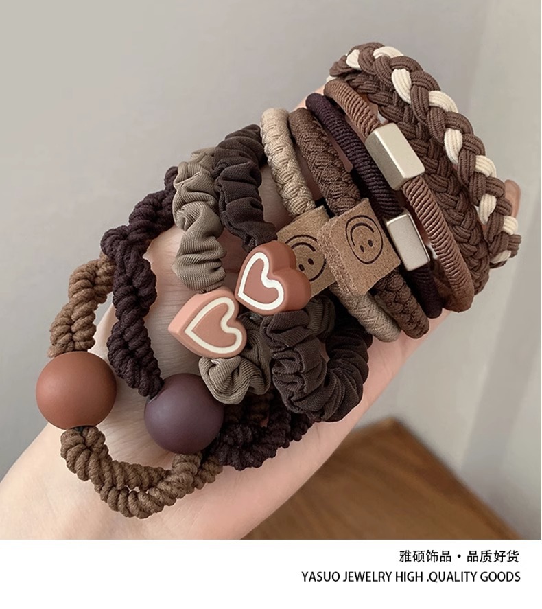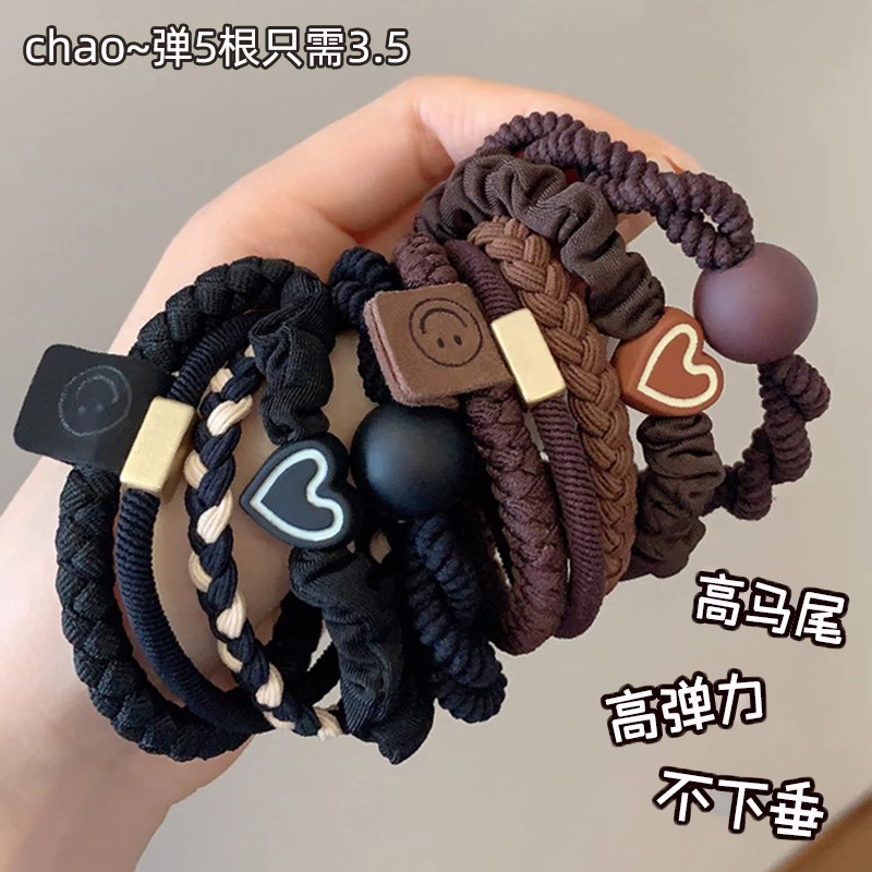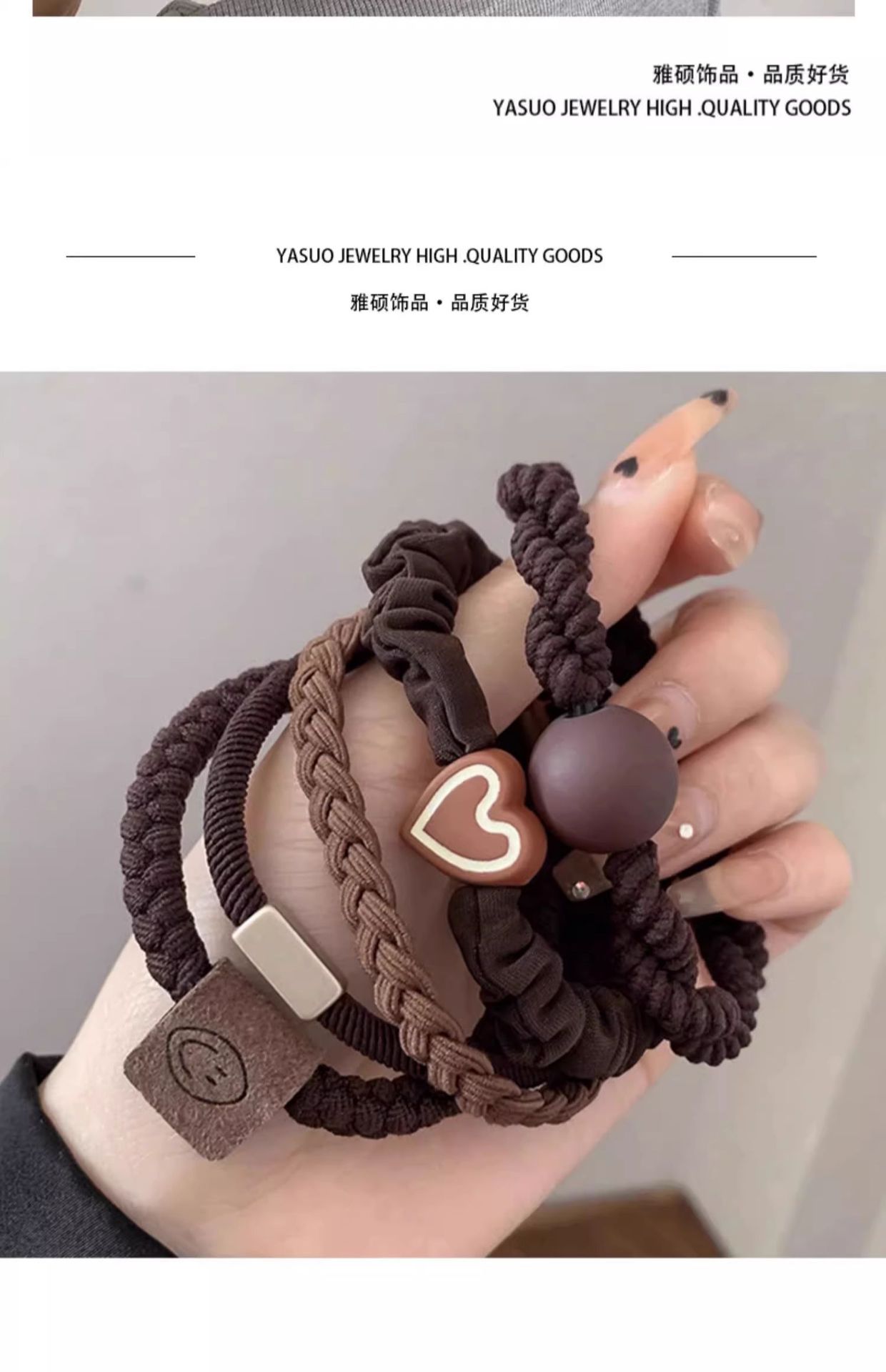 • 다크 브라운 사랑 고무 밴드 5 피스 세트