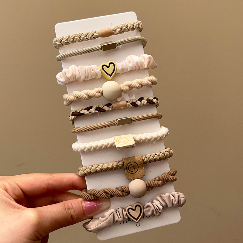 높은 스트레치 내구성 고무 텐더 여성용 헤어 타이 카레 컬러 간단한 높은 포니 테일 헤어 로프 헤어 로프 고급 센스 2024 새로운 헤어 링