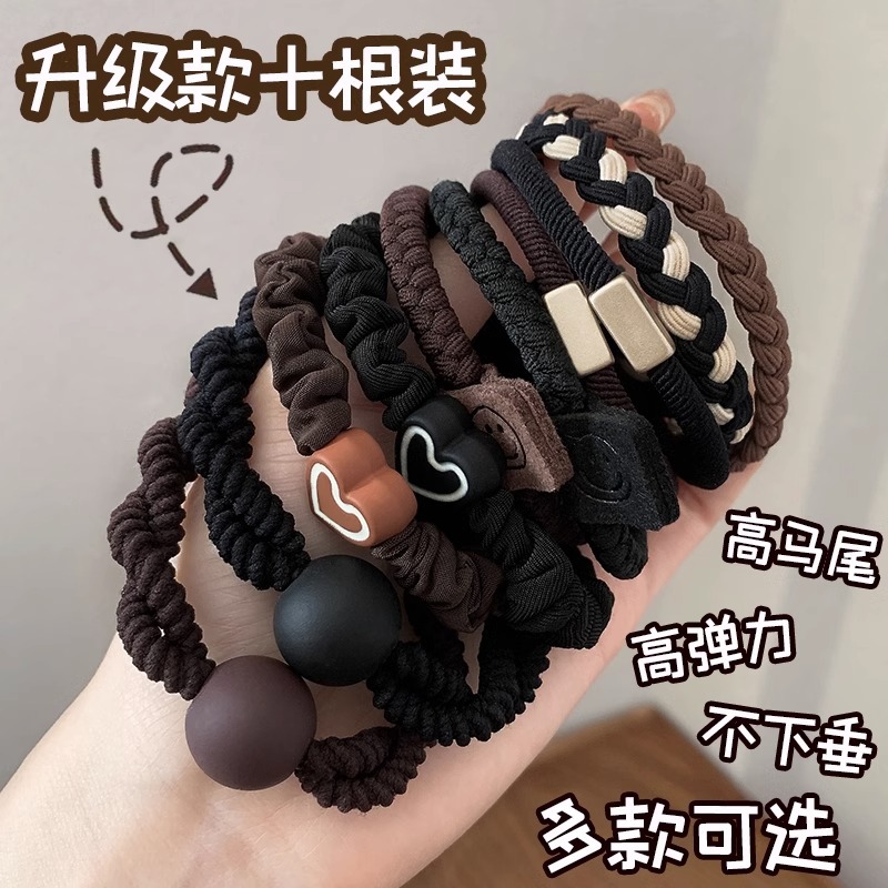 높은 스트레치 내구성 고무 텐더 여성용 헤어 타이 카레 컬러 간단한 높은 포니 테일 헤어 로프 헤어 로프 고급 센스 2024 새로운 헤어 링스토어 가기