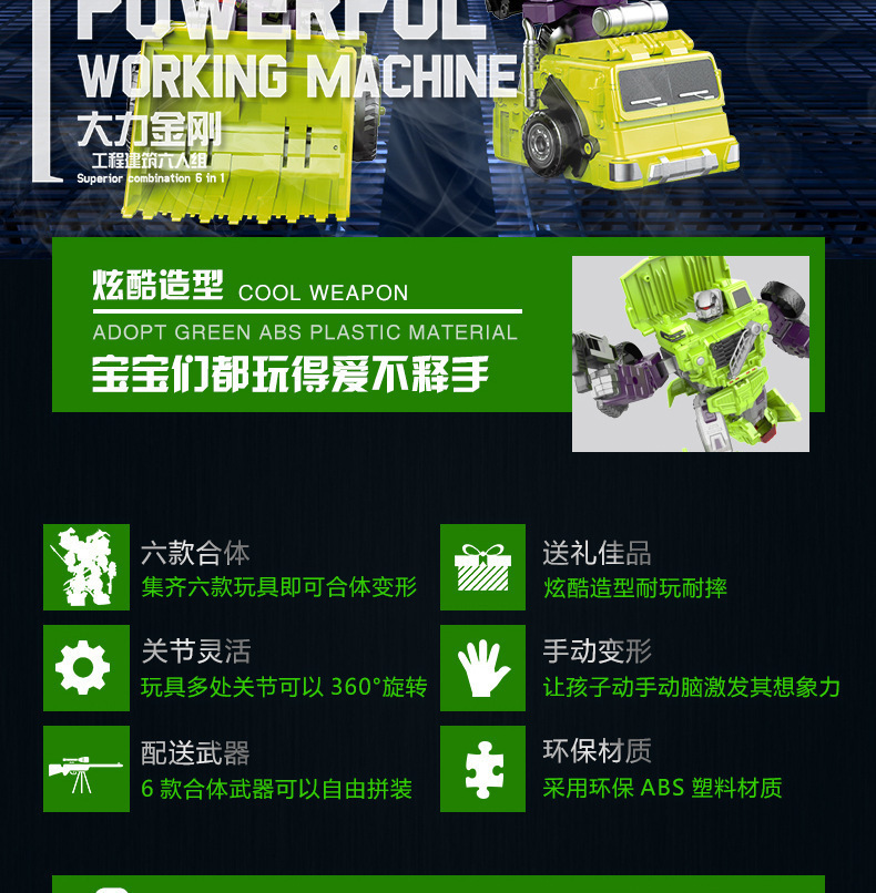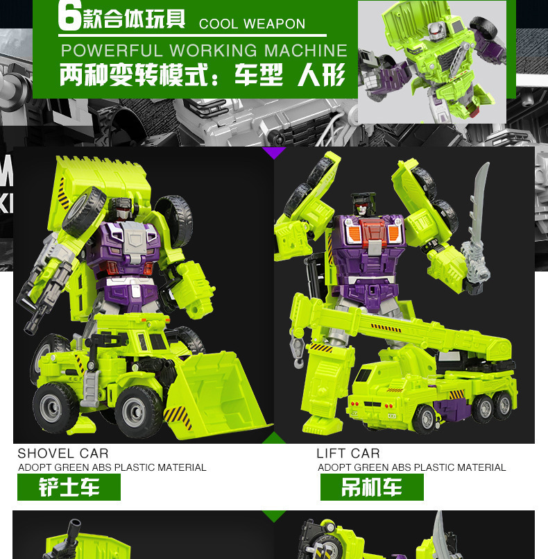 Jinjiang Hercules 엔지니어링 트럭 변형 장난감 모델 King Kong 로봇 굴삭기 어린이 소년 626b 도매