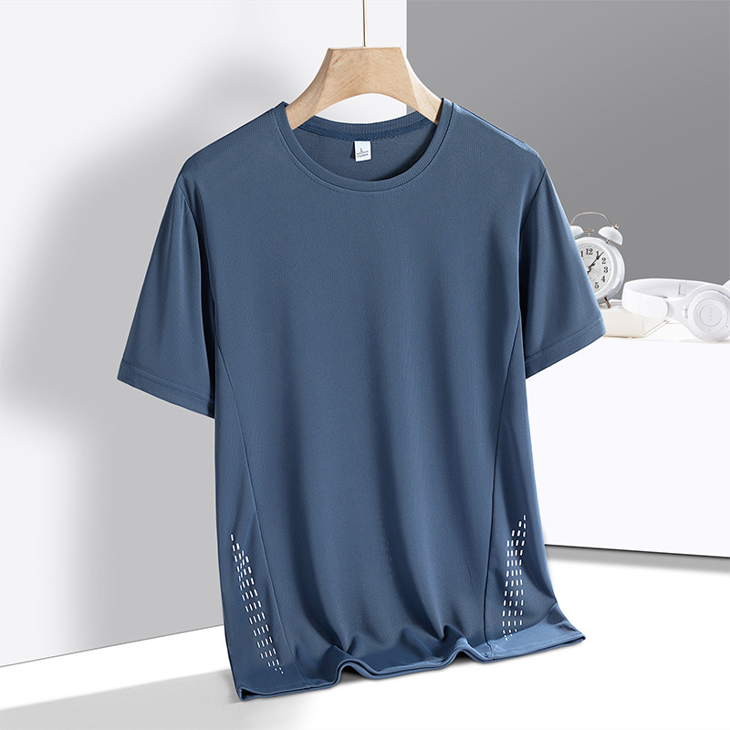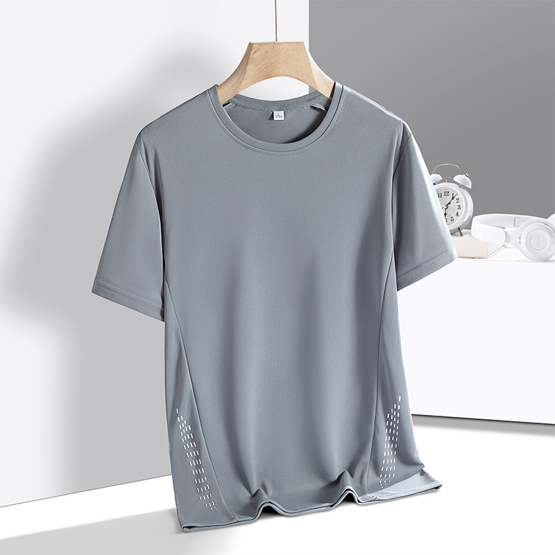 아이스 실크 반팔 티셔츠 남성용 여름 느슨한 단색베이스 셔츠 크루 넥 풀오버 청소년 스포츠 빠른 건조 남성 최고 트렌디스토어 가기