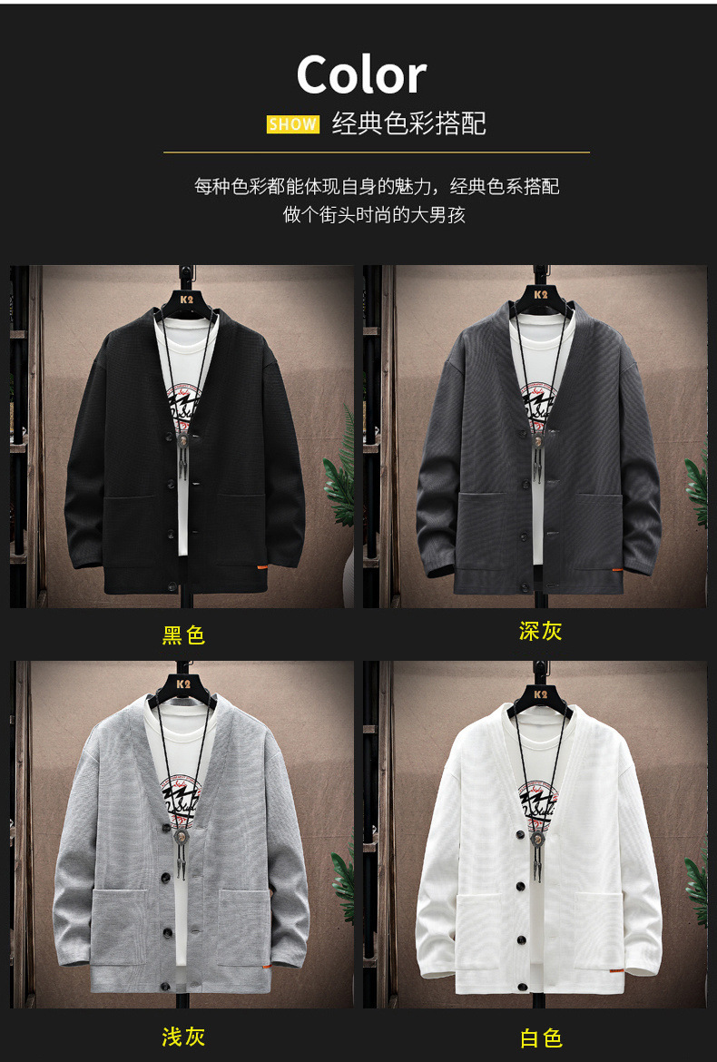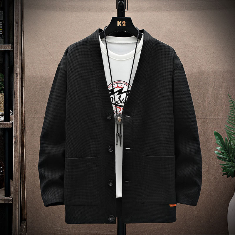 국경 간 대외 무역 카디건 스웨터 남성 솔리드 컬러 패딩 포켓 카디건 재킷 V-Neck 와플 칼리지 패션 에디션 인스토어 가기
