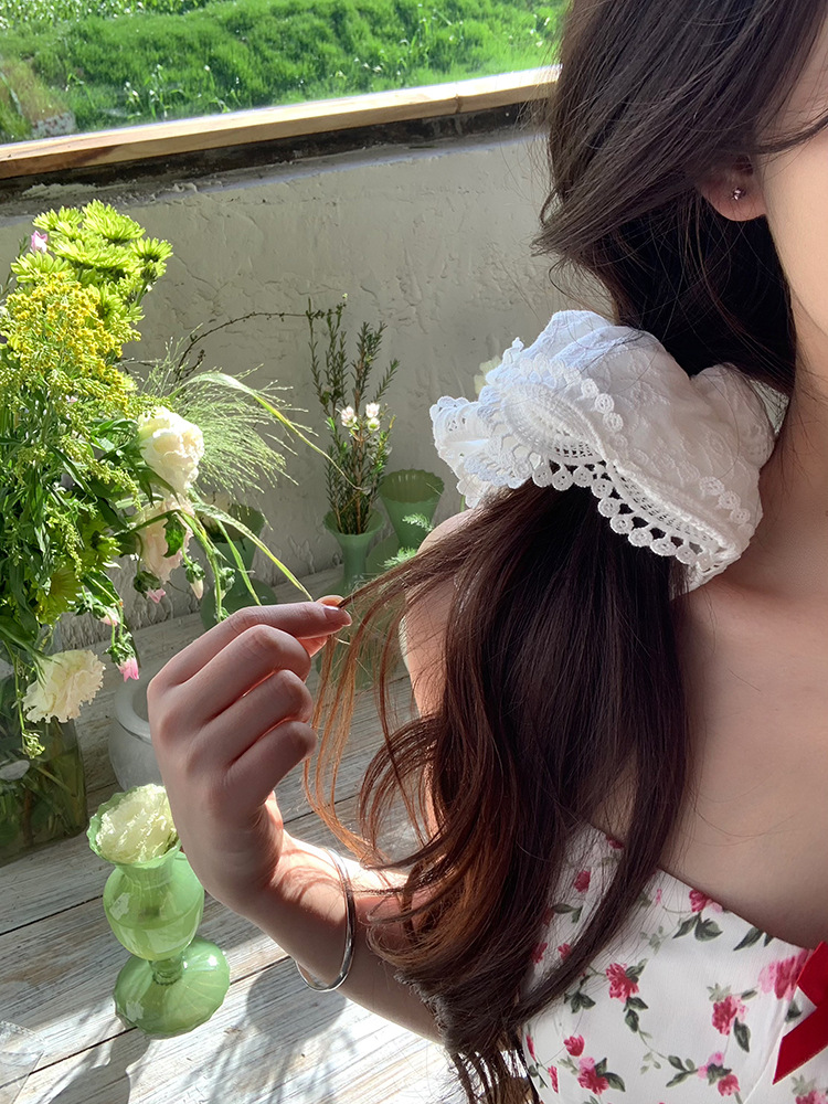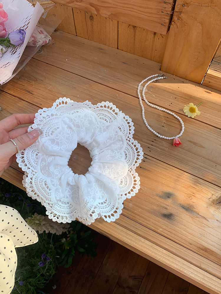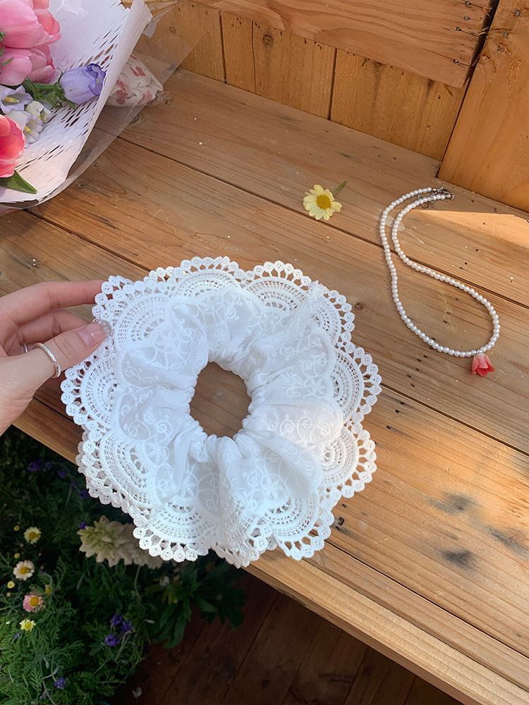 여름 새로운 화이트 레이스 헤어 링 달콤한 대형 장내 링 넥타이 헤어 하이 그레이드 헤어 로프 헤어 액세서리 헤드 코리안 스타일 헤드 플라워