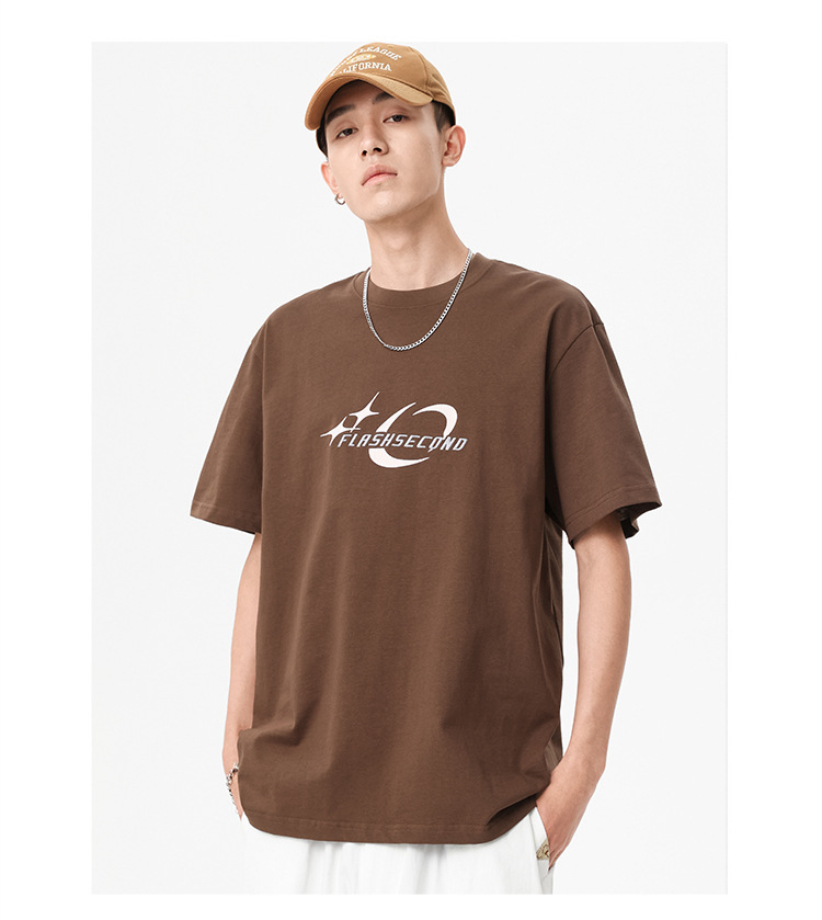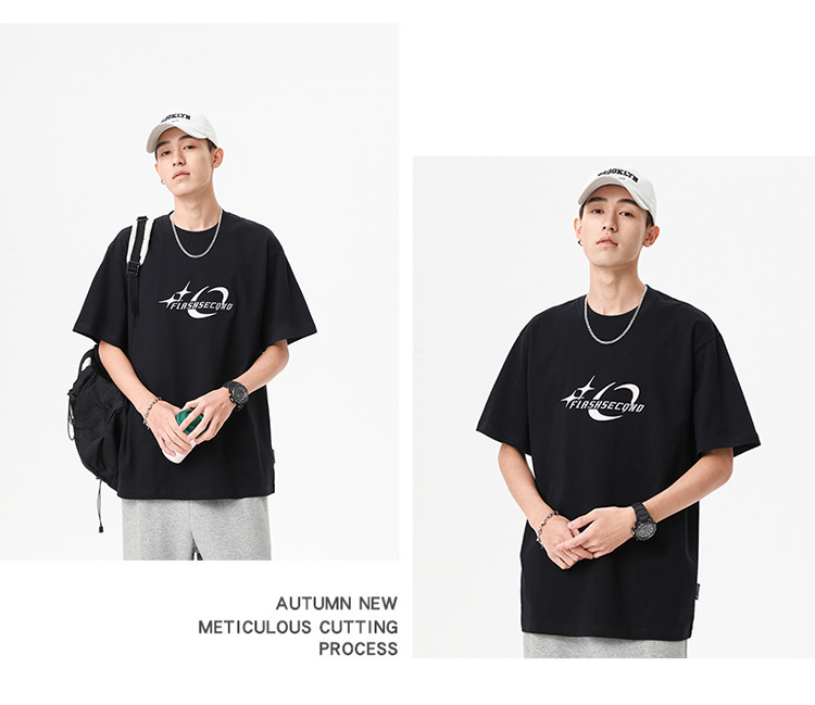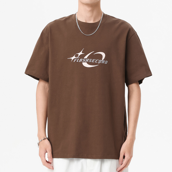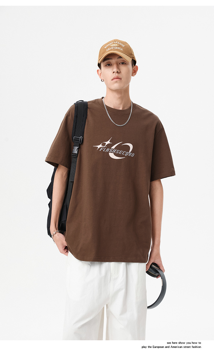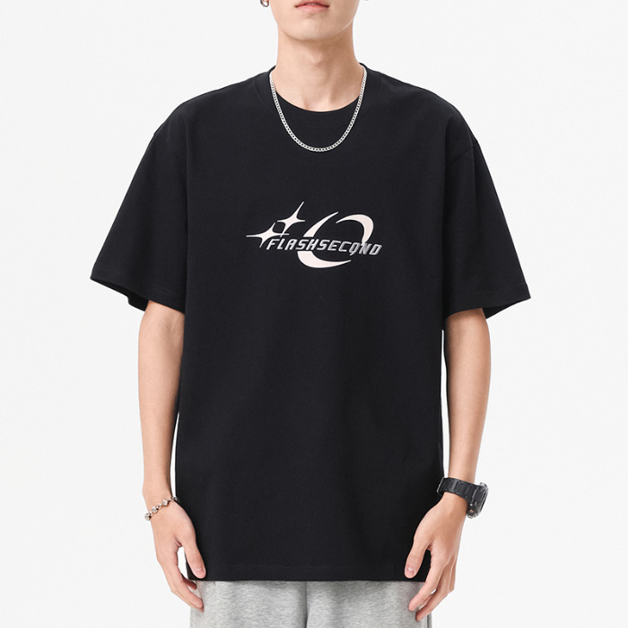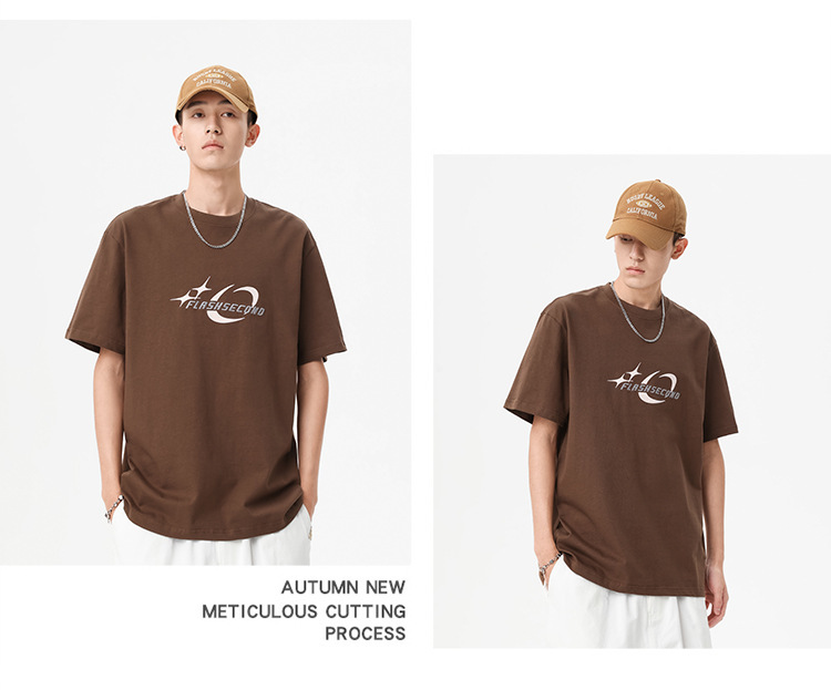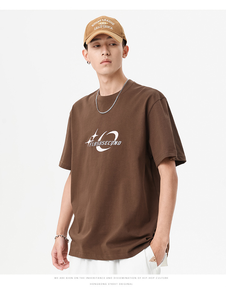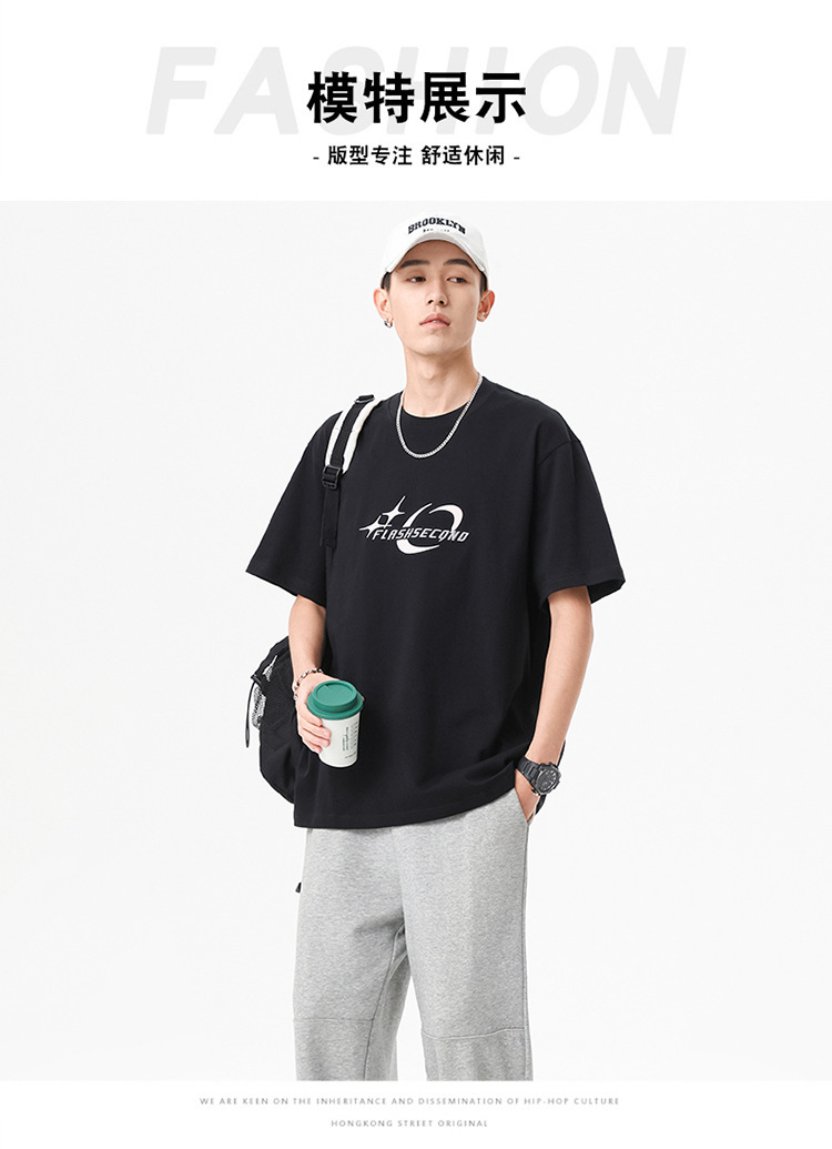 2024 빈티지 프린트 퓨어 코튼 반팔 남성 트렌디 브랜드 아메리칸 스타일 느슨한 백 타워 유행 반소매 남성용 탑