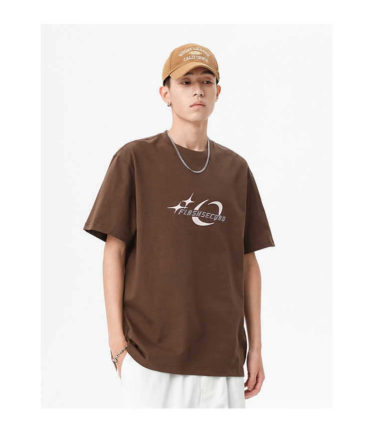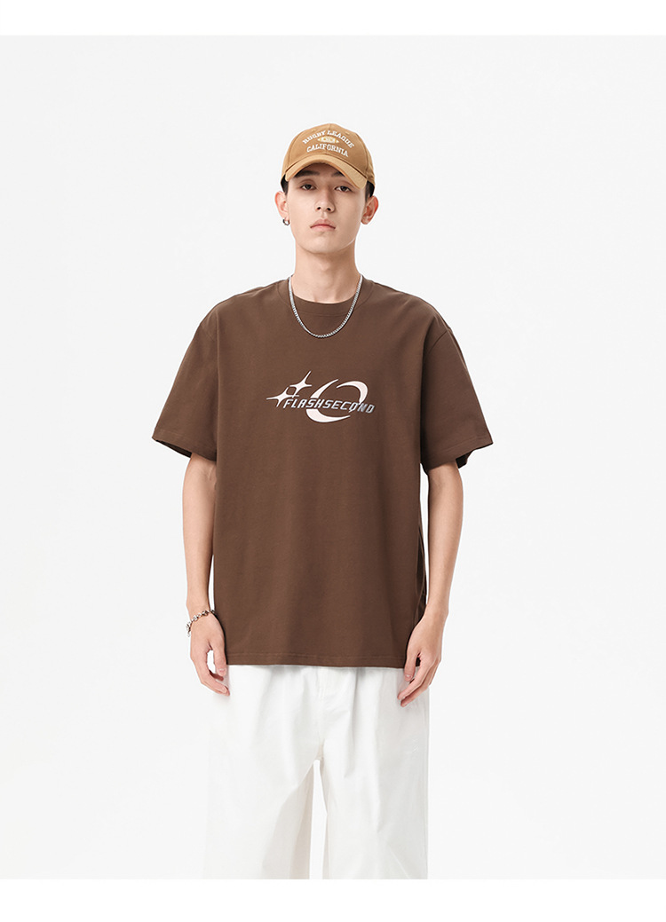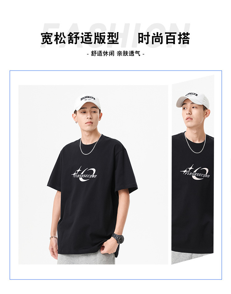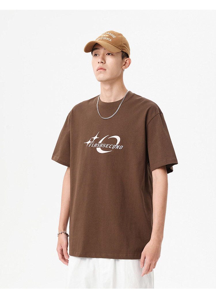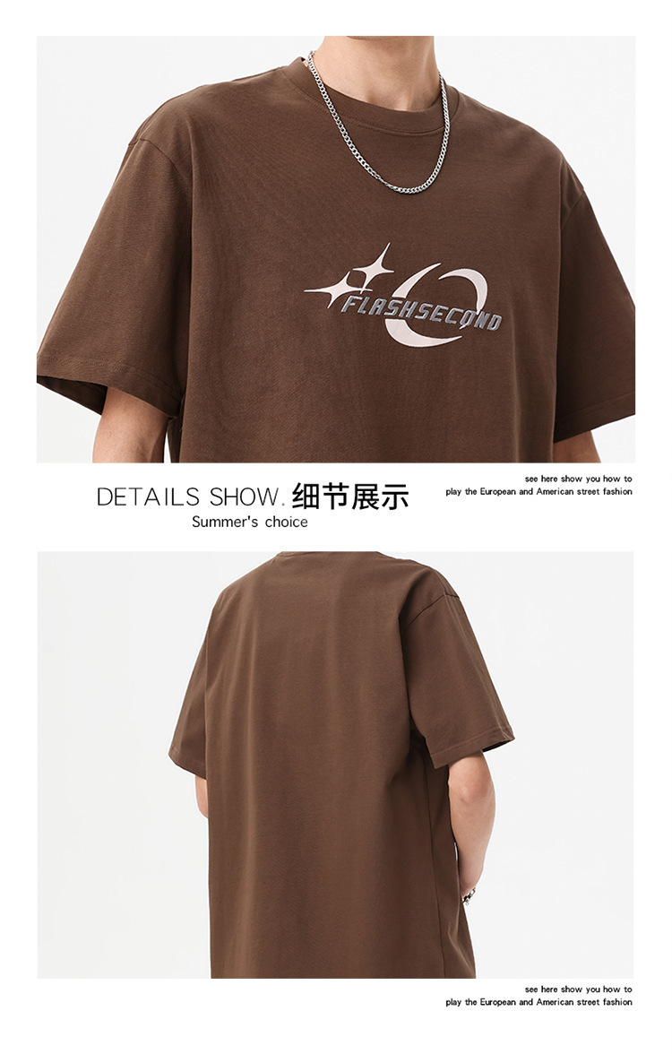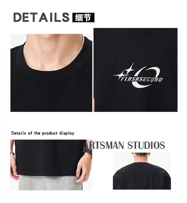 2024 빈티지 프린트 퓨어 코튼 반팔 남성 트렌디 브랜드 아메리칸 스타일 느슨한 백 타워 유행 반소매 남성용 탑