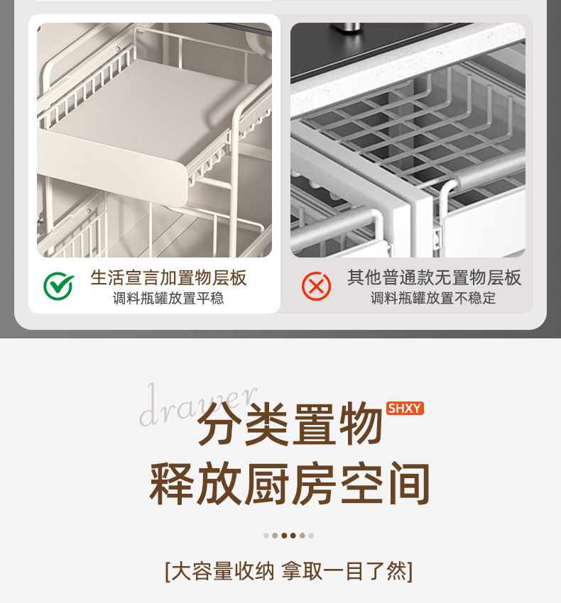 주방 싱크 스토리지 랙 다기능 스토리지 랙 양념 랙 팟 캐비닛 드로잉 가능한 바구니 레이어드 선반