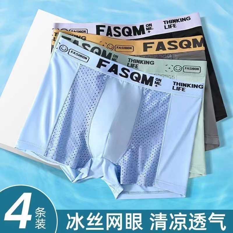 청소년 메쉬 아이스 실크 남자 속옷 남자 여름 얇은 소년 복서 중간 허리 통기성 대형 스포츠 바지스토어 가기