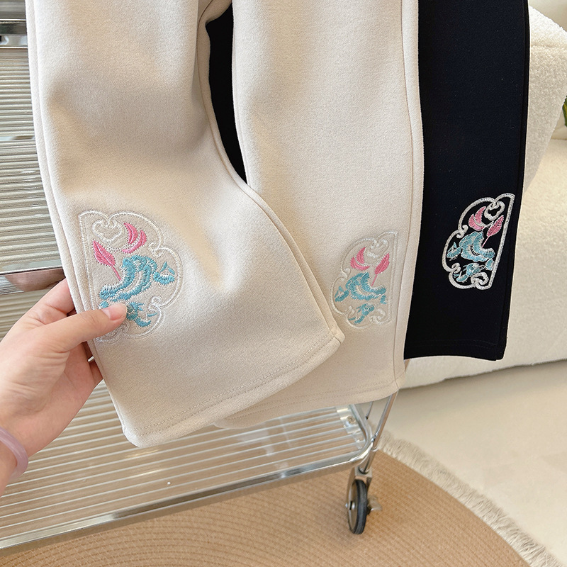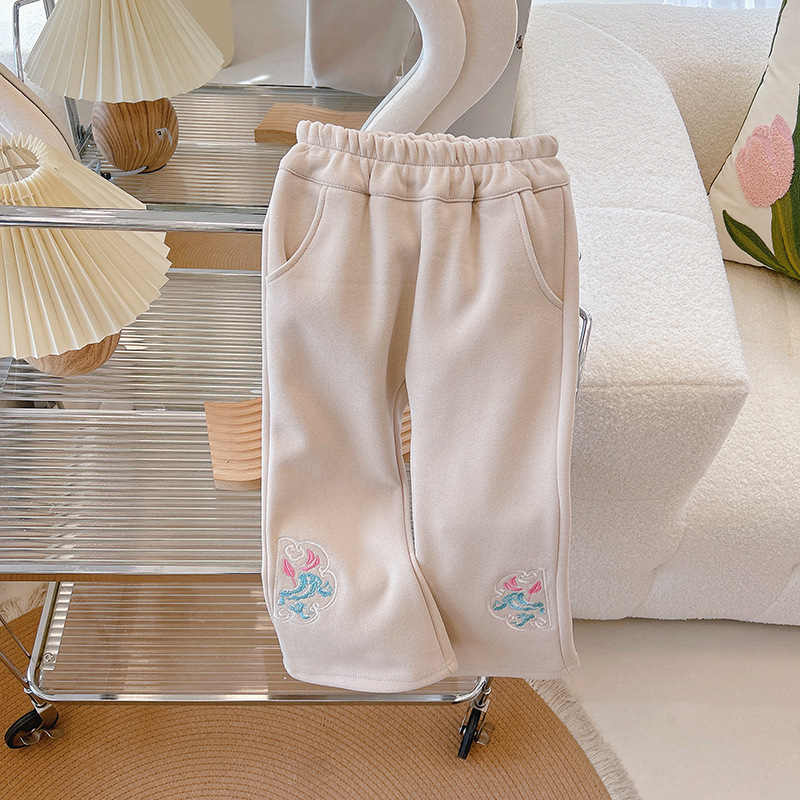 소녀 바지 Guofeng 봄 2024 새로운 어린이 마이크로 바지 어린이와 어린 소녀를위한 세련된 자수 바지스토어 가기