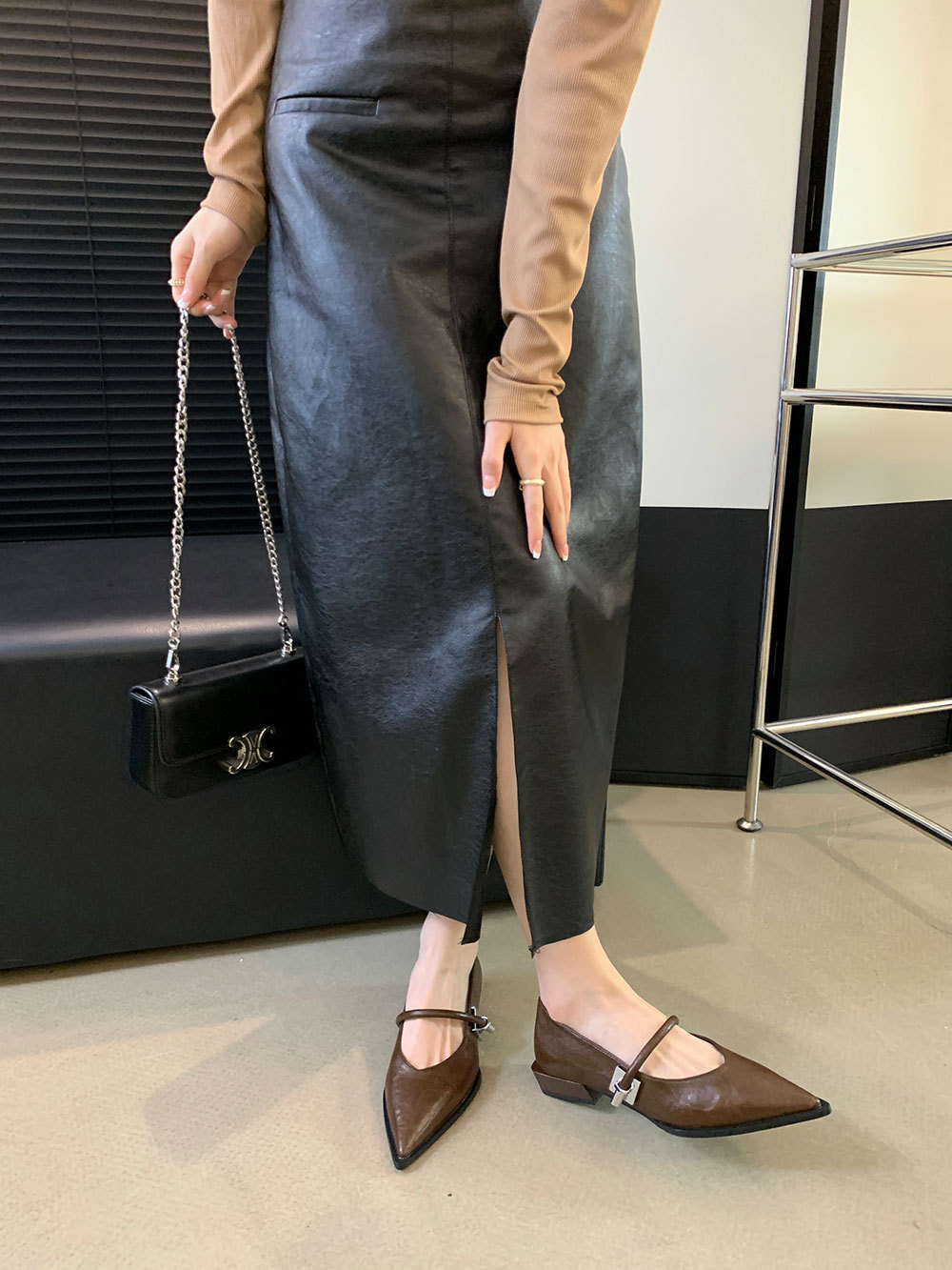 프랑스 스타일 낮은 발 뒤꿈치 신발 샤넬 스타일 뾰족한 신발 여성의 2024 봄과 가을 새로운 메리 제인 여성 신발 두꺼운 뒤꿈치 신발스토어 가기