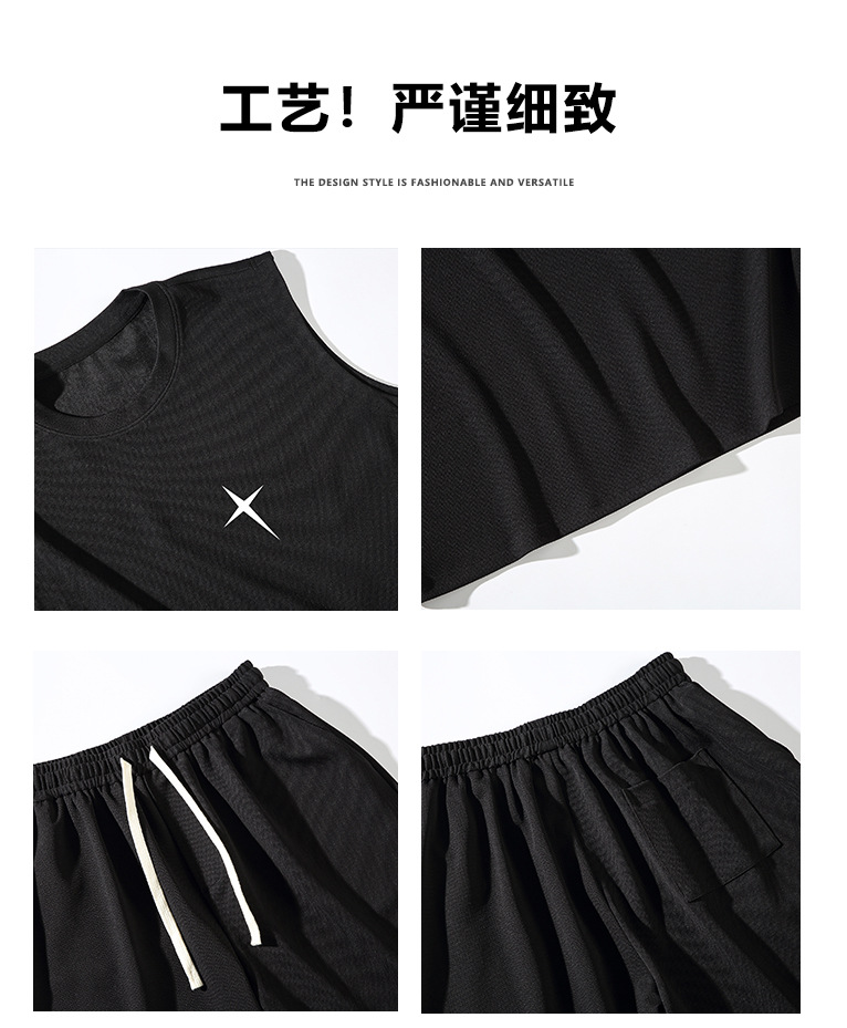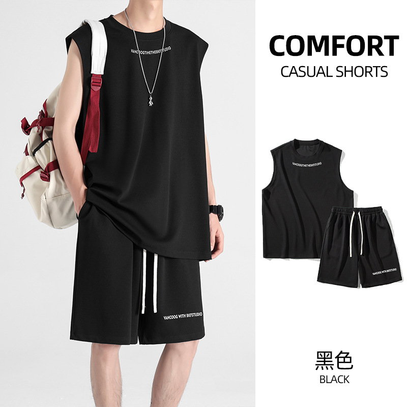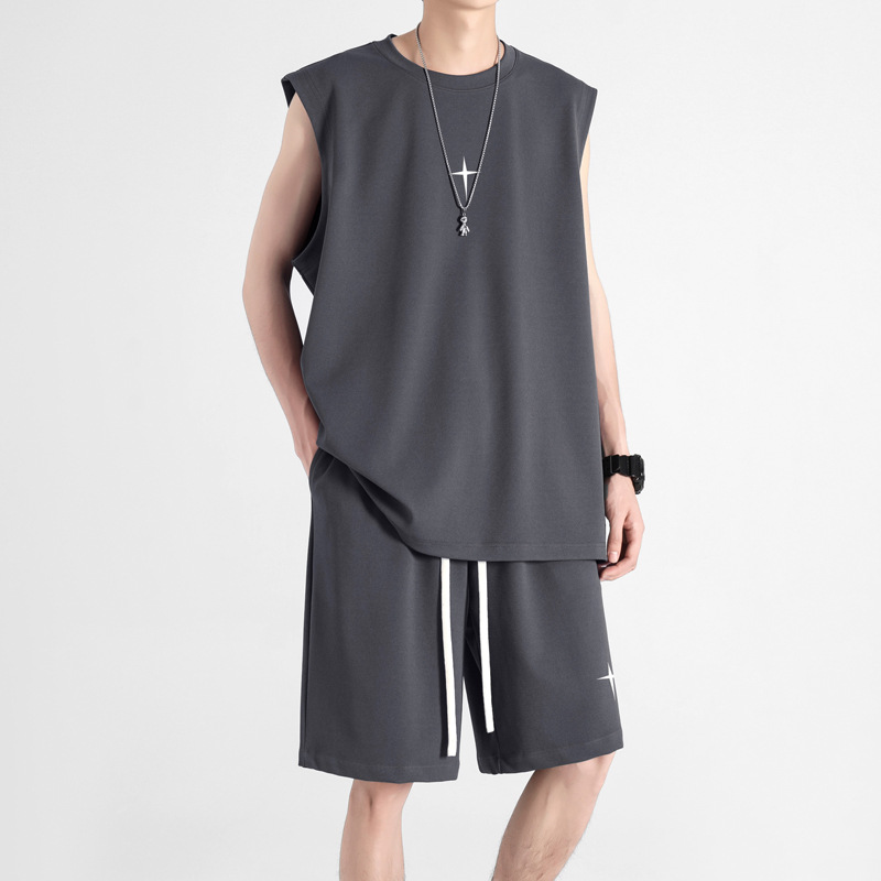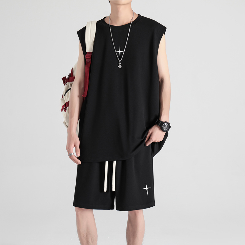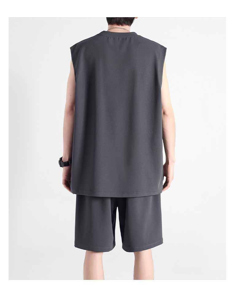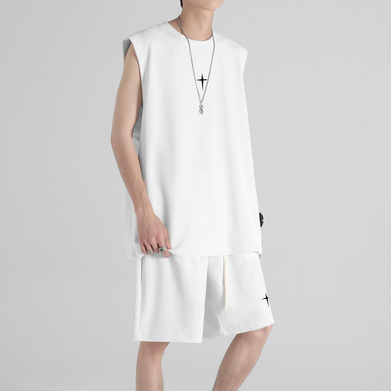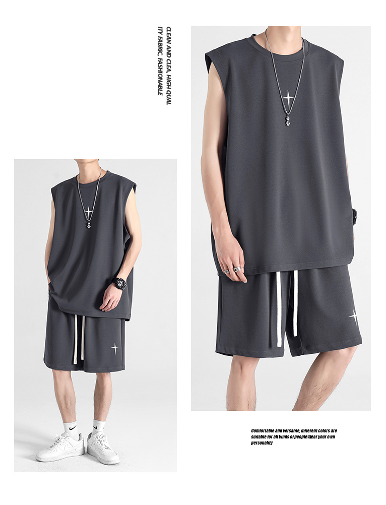 아이스 실크 스포츠 세트 남자 여름 유행 브랜드 남자 조끼 짧은 캐주얼 느슨한 남자의 빠른 건조 남성 의류 유행