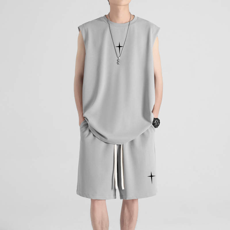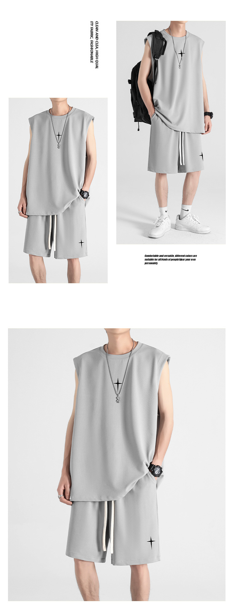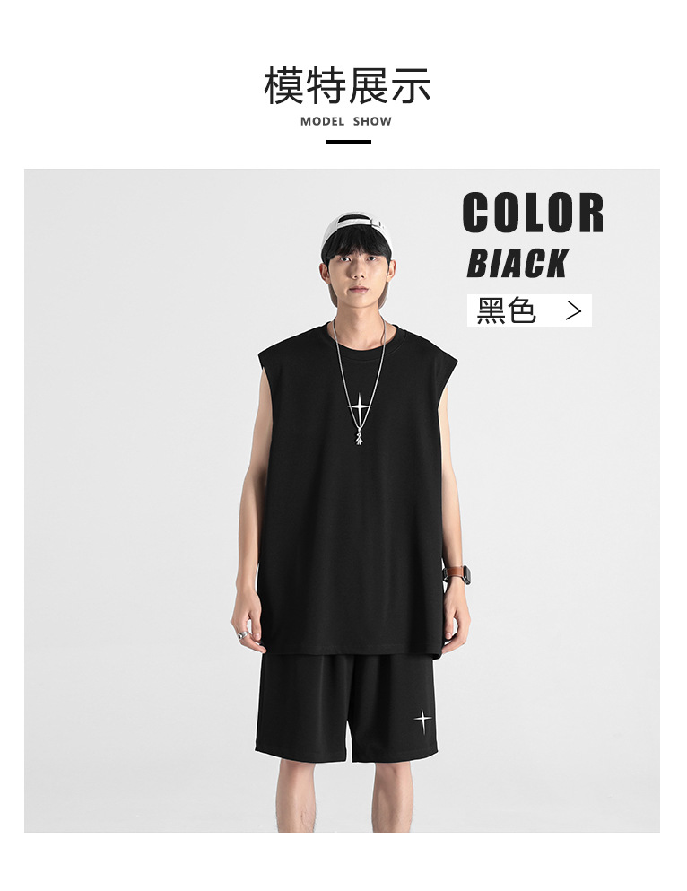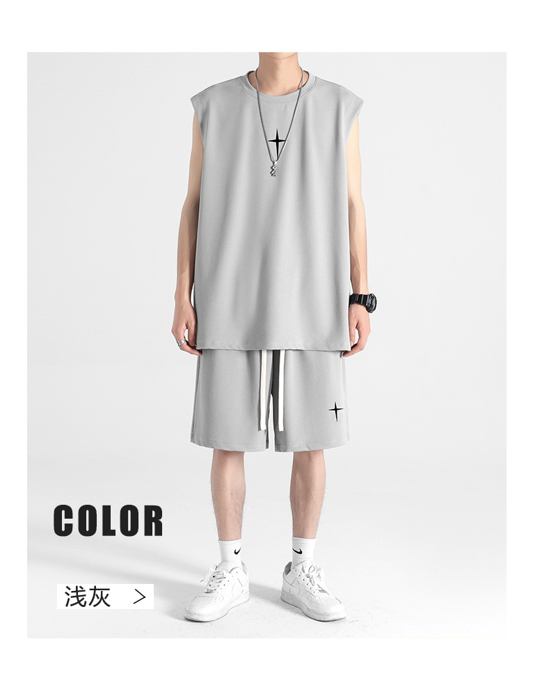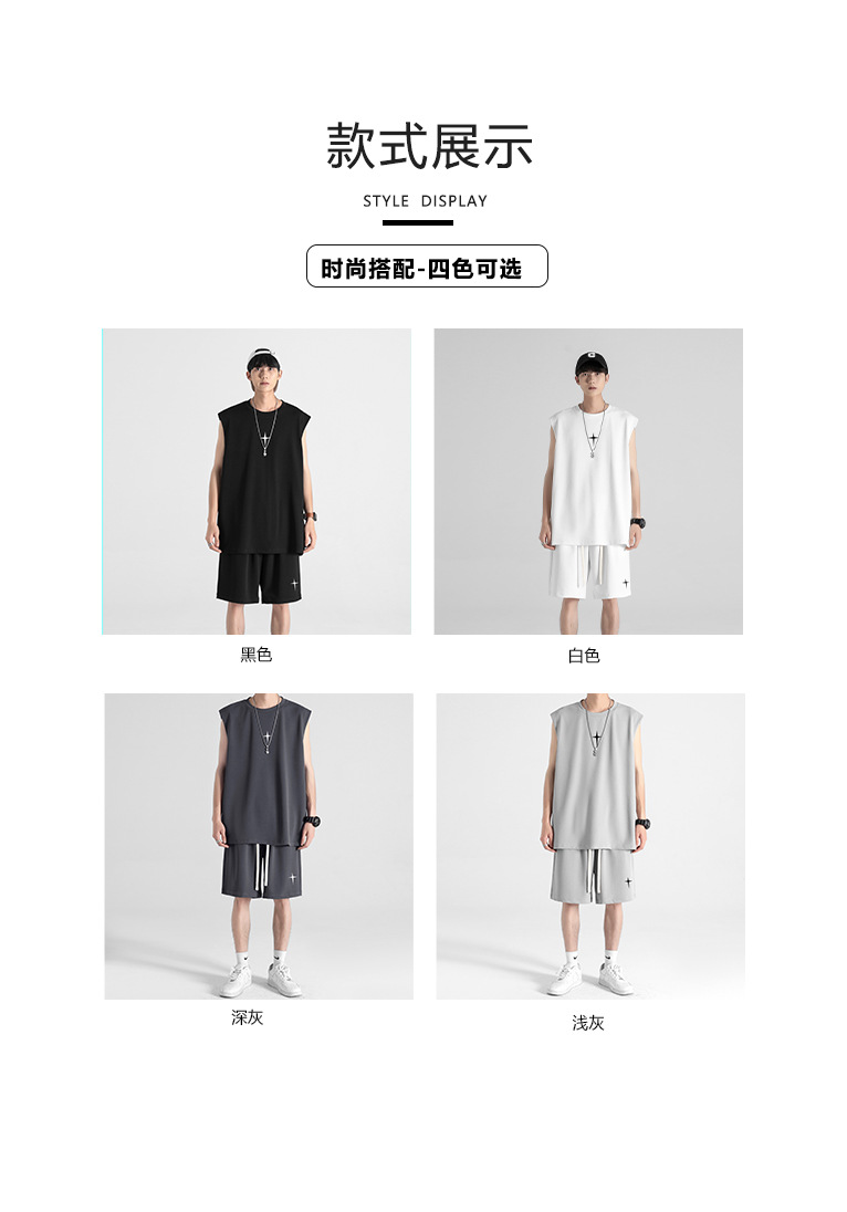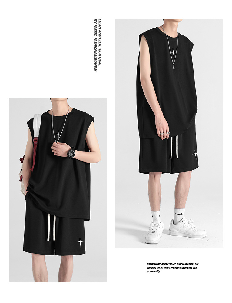 아이스 실크 스포츠 세트 남자 여름 유행 브랜드 남자 조끼 짧은 캐주얼 느슨한 남자의 빠른 건조 남성 의류 유행