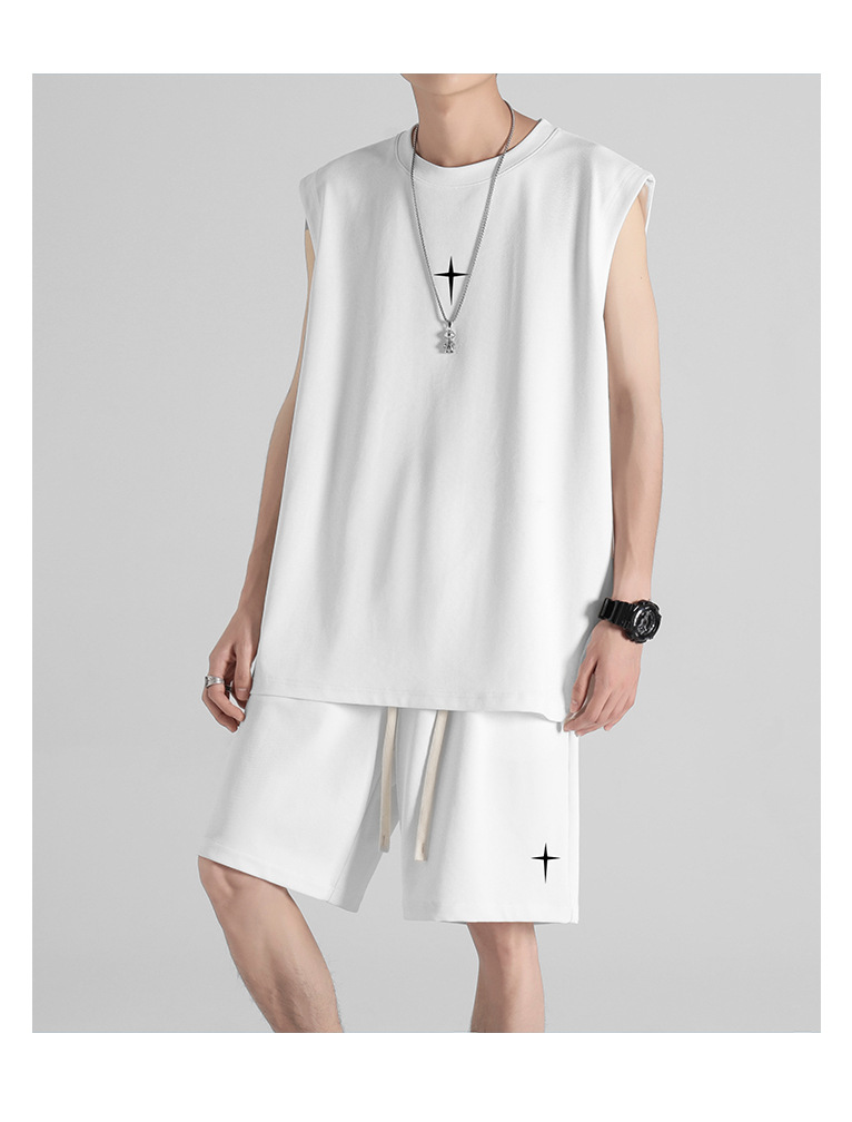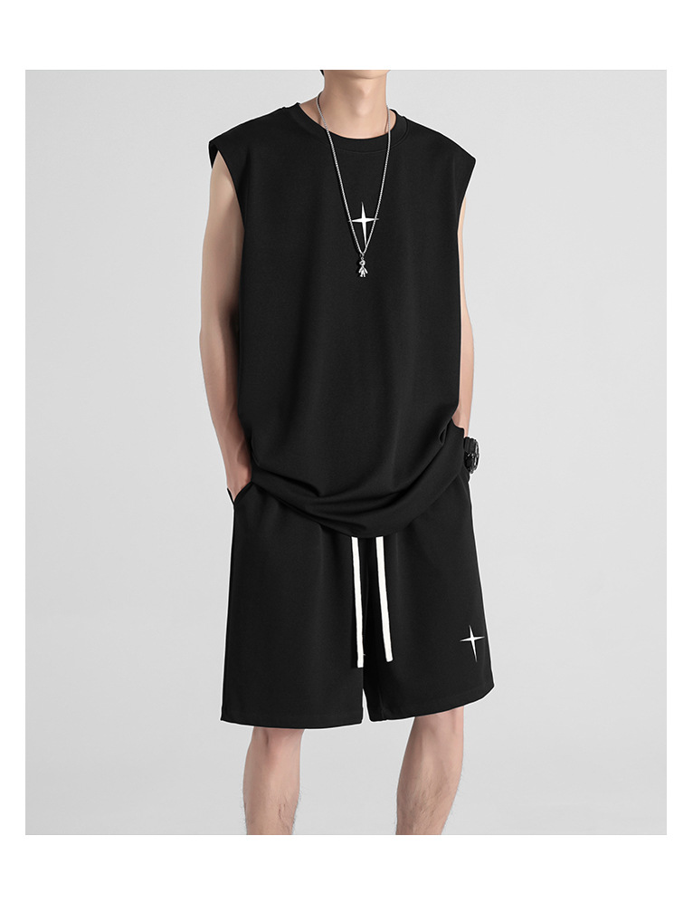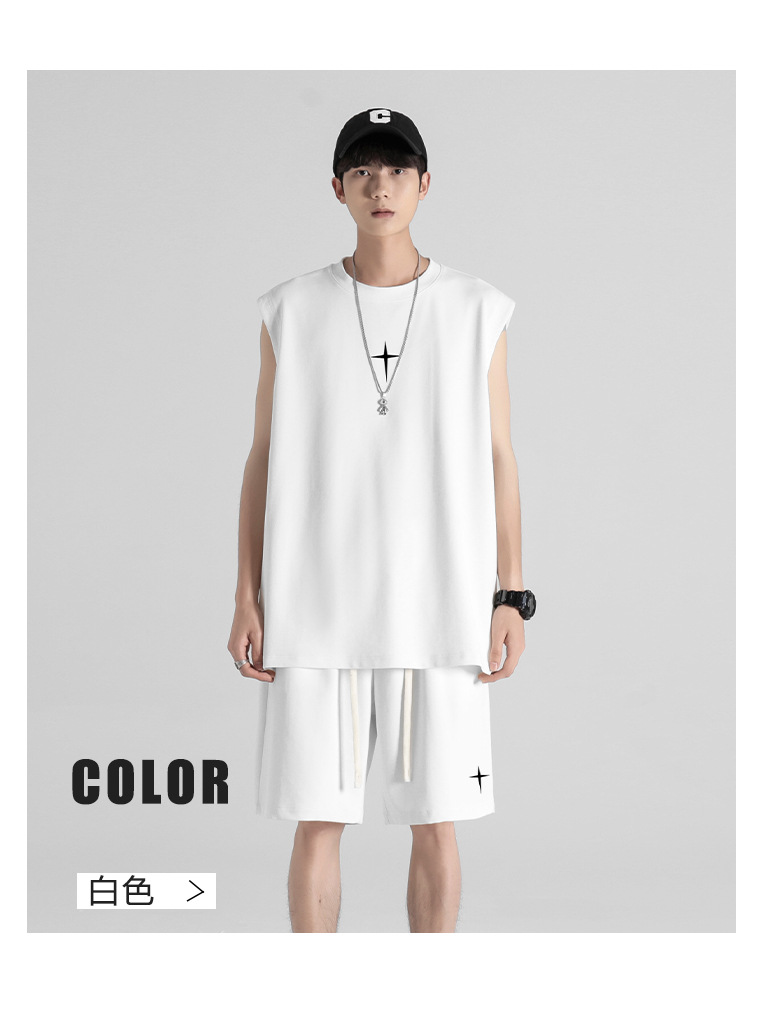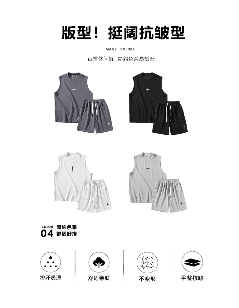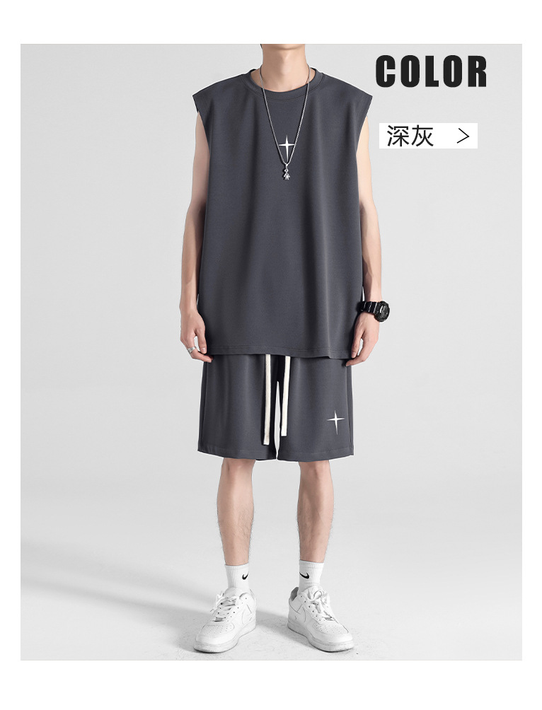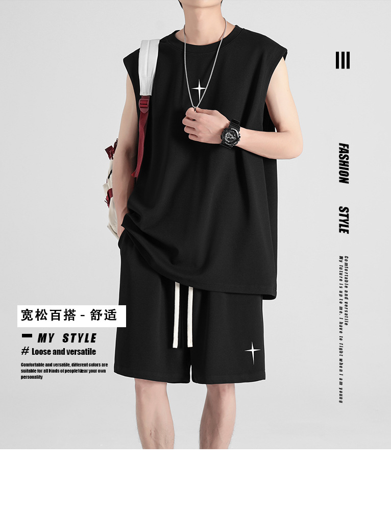 아이스 실크 스포츠 세트 남자 여름 유행 브랜드 남자 조끼 짧은 캐주얼 느슨한 남자의 빠른 건조 남성 의류 유행