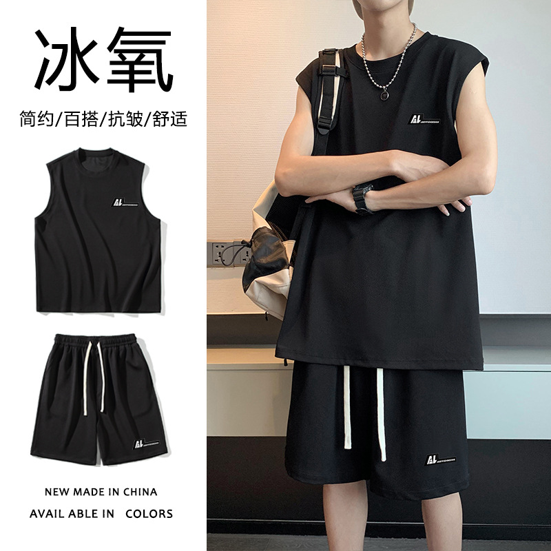 아이스 실크 스포츠 세트 남자 여름 유행 브랜드 남자 조끼 짧은 캐주얼 느슨한 남자의 빠른 건조 남성 의류 유행스토어 가기