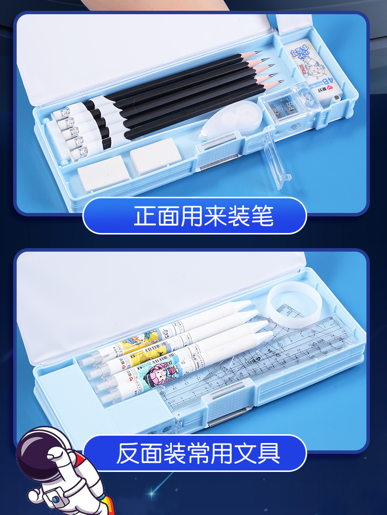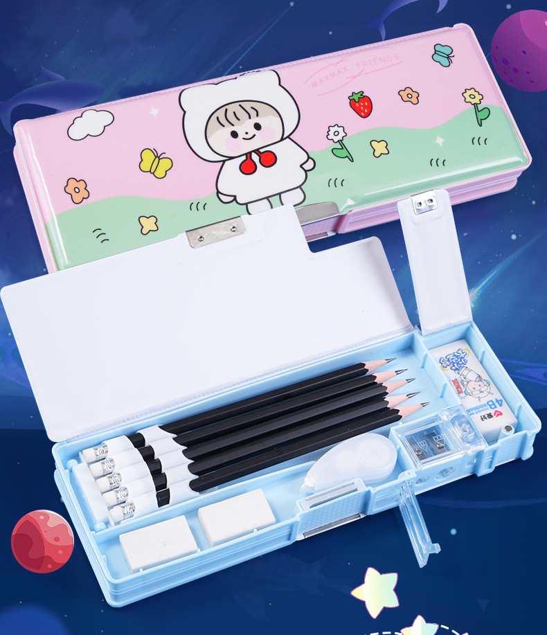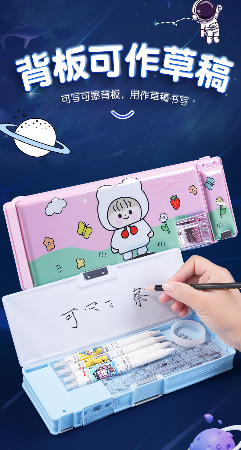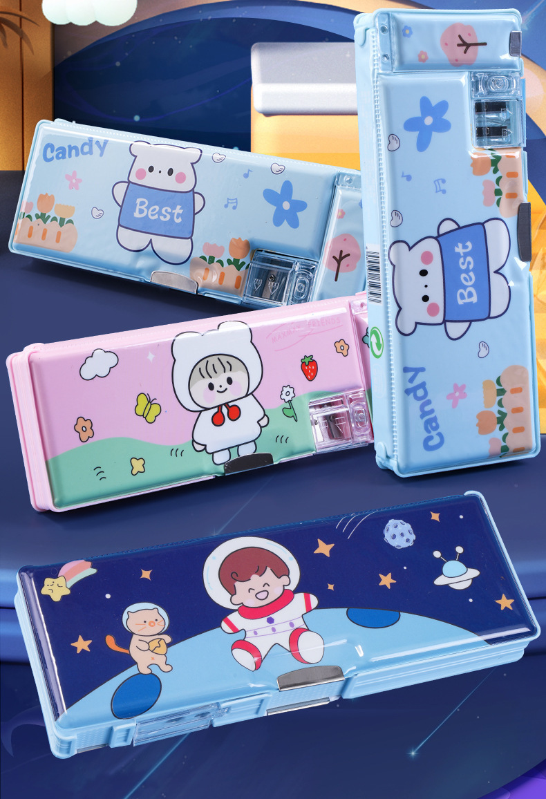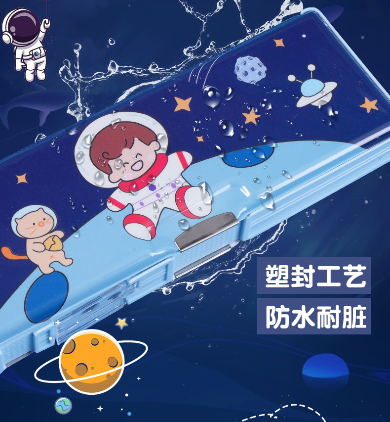 남성과 여성 초등학생을위한 다기능 문구 상자 연필 케이스 만화 더블 레이어 대용량 펜 케이스 국경 대외 무역 인쇄 패턴스토어 가기