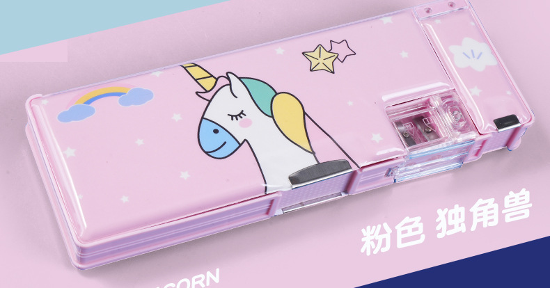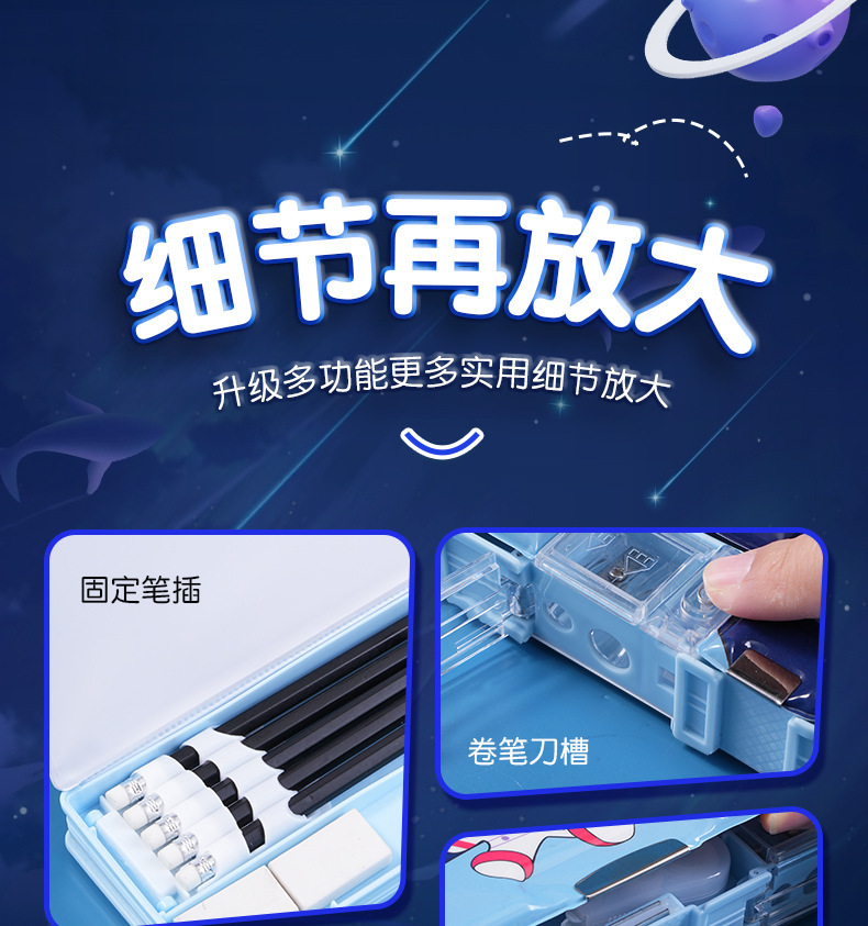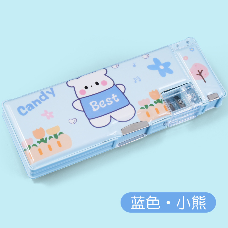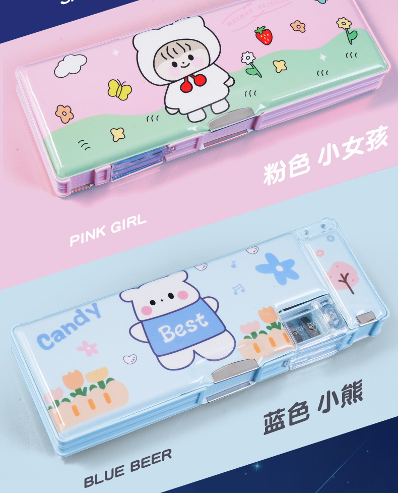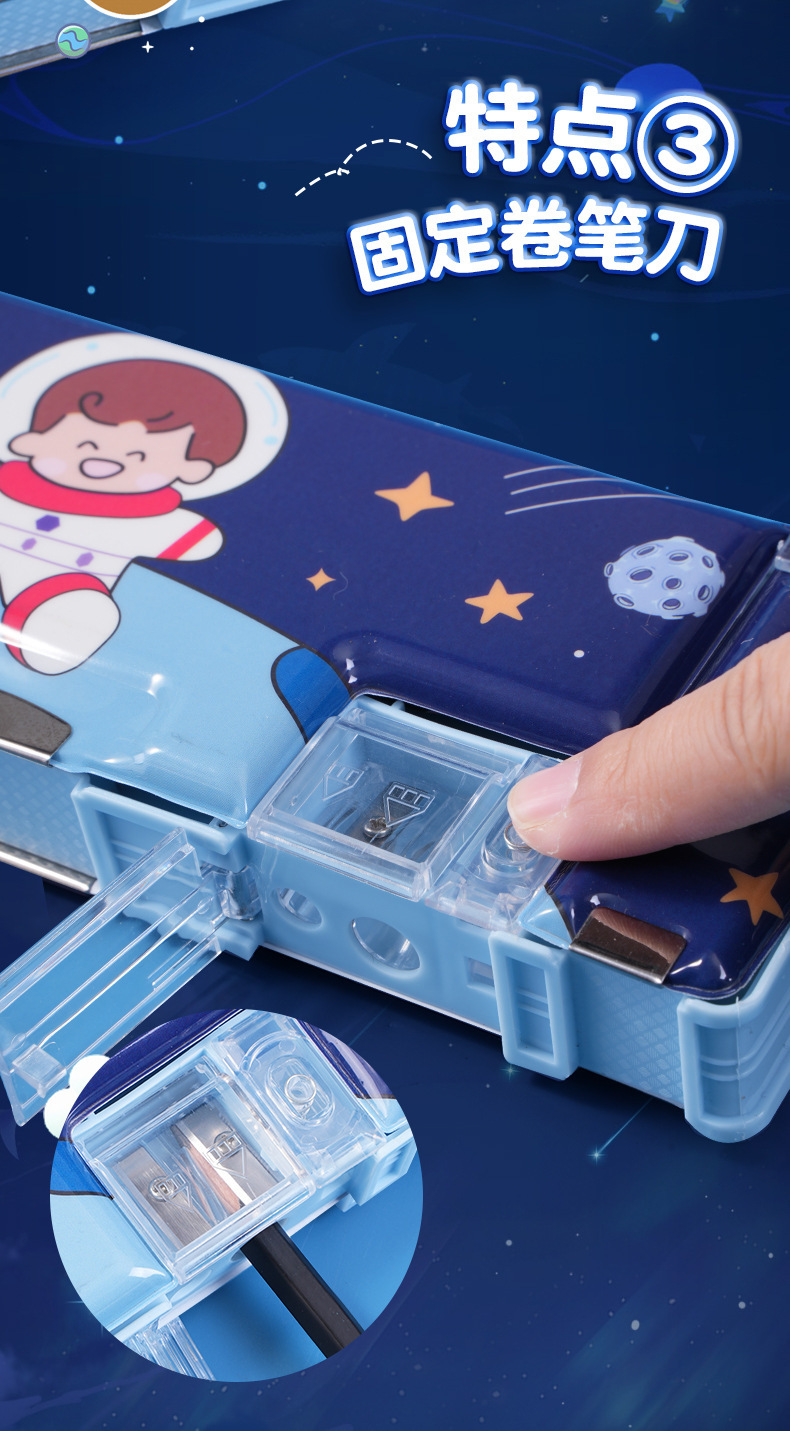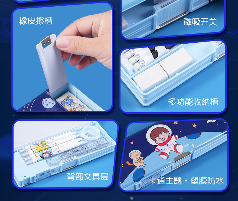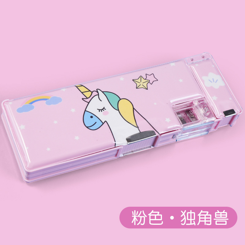 남성과 여성 초등학생을위한 다기능 문구 상자 연필 케이스 만화 더블 레이어 대용량 펜 케이스 국경 대외 무역 인쇄 패턴스토어 가기
