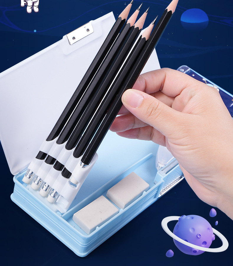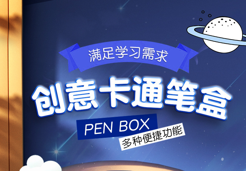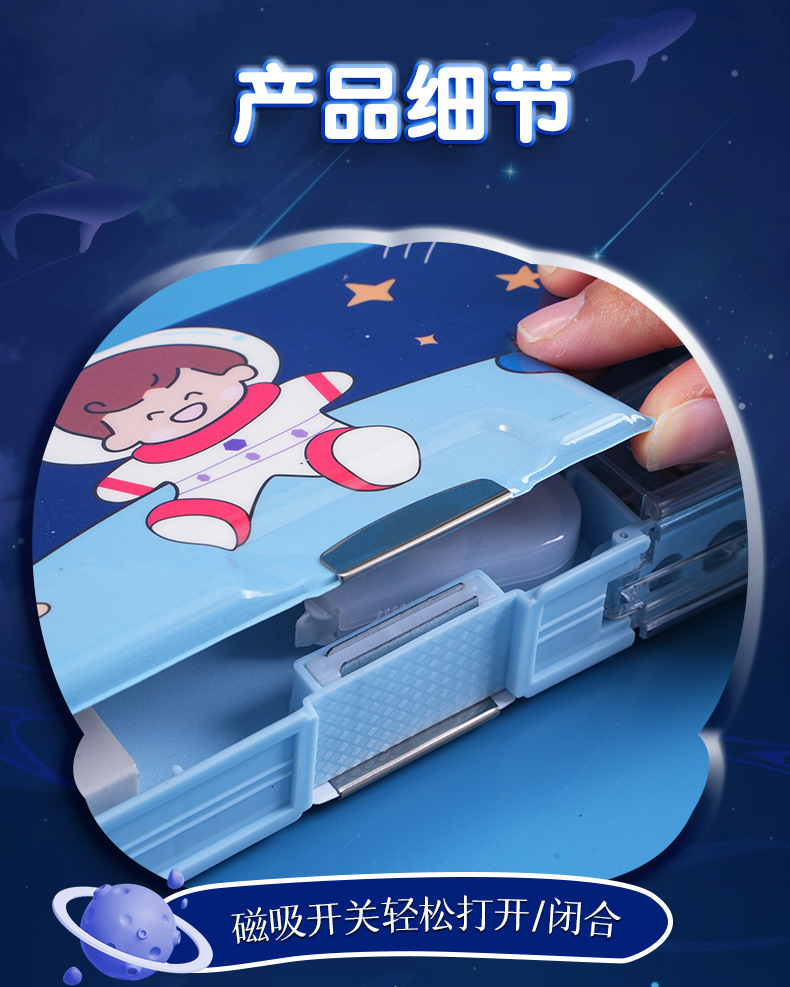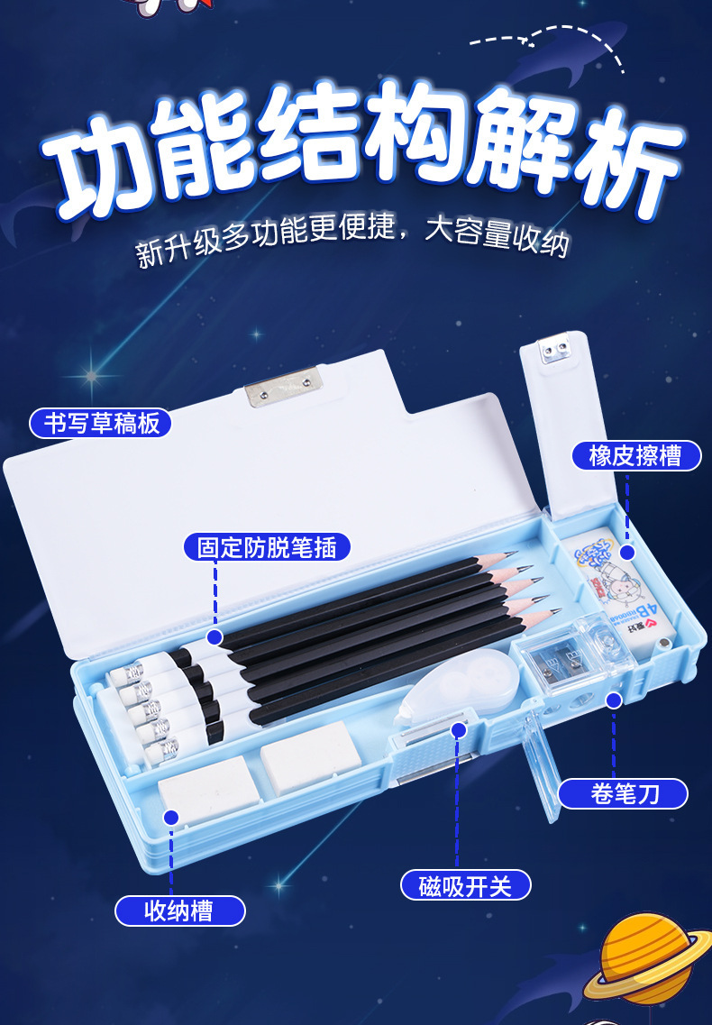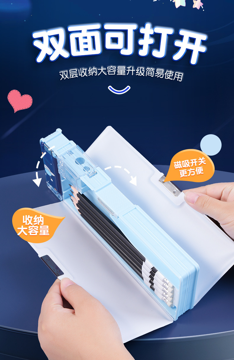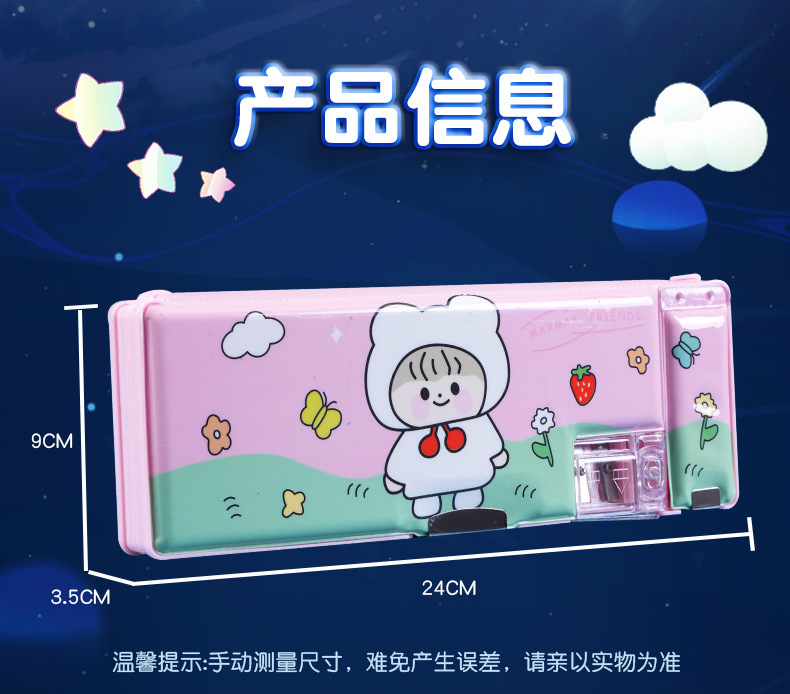 남성과 여성 초등학생을위한 다기능 문구 상자 연필 케이스 만화 더블 레이어 대용량 펜 케이스 국경 대외 무역 인쇄 패턴스토어 가기