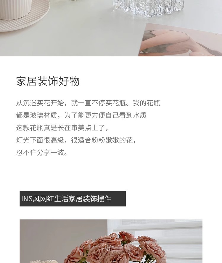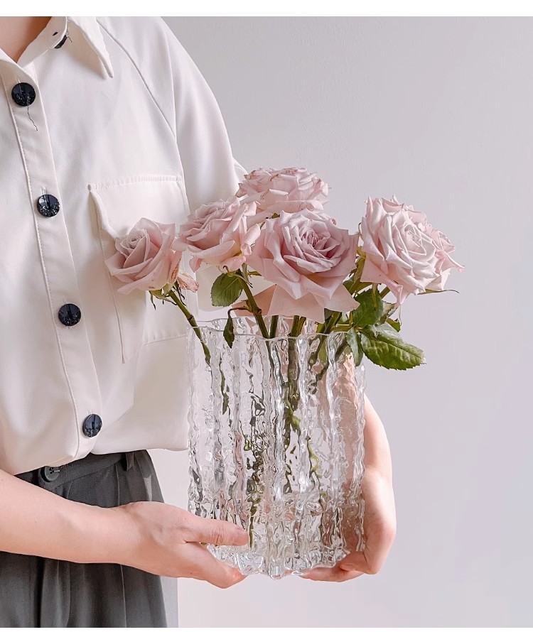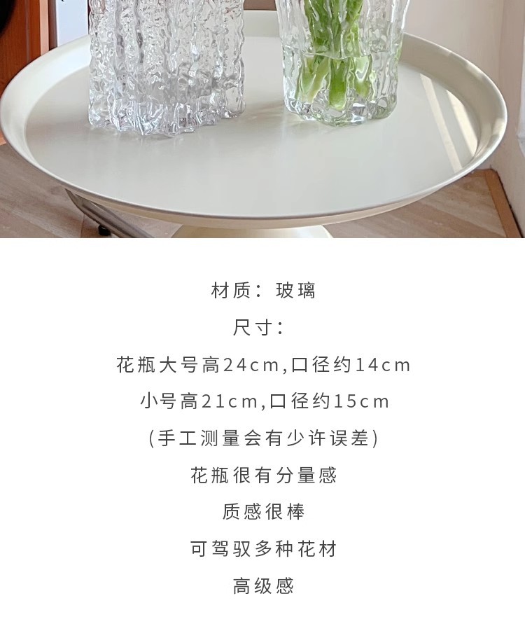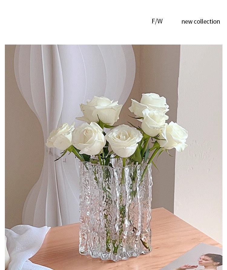 Ins Light 럭셔리 하이 엔드 빙하 꽃병 유리 두꺼운 투명 물 높이 꽃 꽃 장식품 거실 장식스토어 가기