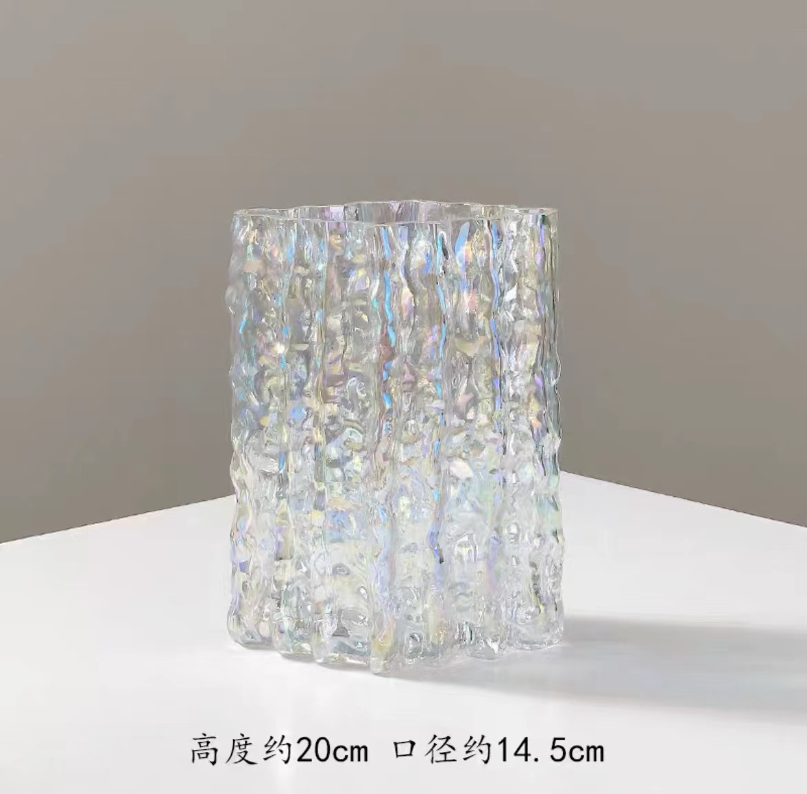 Ins Light 럭셔리 하이 엔드 빙하 꽃병 유리 두꺼운 투명 물 높이 꽃 꽃 장식품 거실 장식