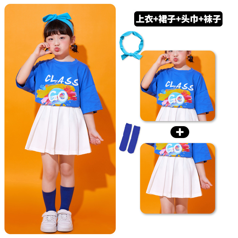 어린이 치어 리더 의상 레인보우 GO 초등학생 수업 의상 스포츠 의상 유치원 공연 의상