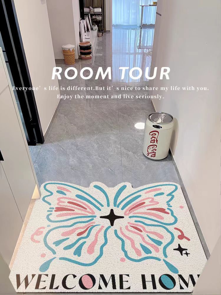 Ins 나비 2024 입구 문 매트 고급 센스 실크 링 발 매트 무료 절단 문 카펫 문 매트 입구