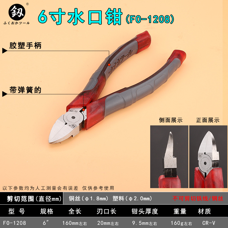 후쿠오카 FO-1208 노즐 펜치 6 인치 날카로운 비스듬한 펜치 전자 모델 절단 펜치 수동 하드웨어 도구스토어 가기