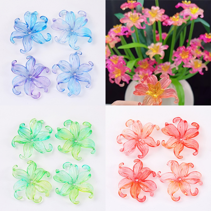 44mm 투명 그라디언트 아크릴 바다 꽃 꽃잎 홍채 수선화 수제 DIY 소재 가방 액세서리 1kg