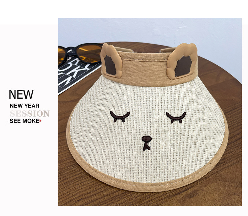 • [곰 밀짚 모자 빈 탑] 베이지