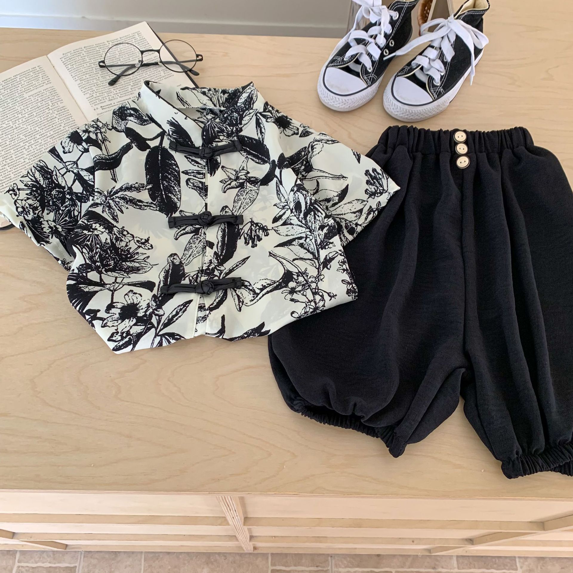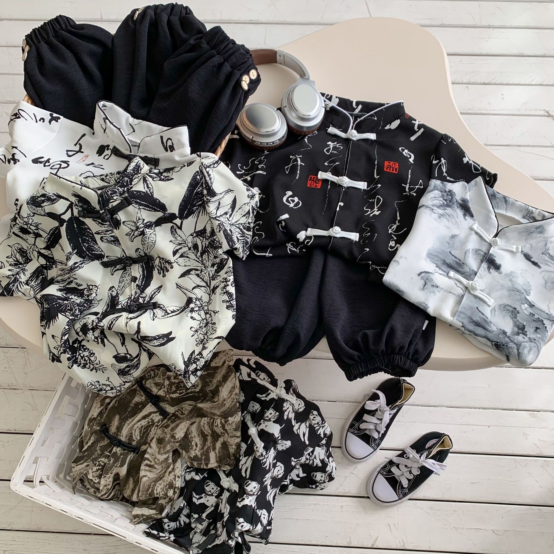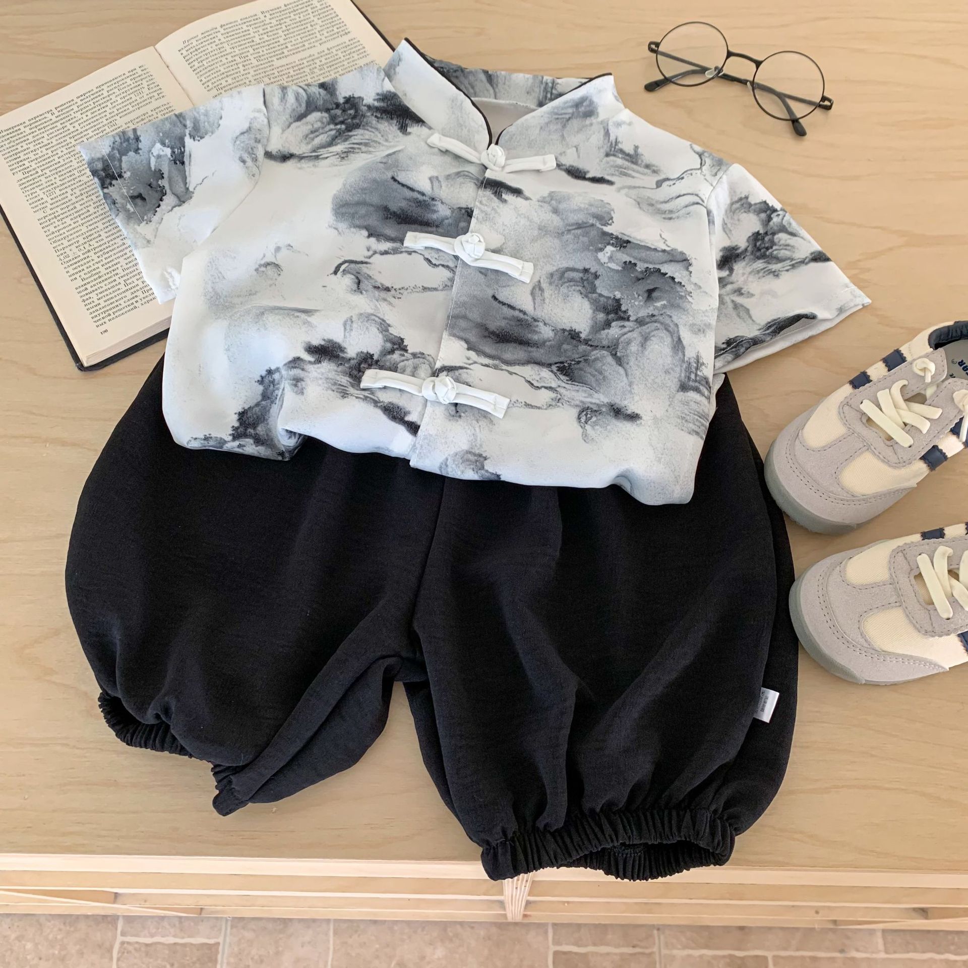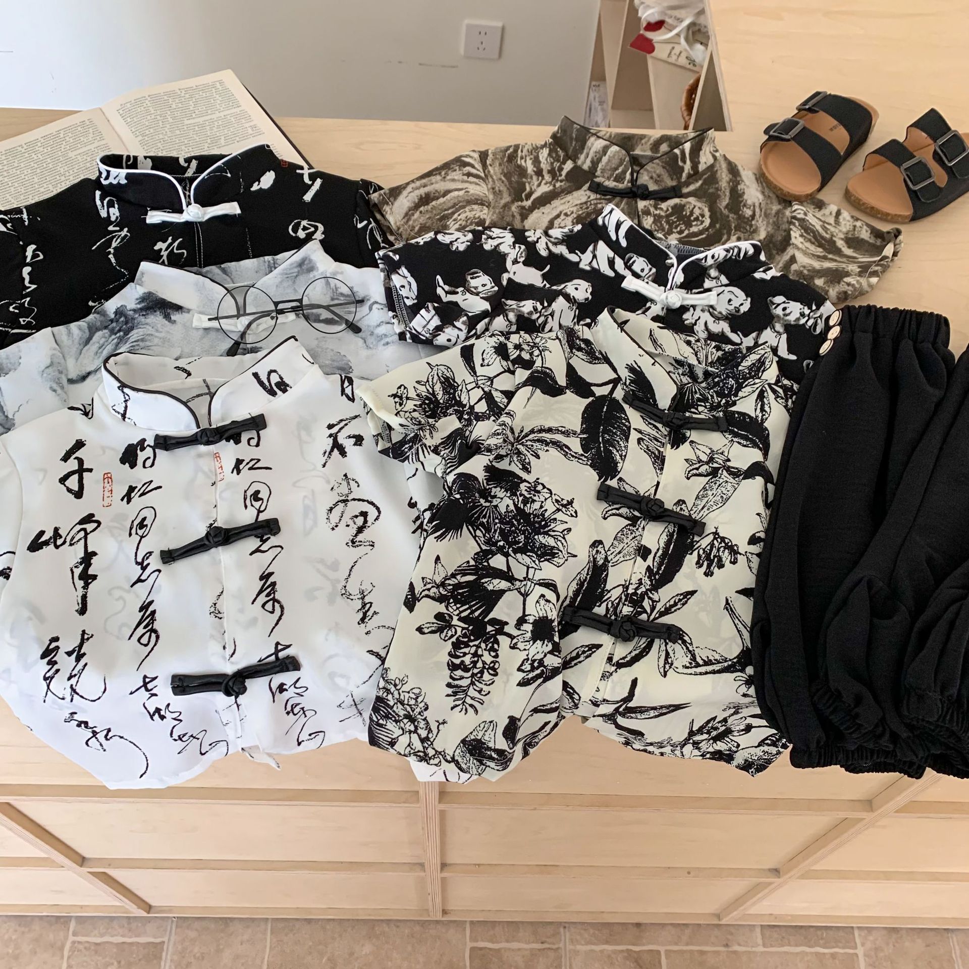 소년 당나라 옷 반팔 세트 여름 얇은 아기 옷 중국 스타일 골동품 셔츠 반바지 여름 옷 어린이 유행 아동복스토어 가기