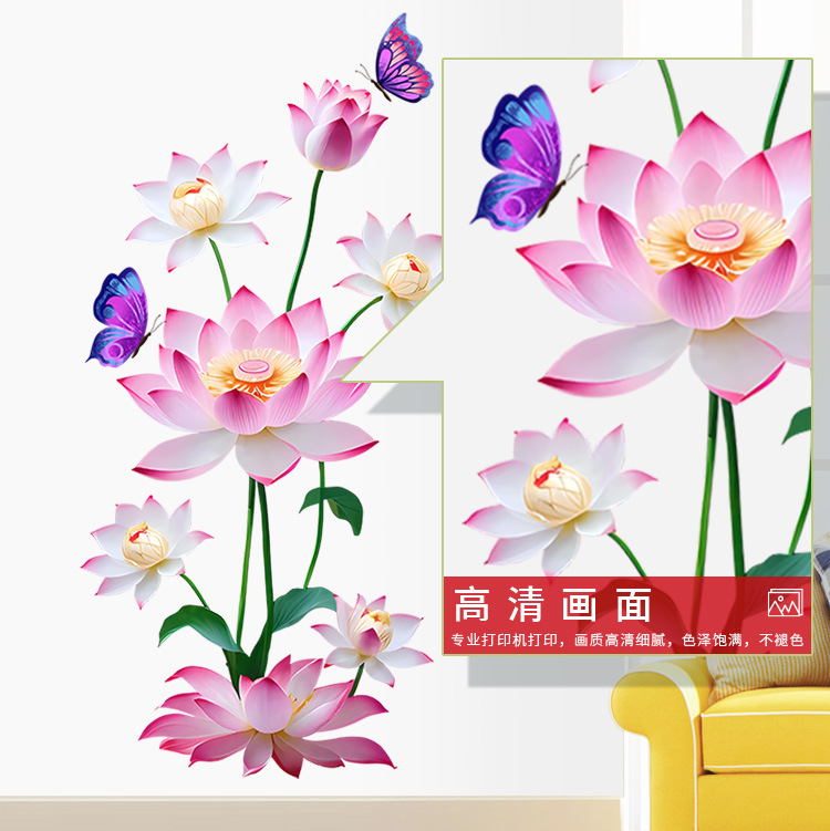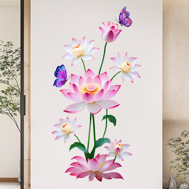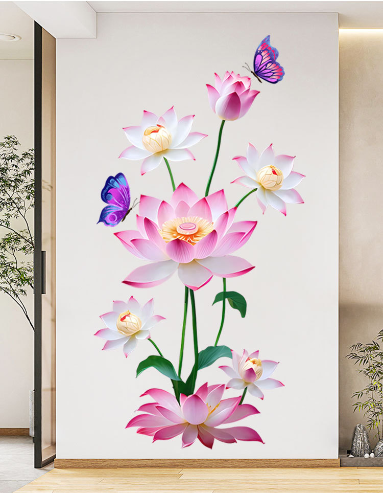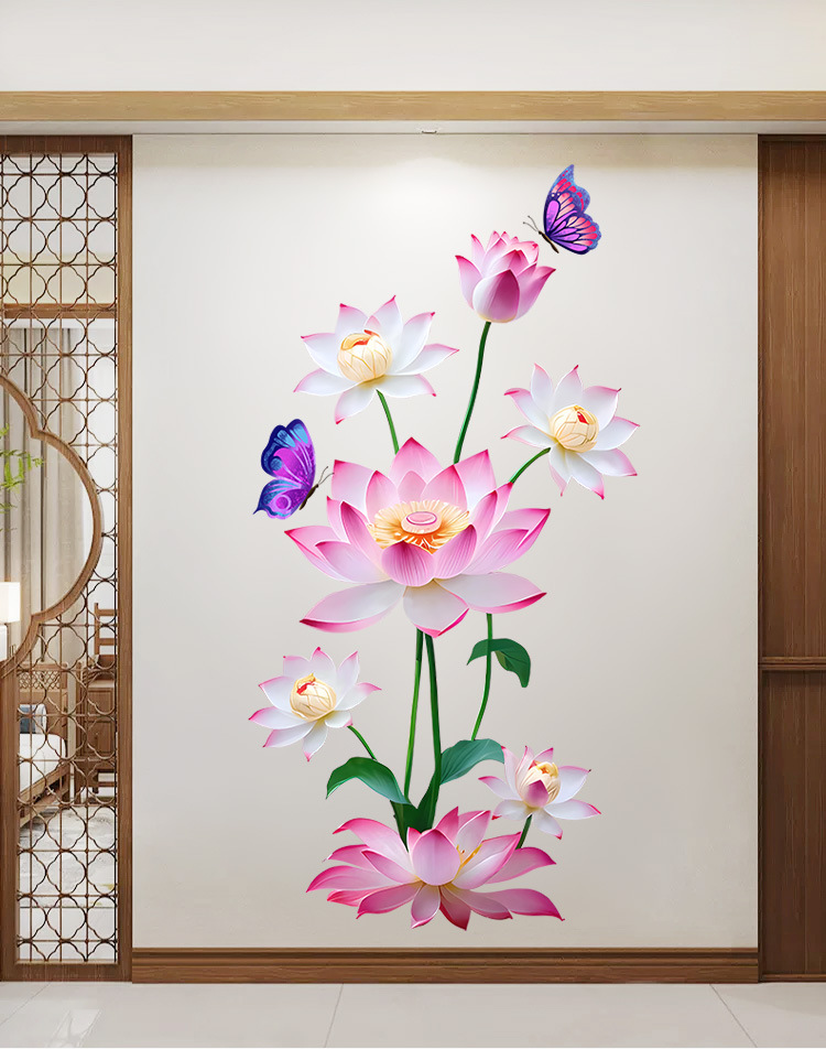 Yiyao GS5035 클래식 로터스 나비 스티커 벽 스티커 거실 침실 장식 이동식 셀프 접착 스티커