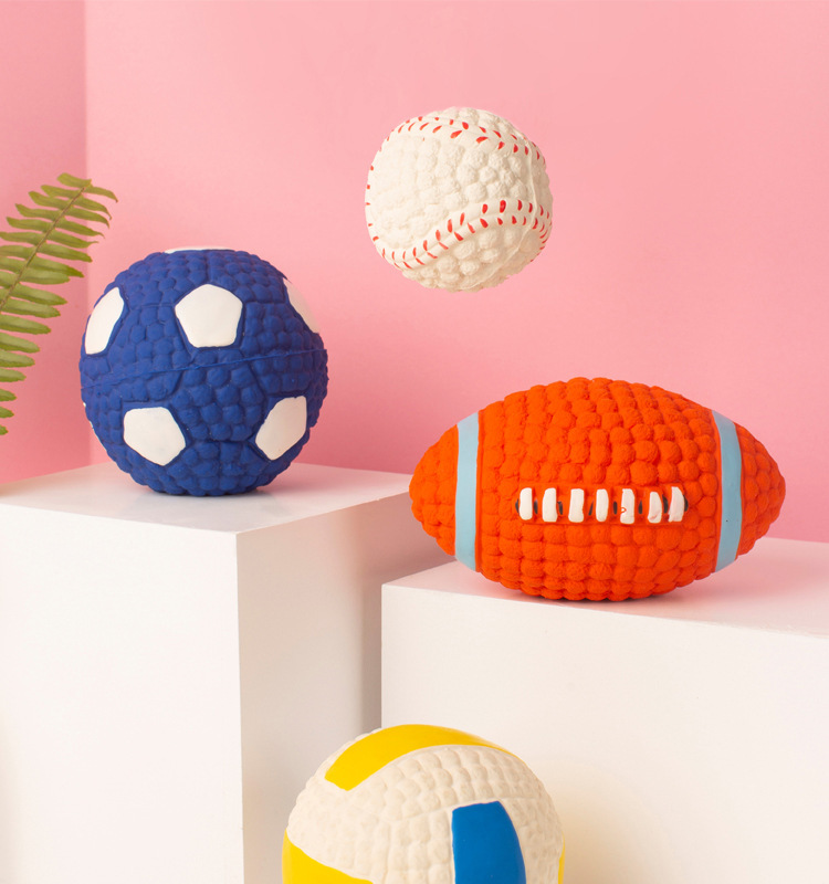 Yite 개 장난감 물린 저항하는 라텍스 럭비 축구 시리즈 Molar 치아 음성 강아지 황금 머리 애완 동물 장난감 공