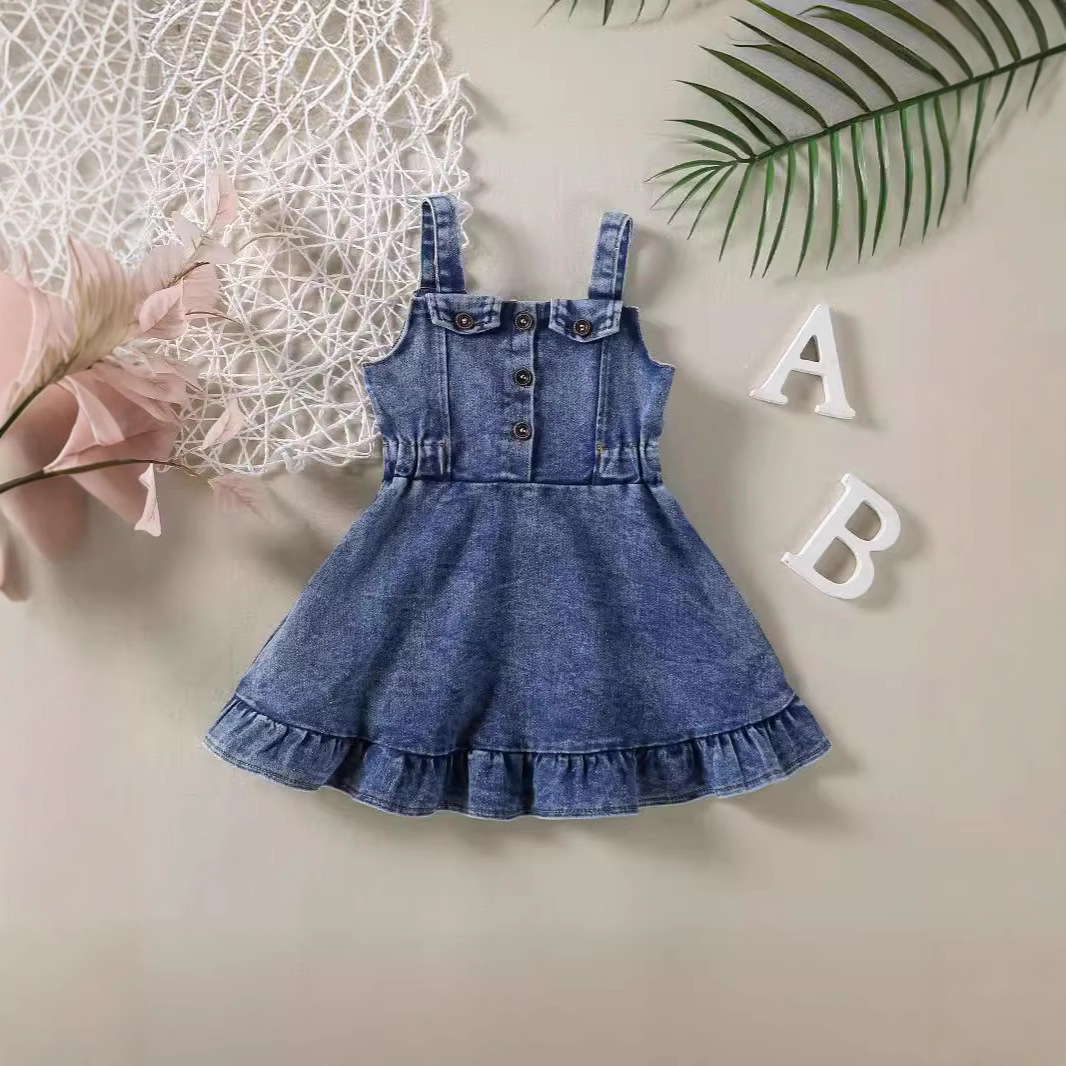 크로스 보더 니트 드레스 2024 봄 새 여자 아기 솔리드 컬러 공주 스타일 서스펜더 스커트 어린이 드레스스토어 가기