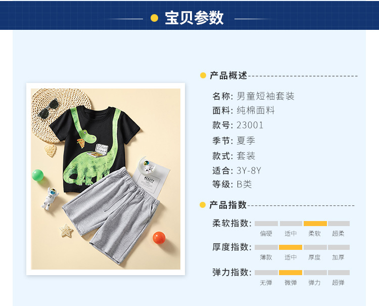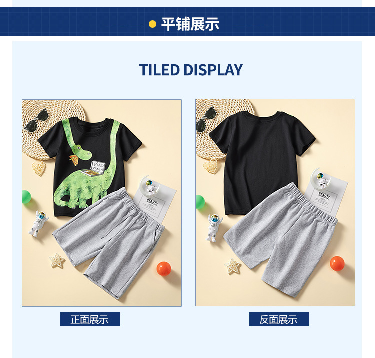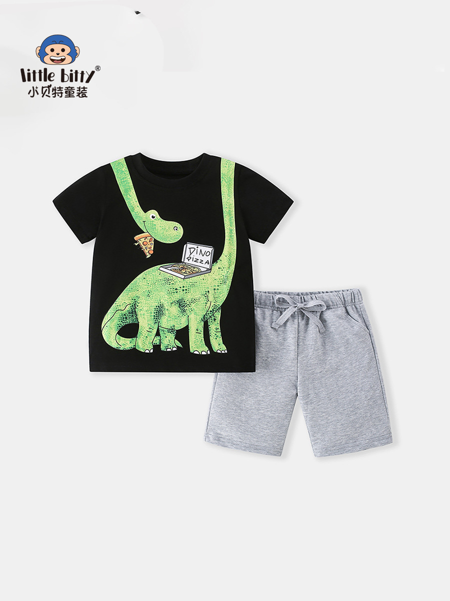 유럽과 미국 소년 티셔츠 세트 2024 새로운 어린이 스포츠 짧은 소매 투피스 반바지 아동복 도매스토어 가기