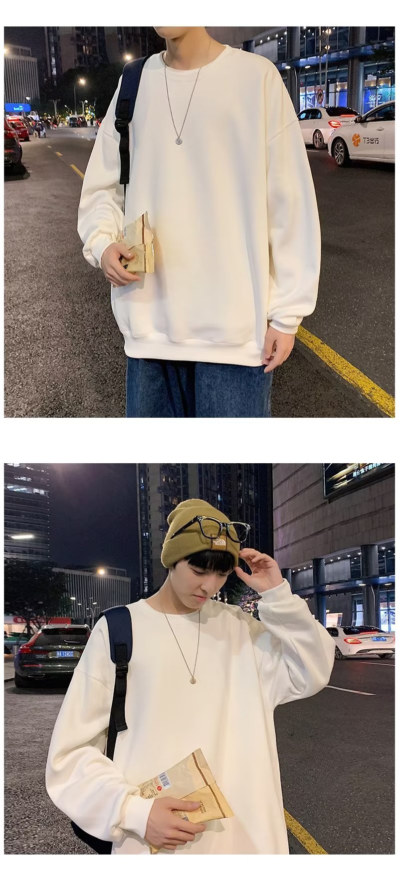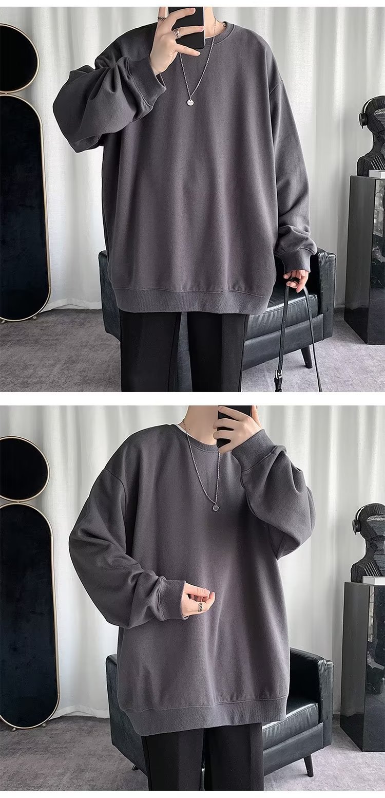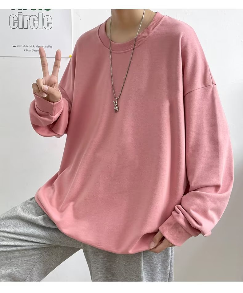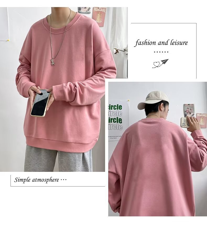 공장 봄과 가을 도매 단색 긴 소매 둥근 목 얇은 스웨터 남성과 여성의 같은 크기의 느슨한 캐주얼 옷스토어 가기