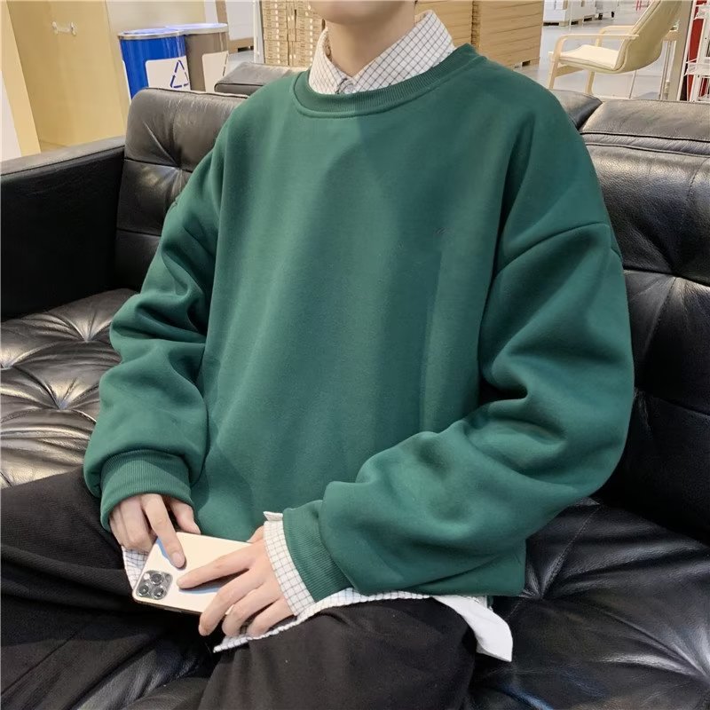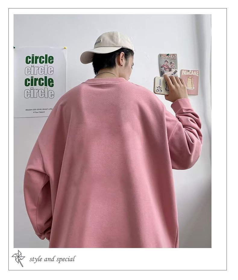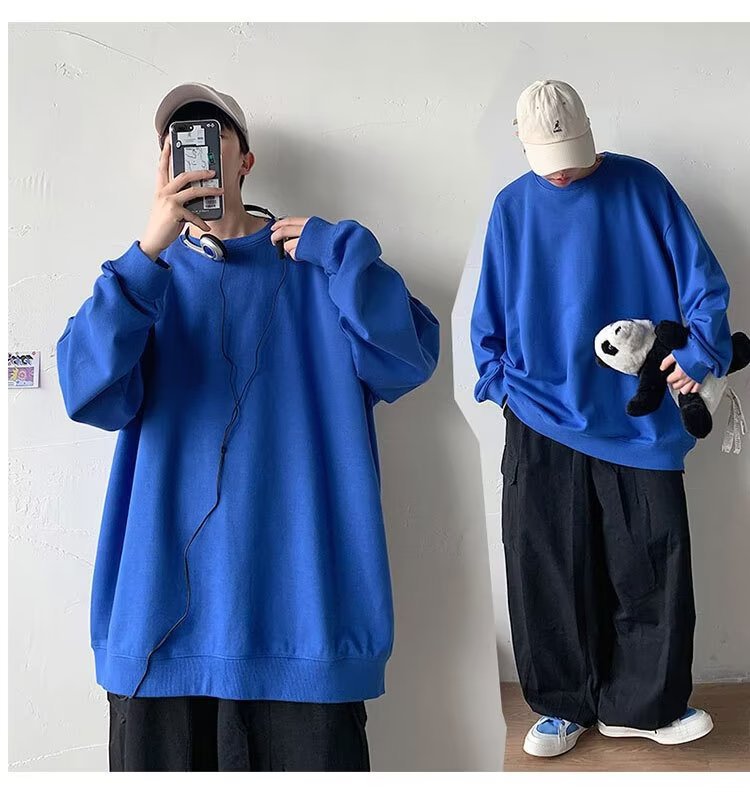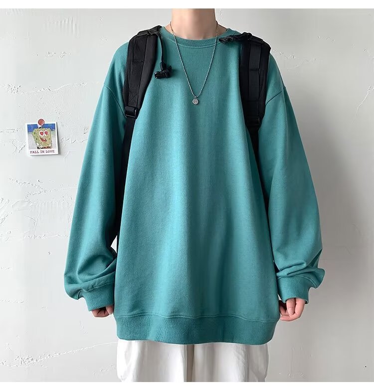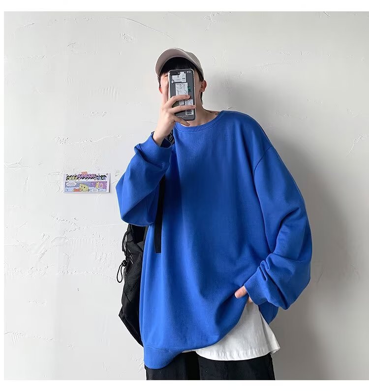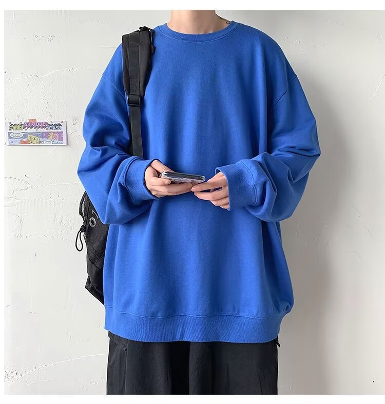 공장 봄과 가을 도매 단색 긴 소매 둥근 목 얇은 스웨터 남성과 여성의 같은 크기의 느슨한 캐주얼 옷스토어 가기