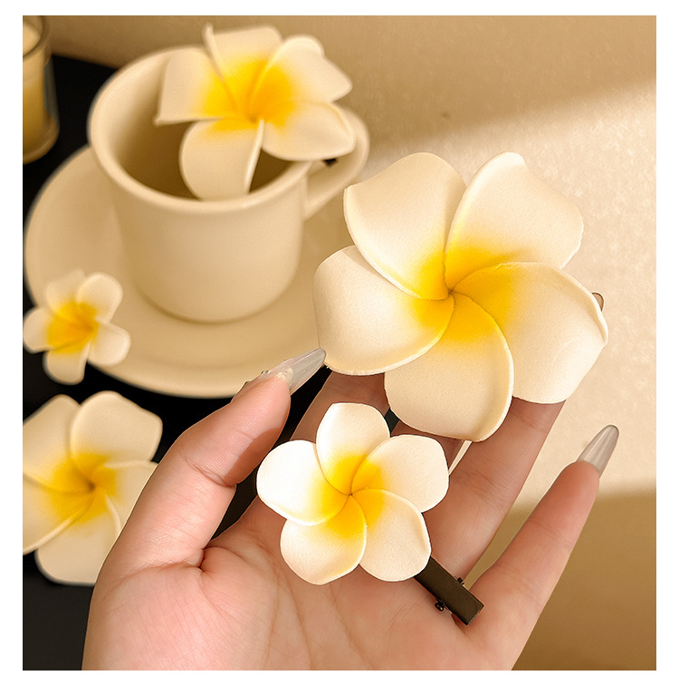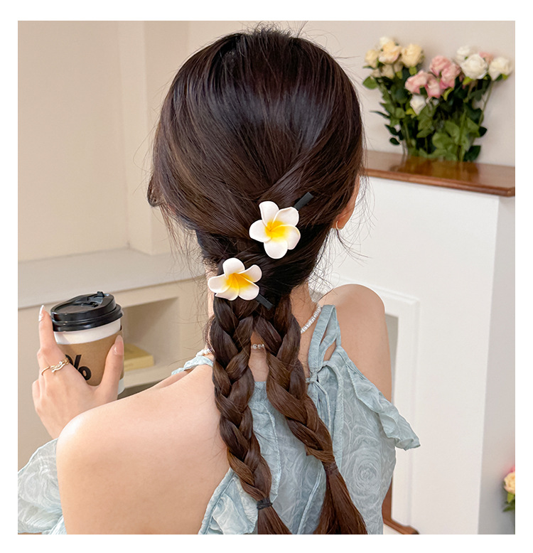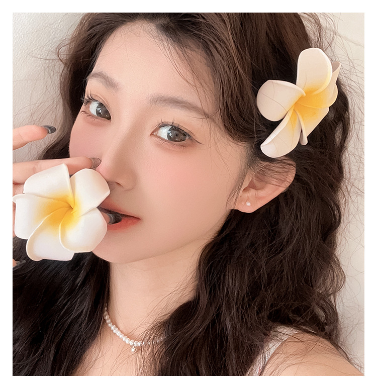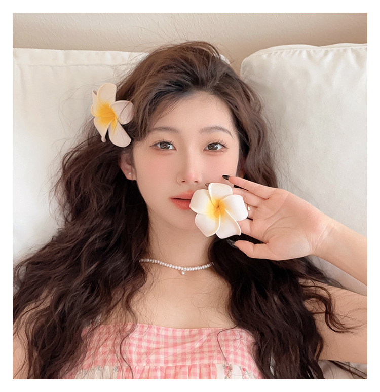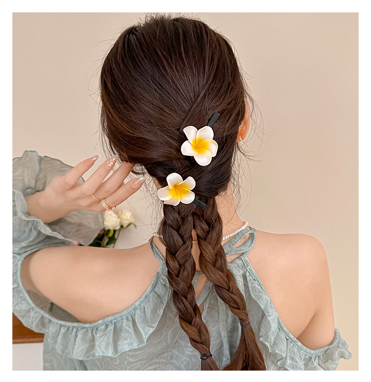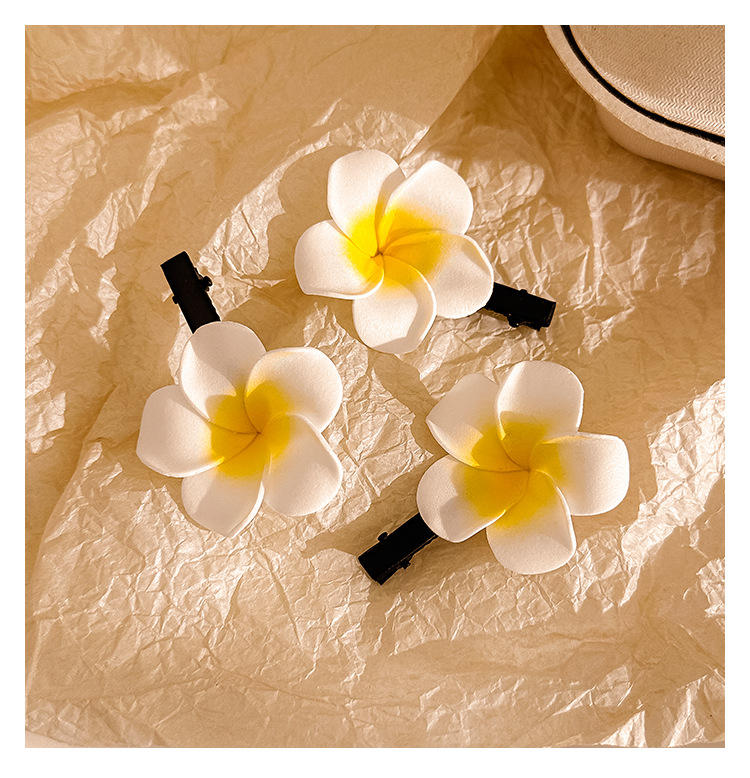 비치 홀리데이 스타일 계란 꽃 헤어 클립 여성 사이드 뱅 클립 분위기 헤어핀 깨진 헤어 덕빌 클립