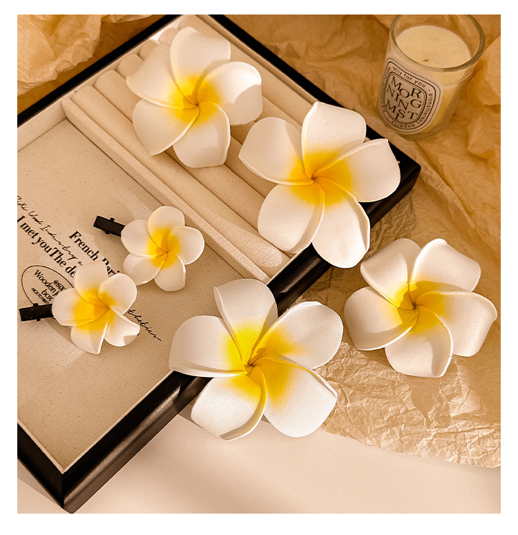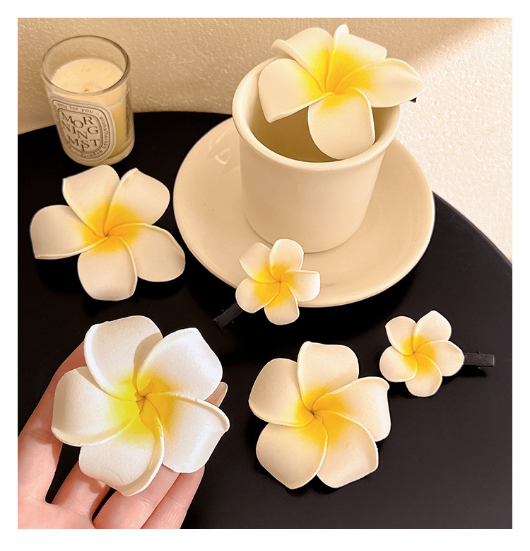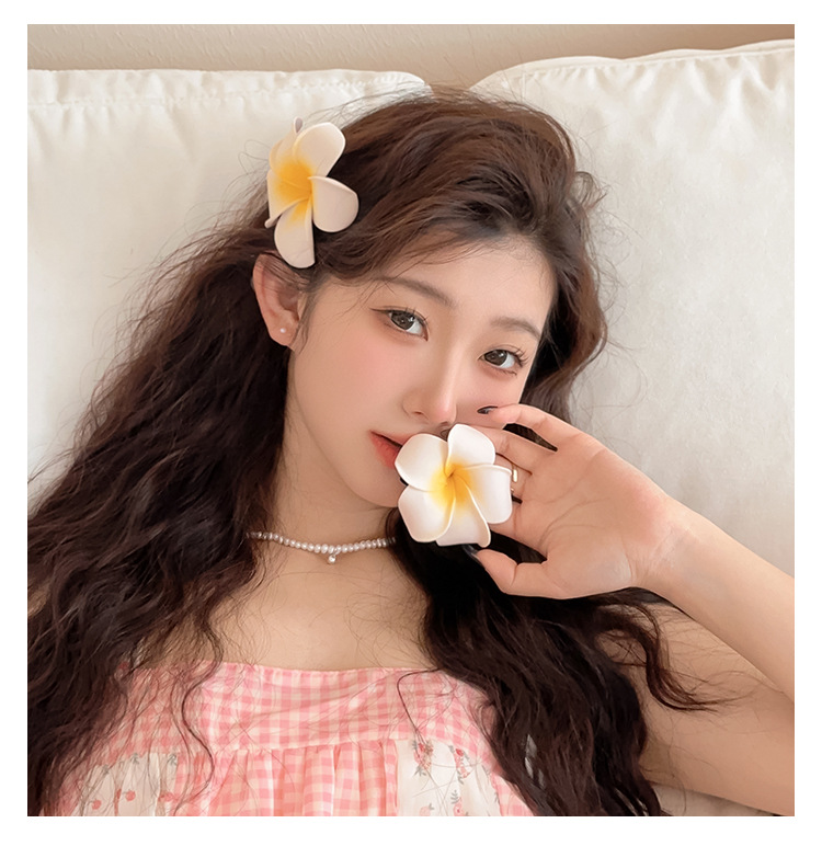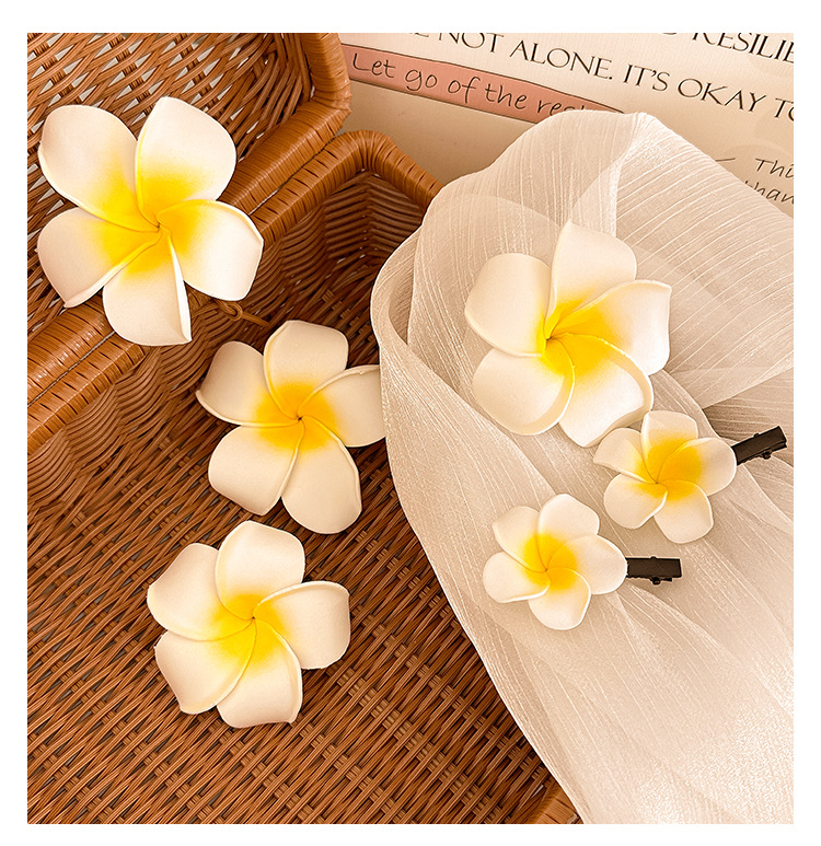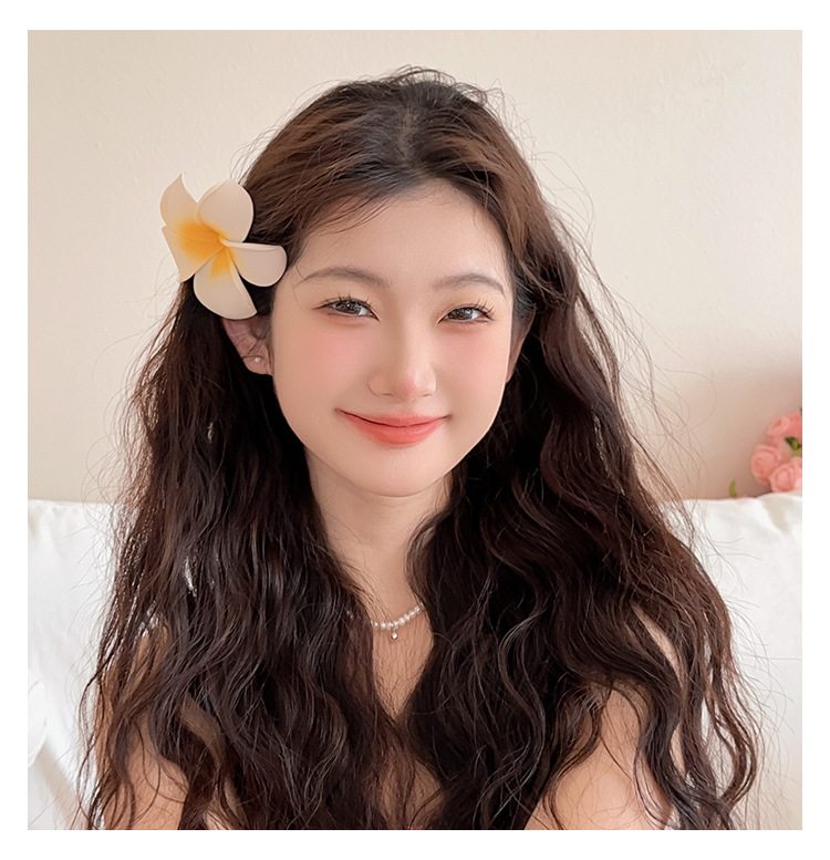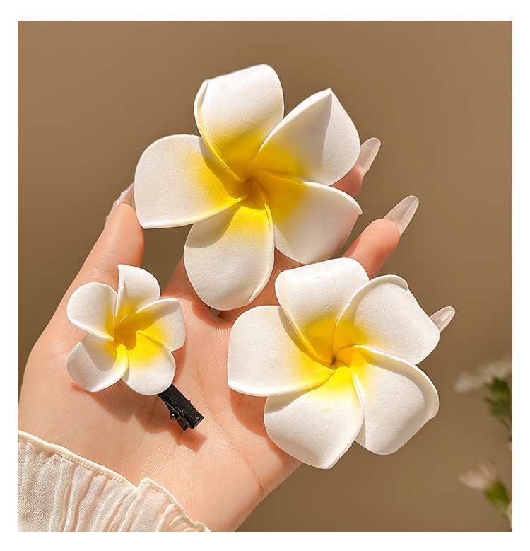 비치 홀리데이 스타일 계란 꽃 헤어 클립 여성 사이드 뱅 클립 분위기 헤어핀 깨진 헤어 덕빌 클립