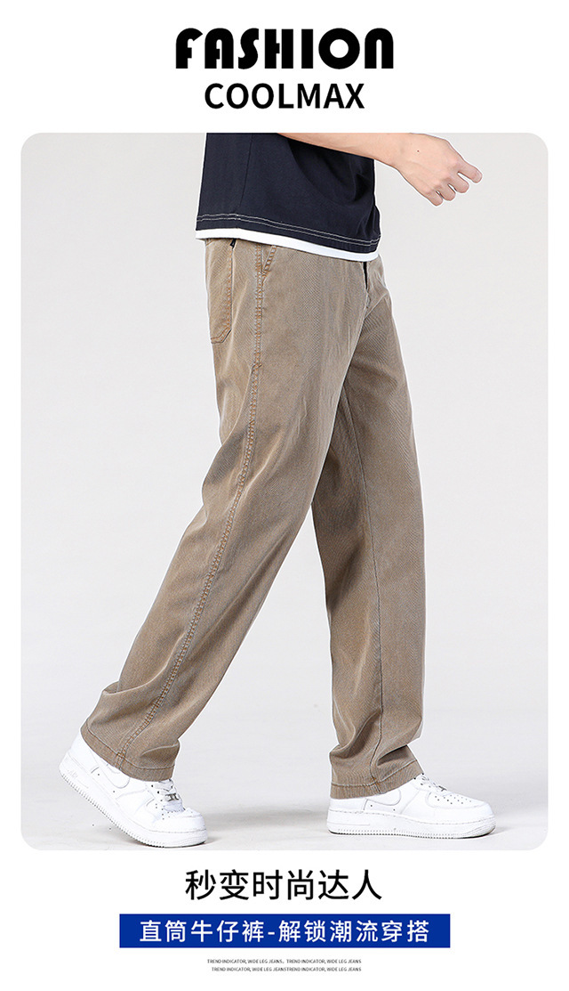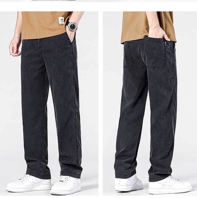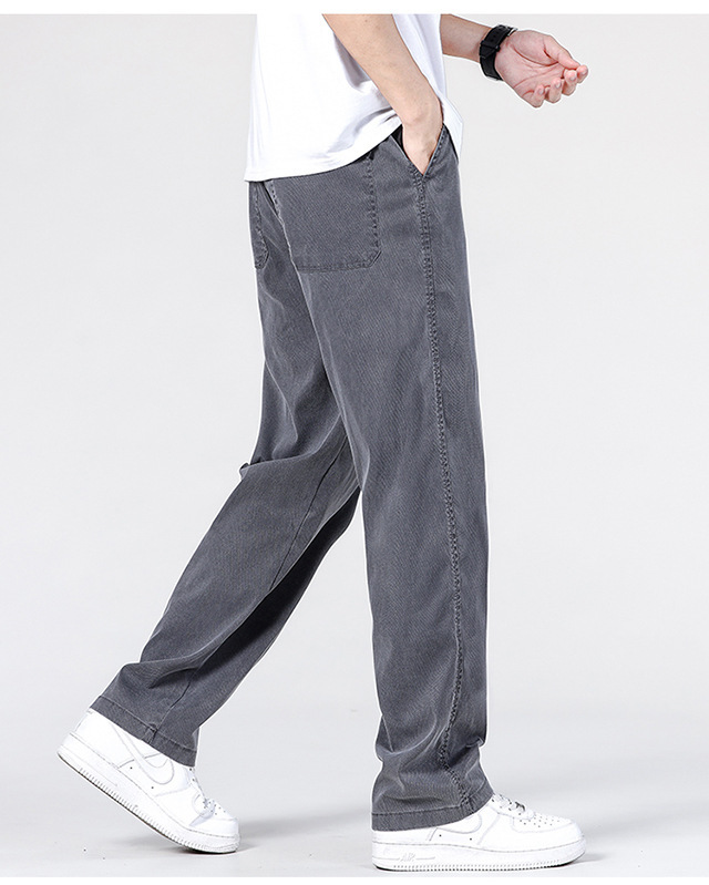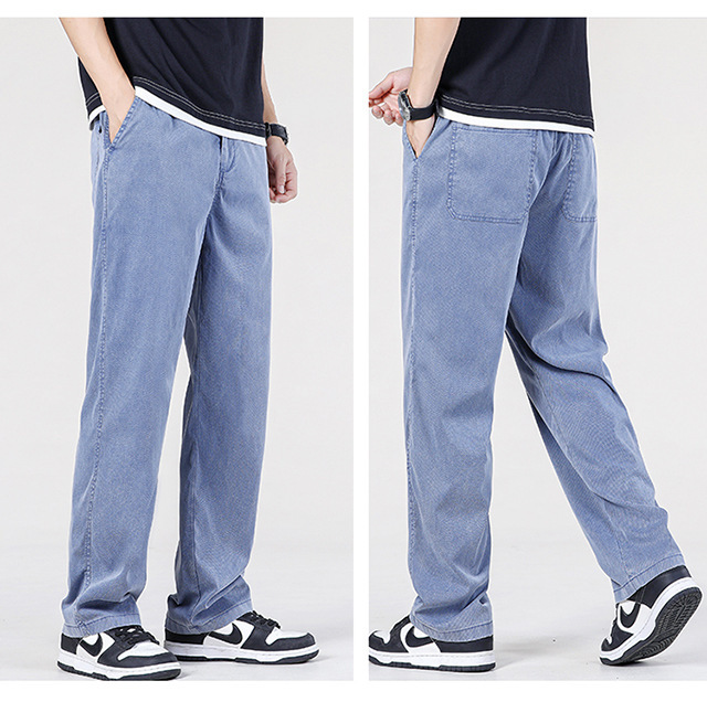 텐셀 청바지 남성용 여름 얇은 트렌디 브랜드 스트레이트 루즈 남성용 아이스 실크 와이드 레그 여름 캐주얼 롱 팬츠스토어 가기