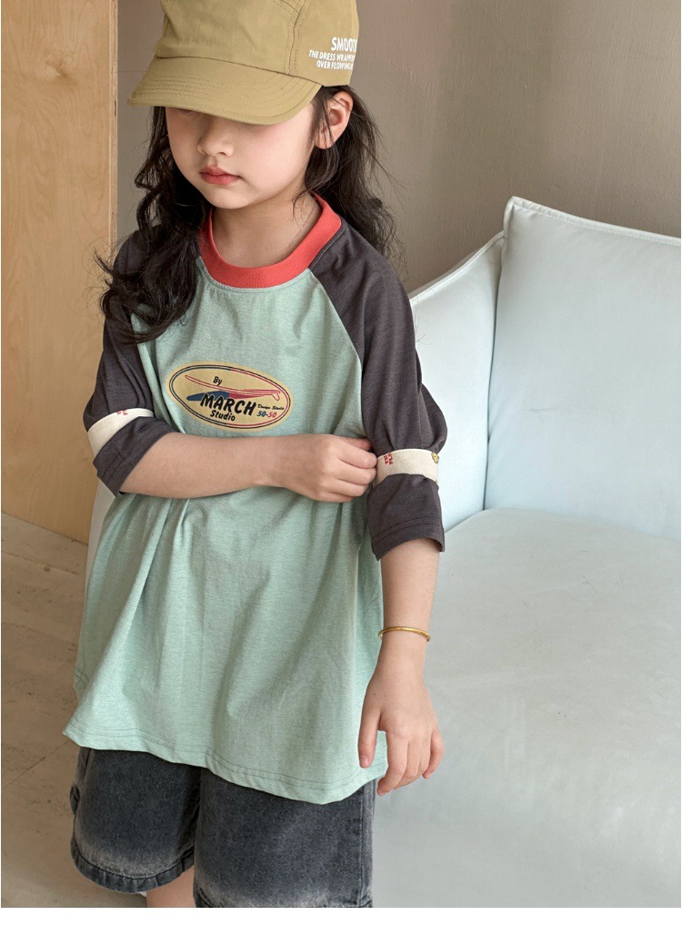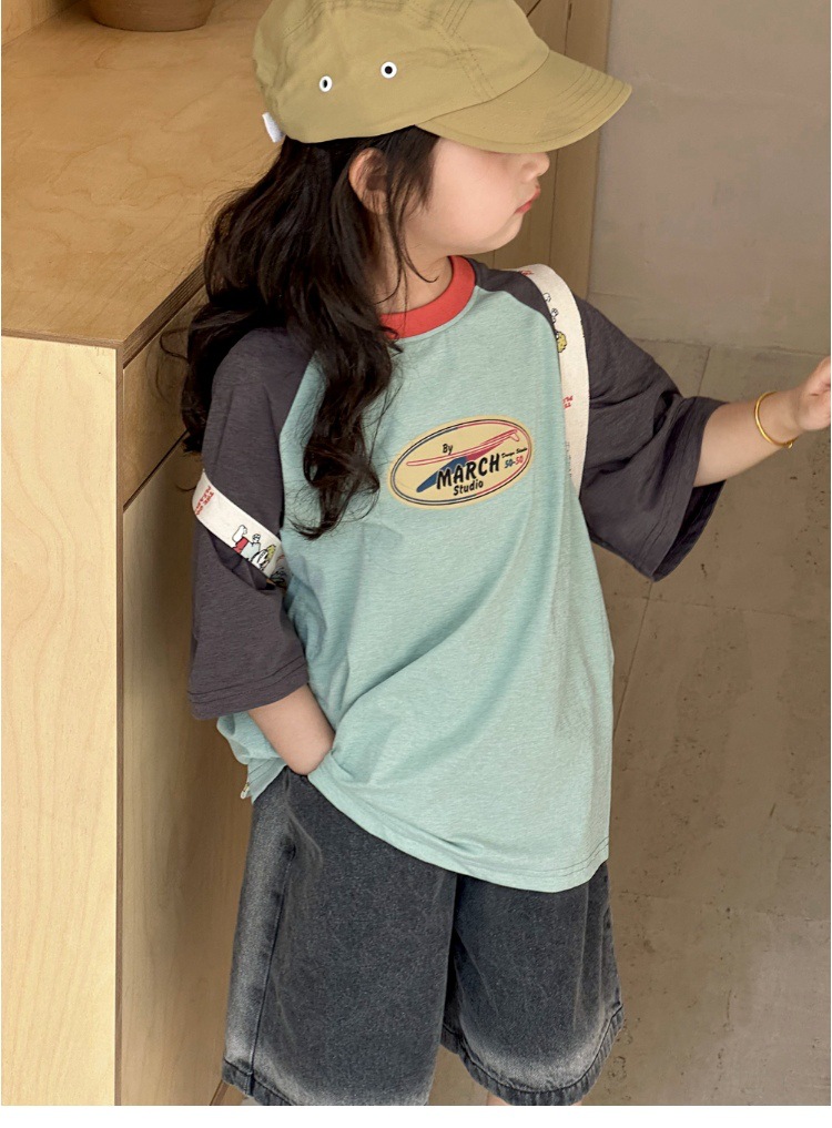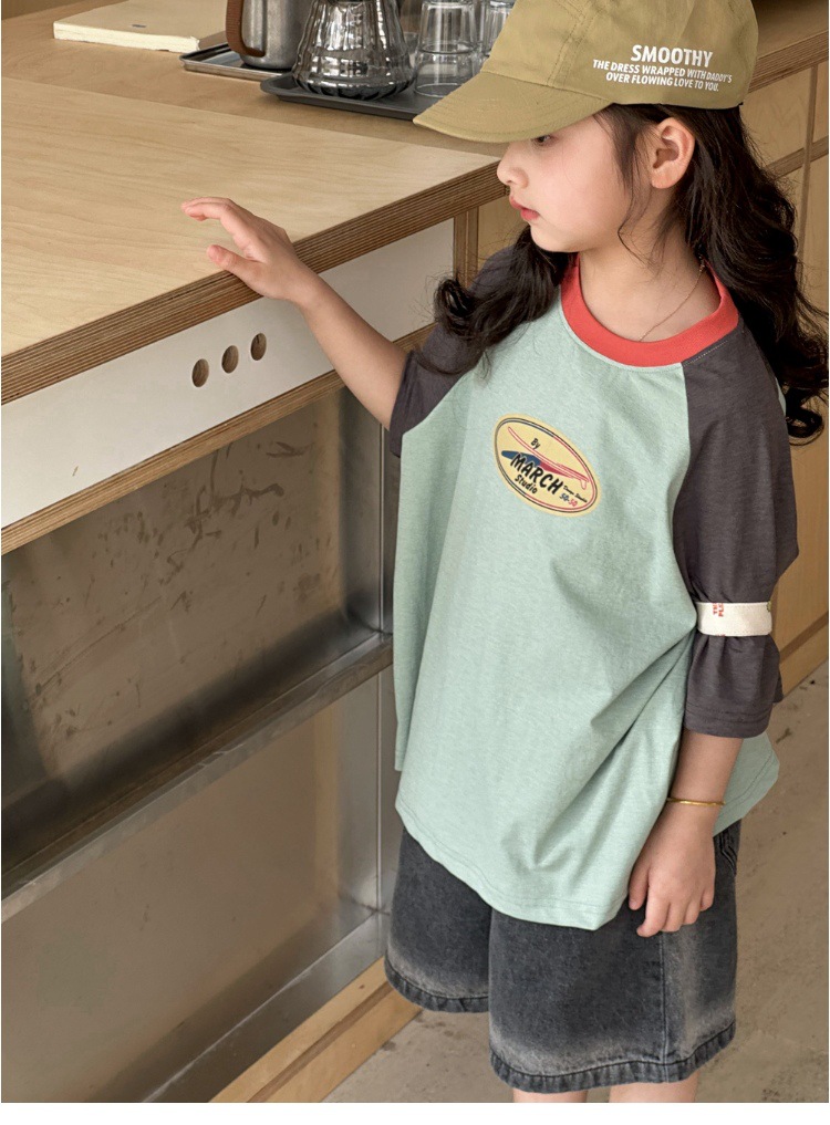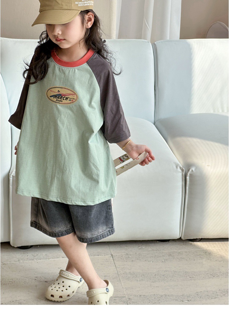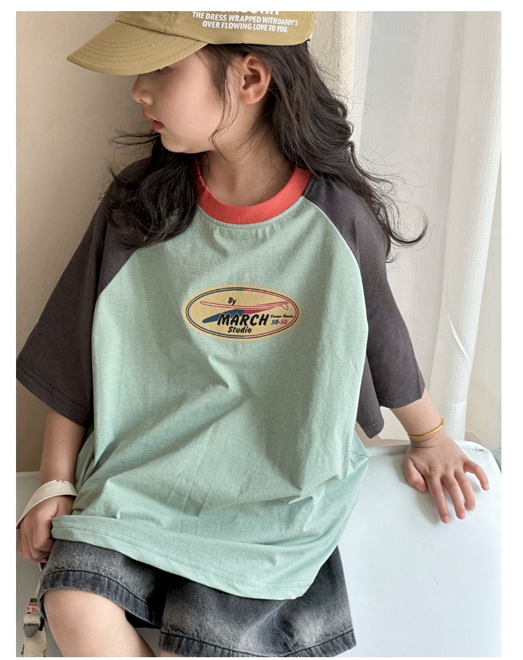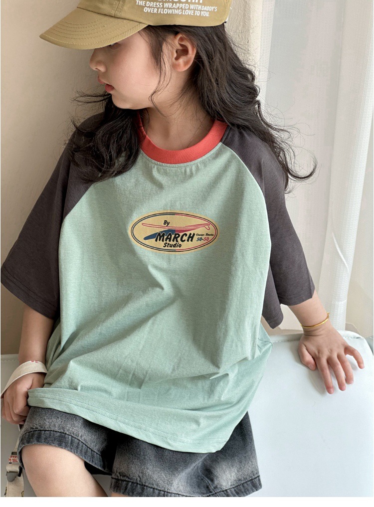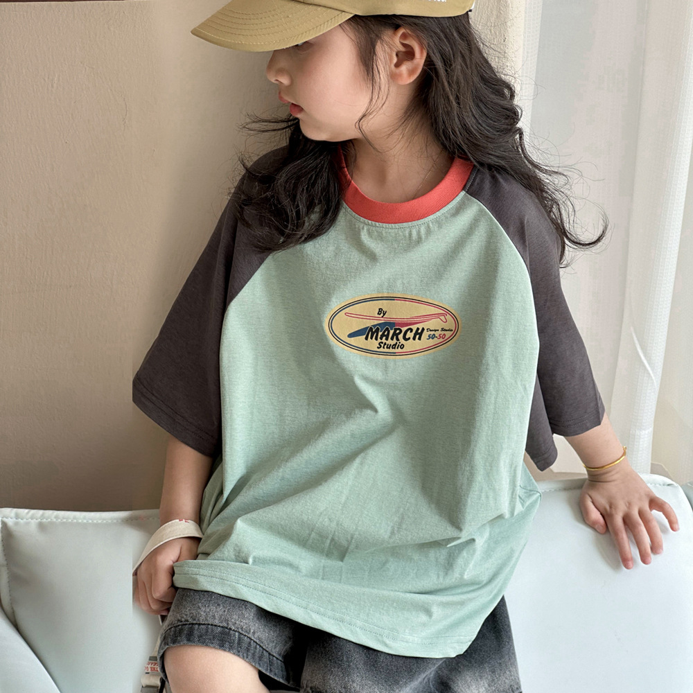 아동용 반팔 티셔츠 2025 여름 새 스타일 소녀 라글란 슬리브 티셔츠 중형 및 대형 아동용 여름 루즈 캐주얼 탑스토어 가기