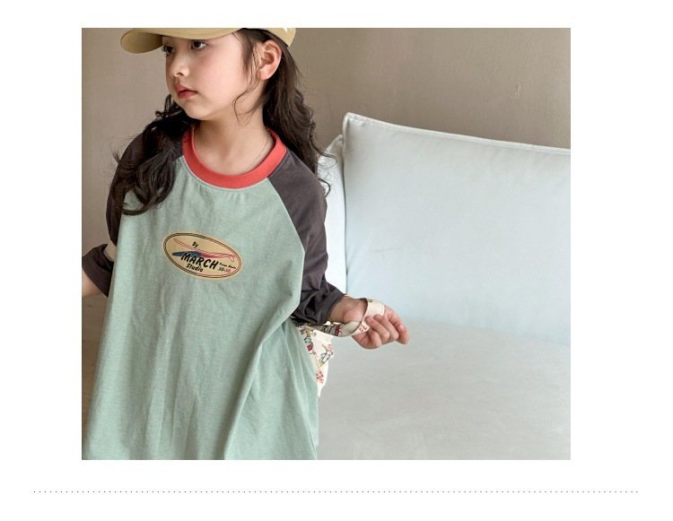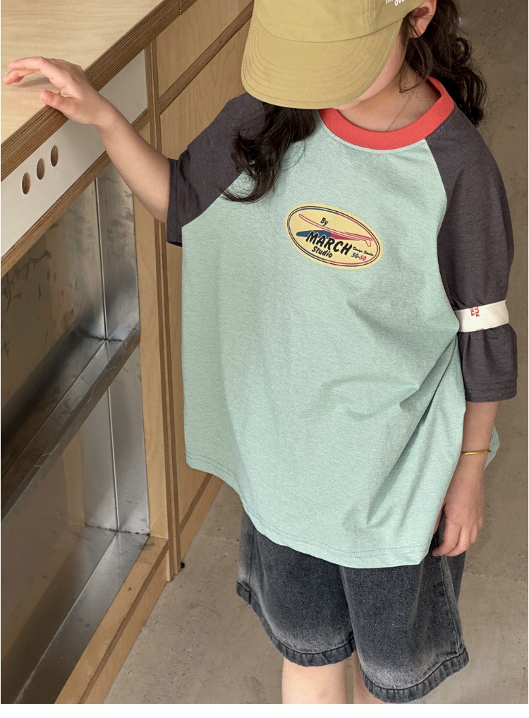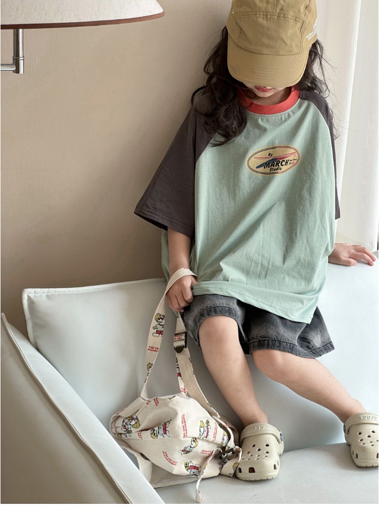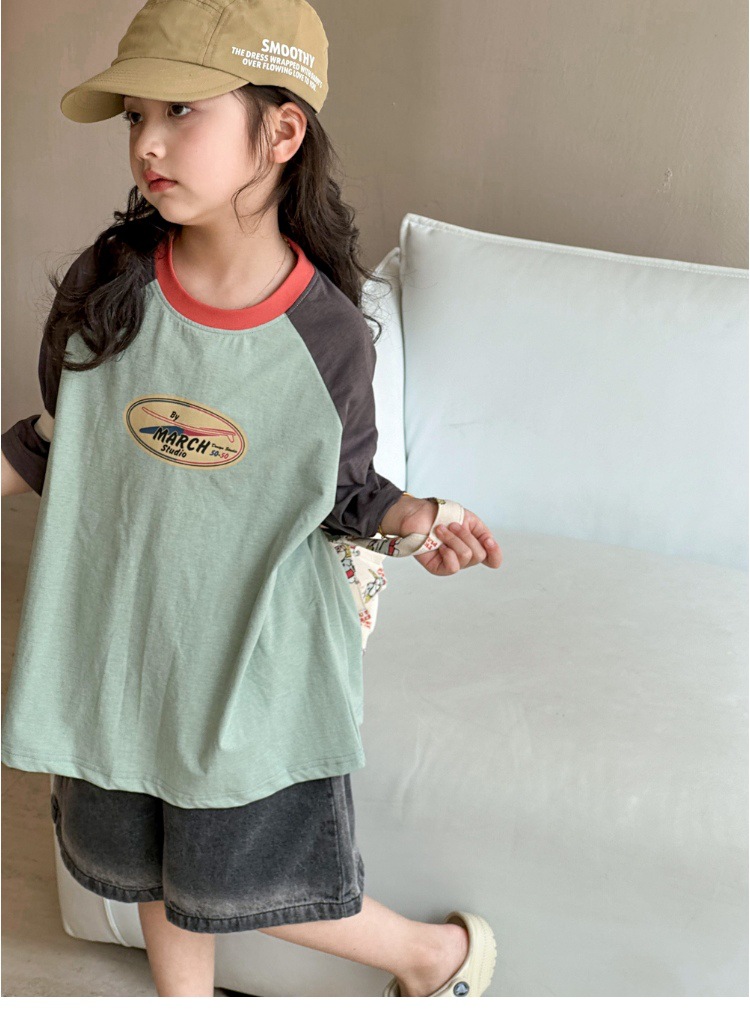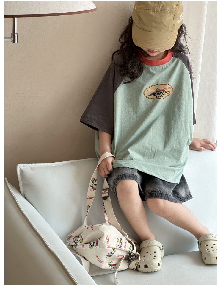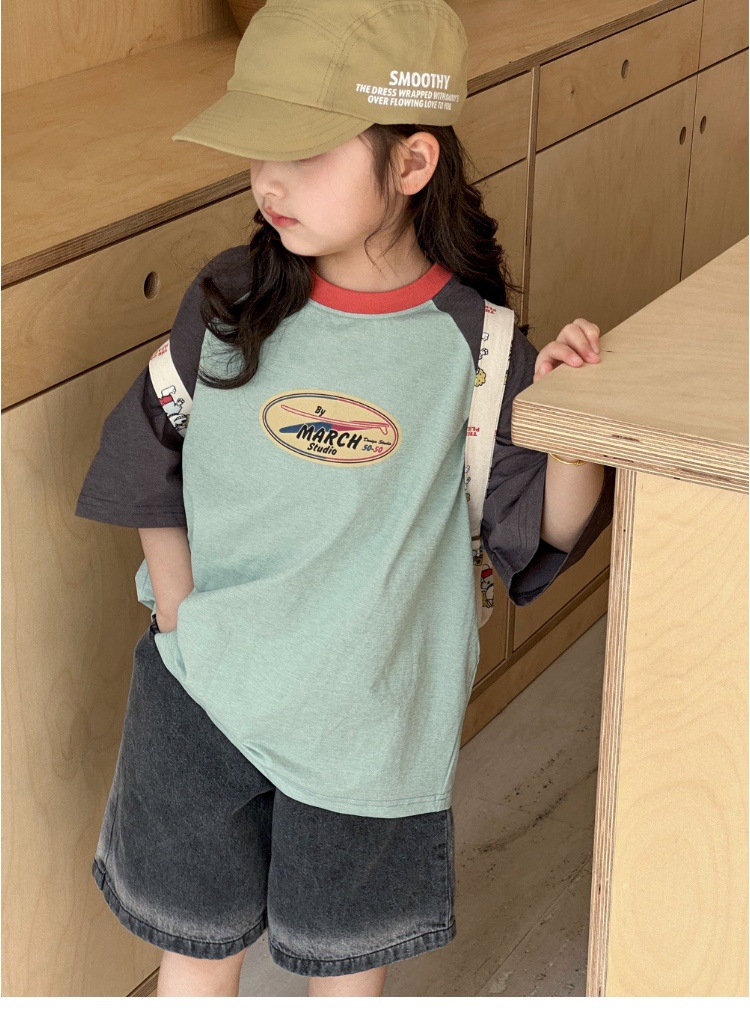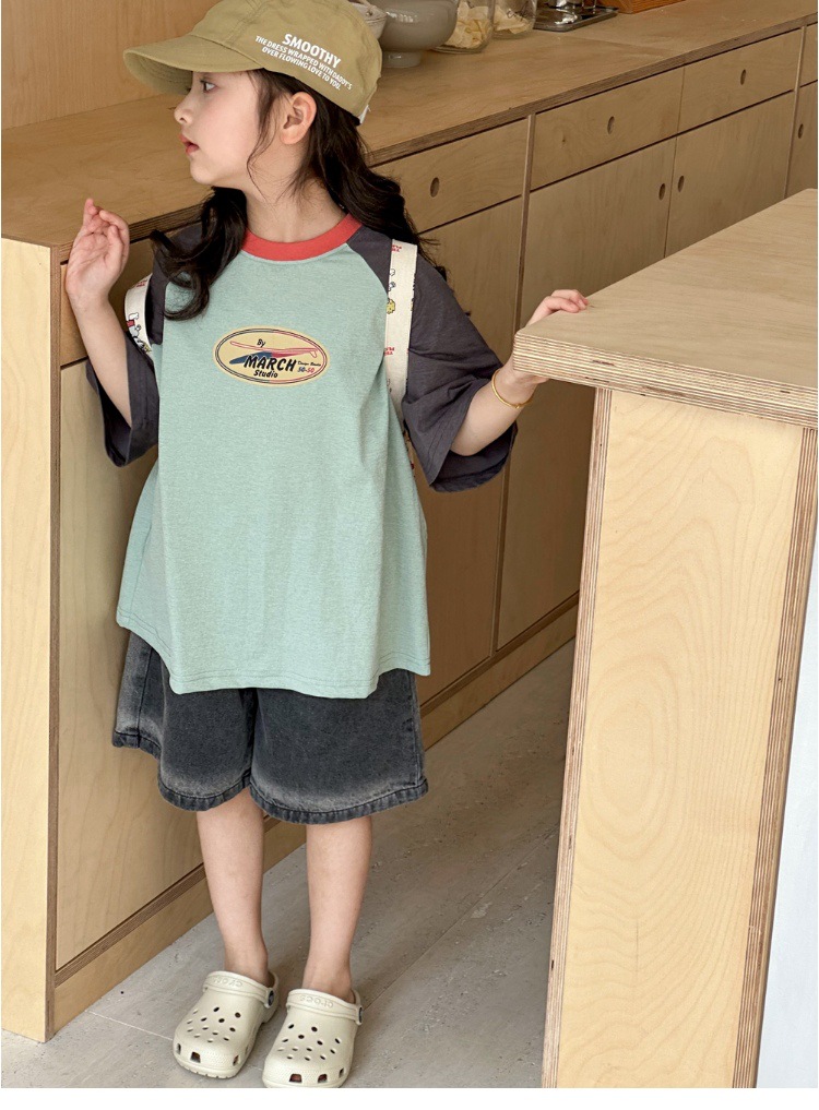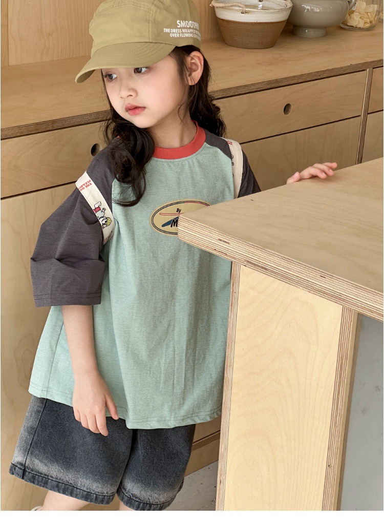 아동용 반팔 티셔츠 2025 여름 새 스타일 소녀 라글란 슬리브 티셔츠 중형 및 대형 아동용 여름 루즈 캐주얼 탑스토어 가기