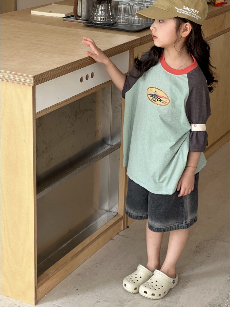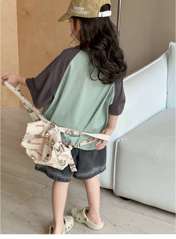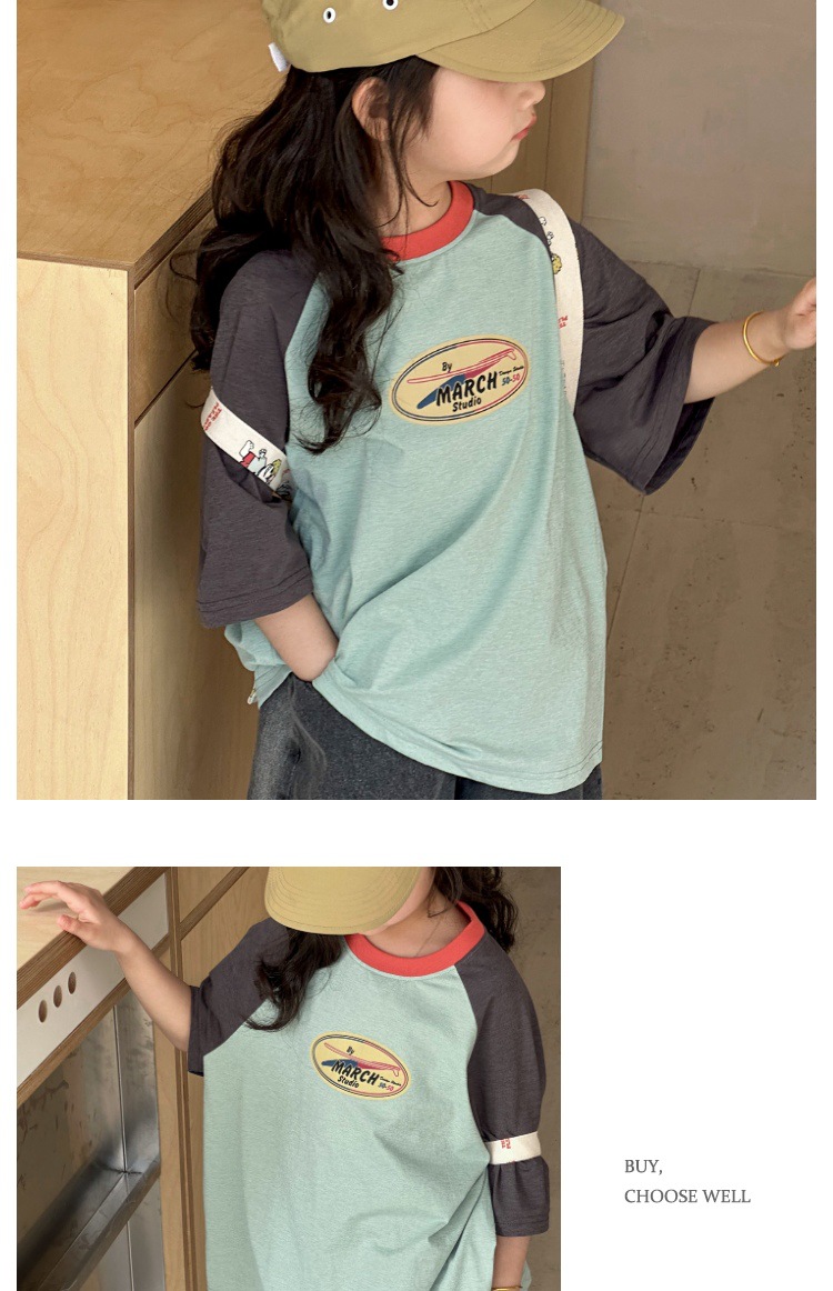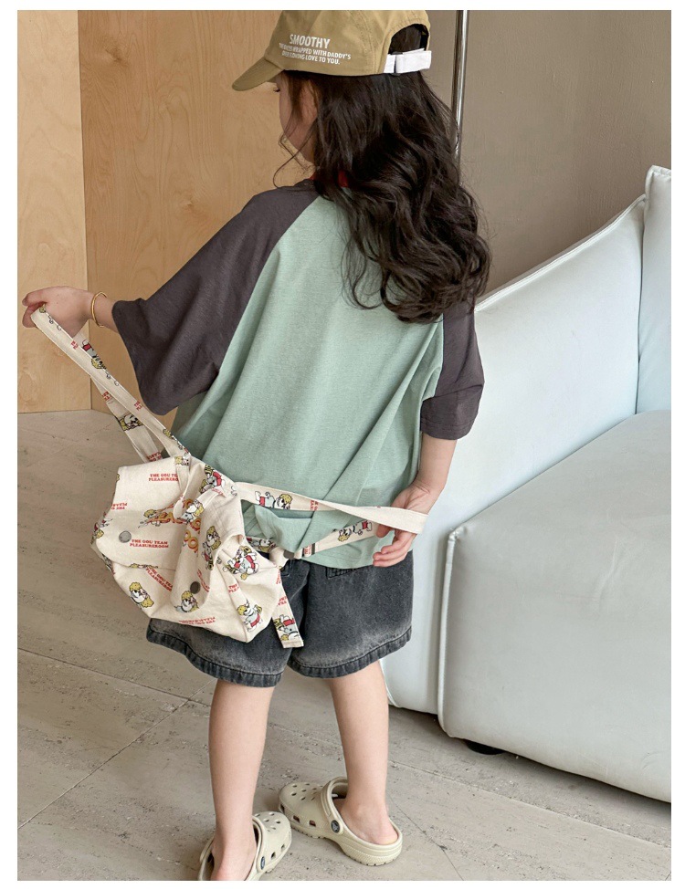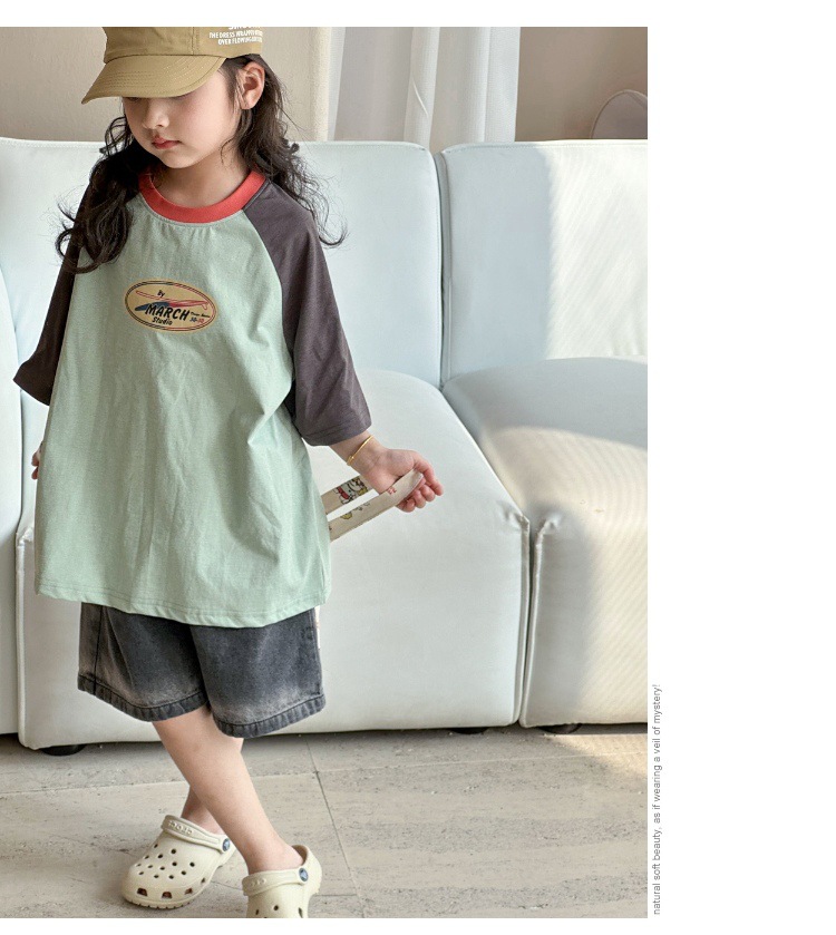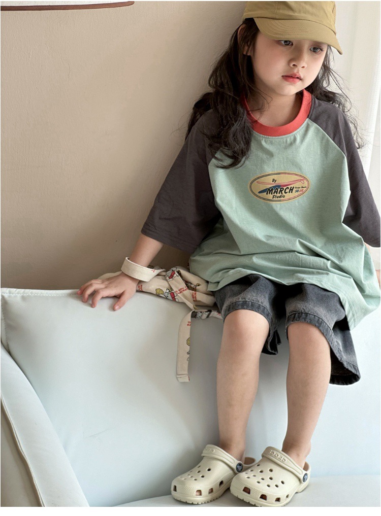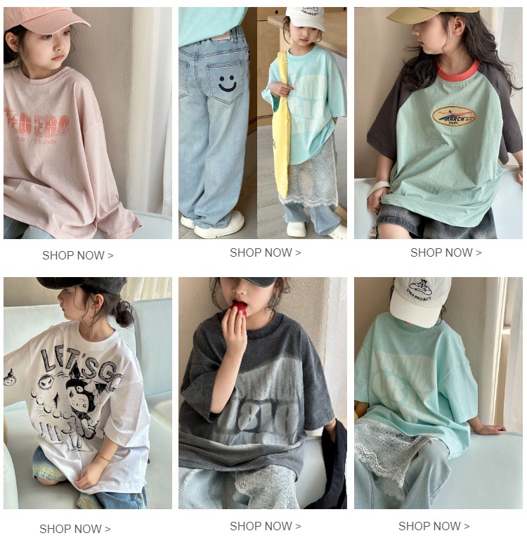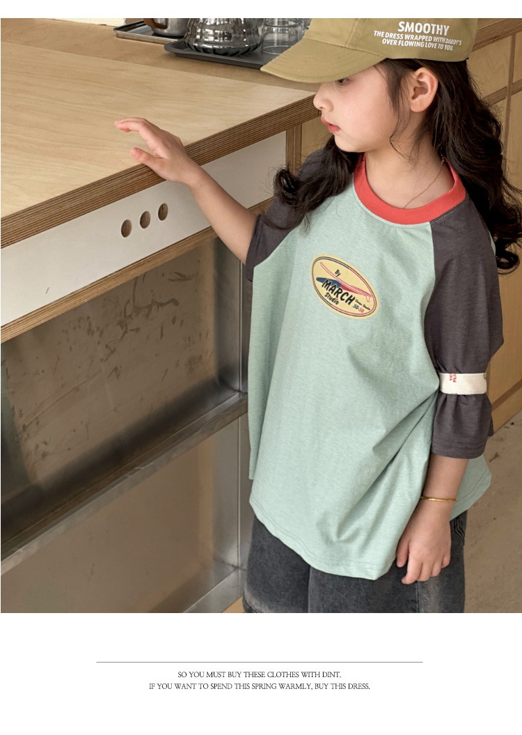 아동용 반팔 티셔츠 2025 여름 새 스타일 소녀 라글란 슬리브 티셔츠 중형 및 대형 아동용 여름 루즈 캐주얼 탑스토어 가기