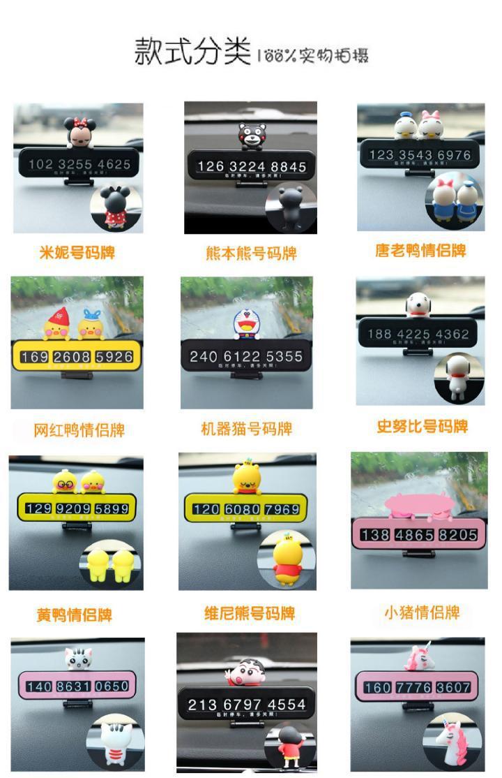 창조적 인 자동차 임시 주차 플레이트 귀여운 개인화 된 만화 3 차원 빛나는 자동차 휴대 전화 번호 플레이트스토어 가기