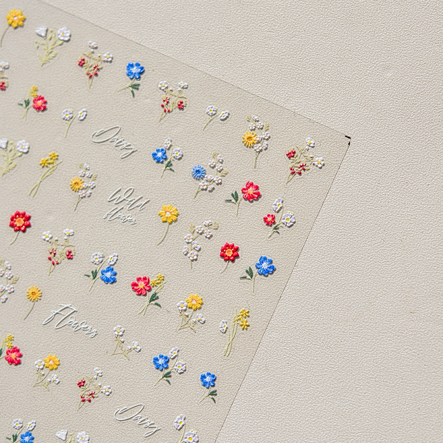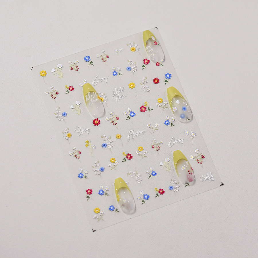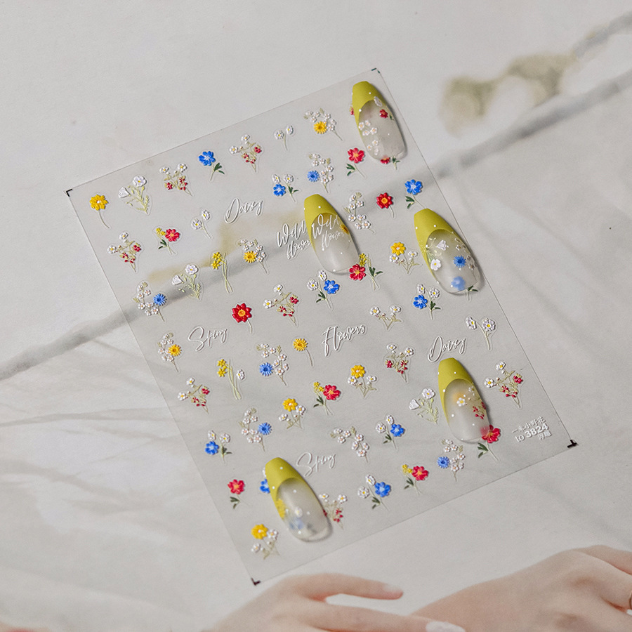 작은 신선한 봄 야생 꽃 양각 쉘 라이트 네일 아트 스티커 튤립 작은 야생 꽃 간단한 네일 스티커 장식