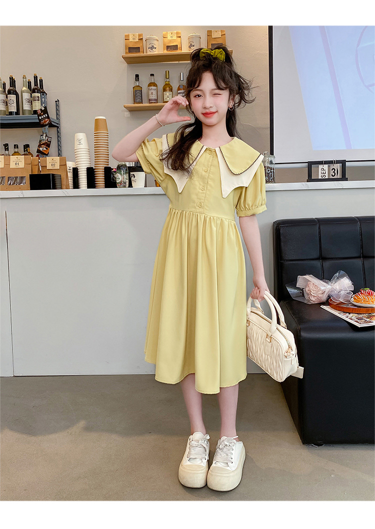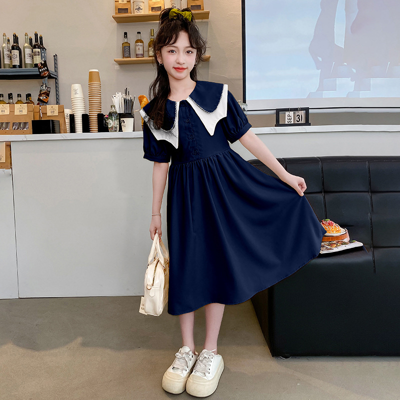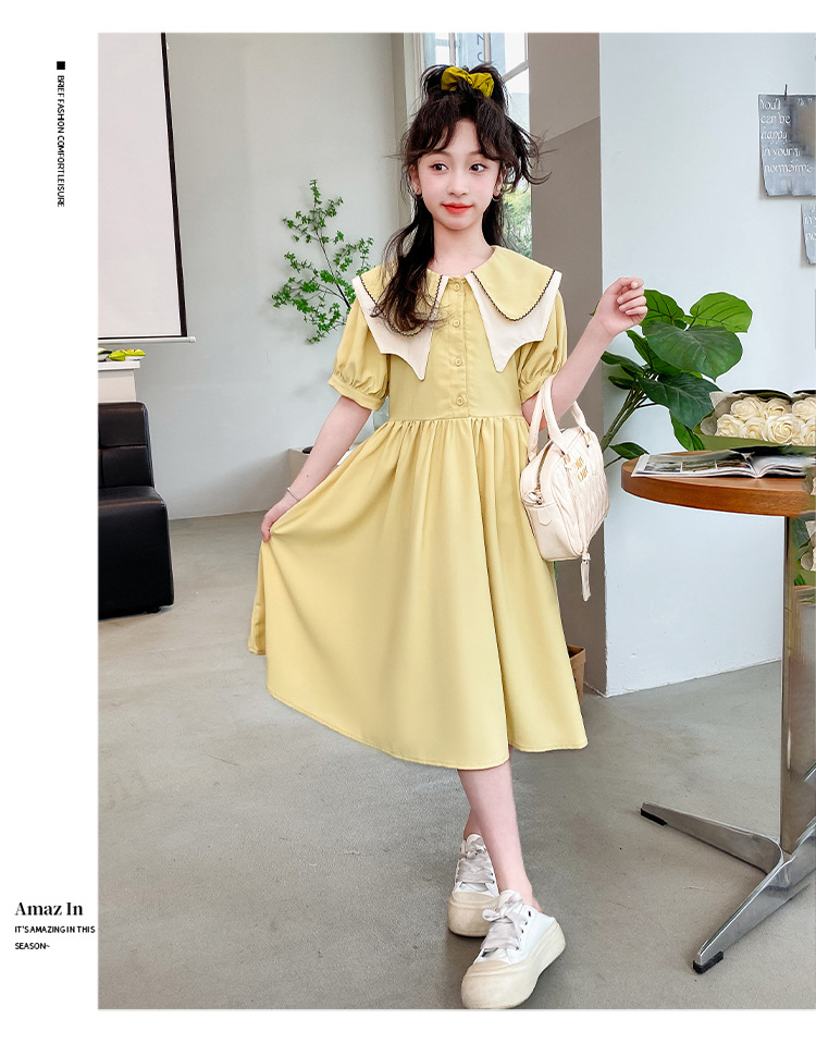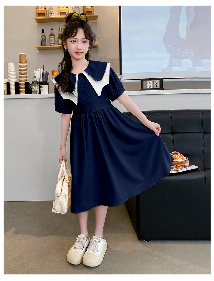 소녀의 여름 원피스 2024 새로운 스타일 큰 소녀의 여름 시폰 더블 칼라 공주 원피스 달콤한 원피스스토어 가기