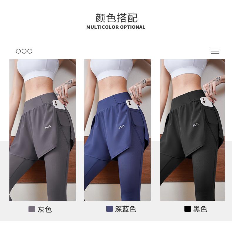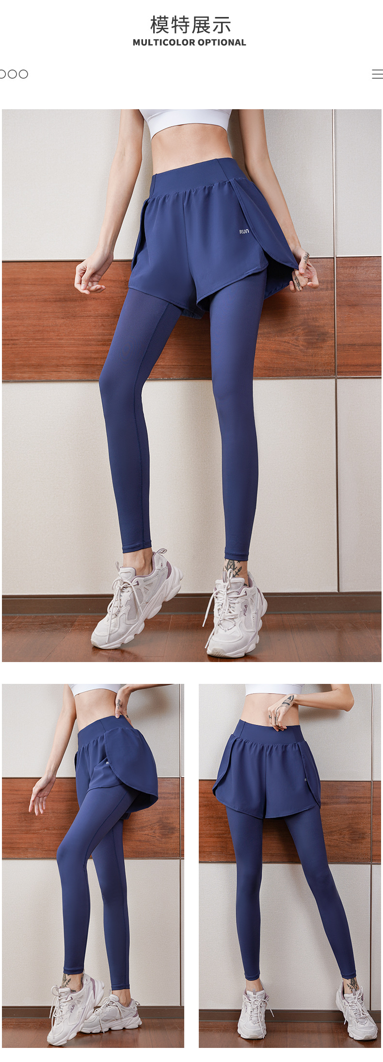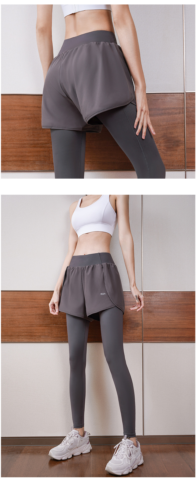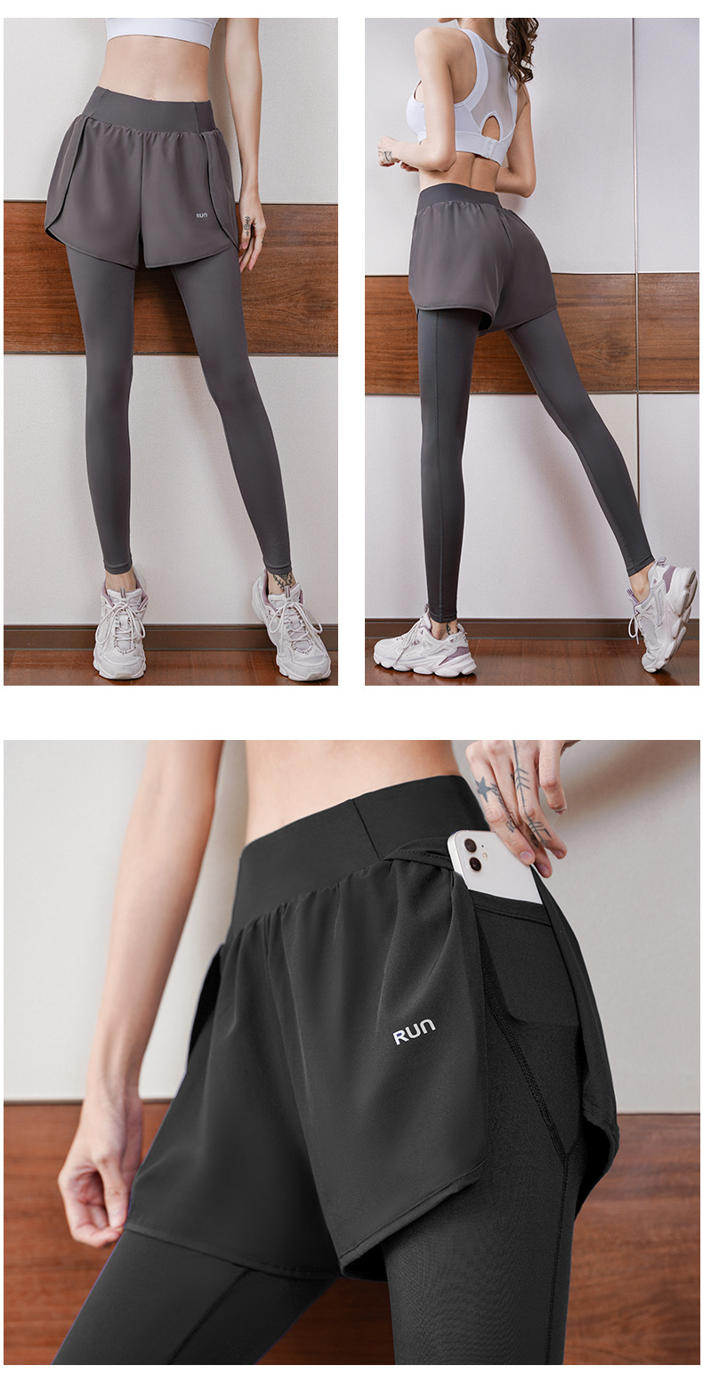 새로운 봄과 가을 가짜 투피스 스포츠 바지 빠른 건조 여성의 높은 허리 엉덩이 리프팅 러닝 피트니스 바지 노마크 알몸 요가 바지스토어 가기