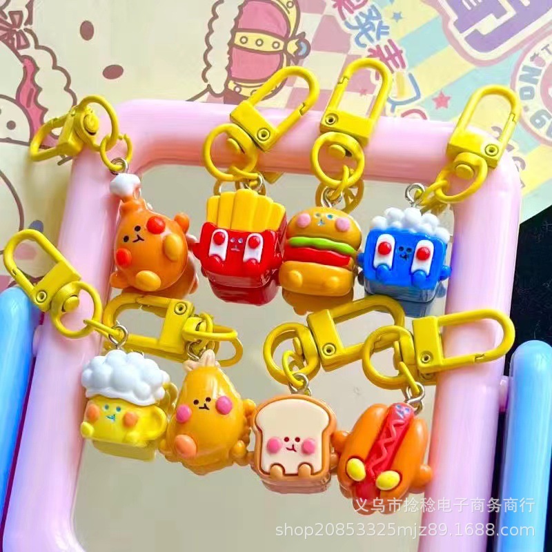 창조적 인 음식 놀이 키 체인 귀여운 시뮬레이션 함부르크 재미 여자 친구 선물 가방 펜던트 작은 교수형 장식품스토어 가기