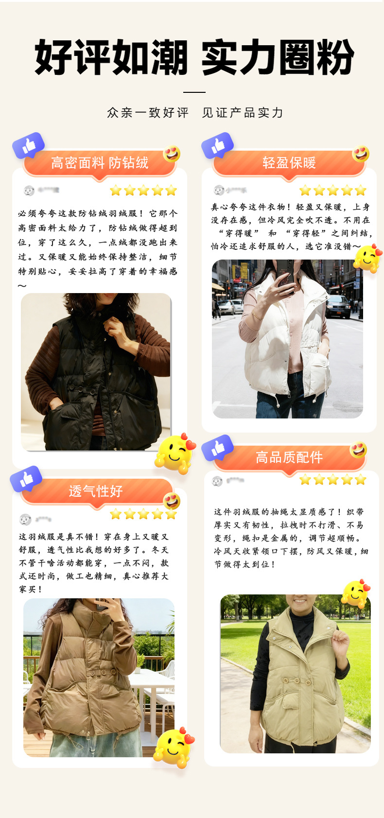 여성용 다운 조끼 겨울 신상품 고급 오리털 다운 조끼 자켓 평화 HD