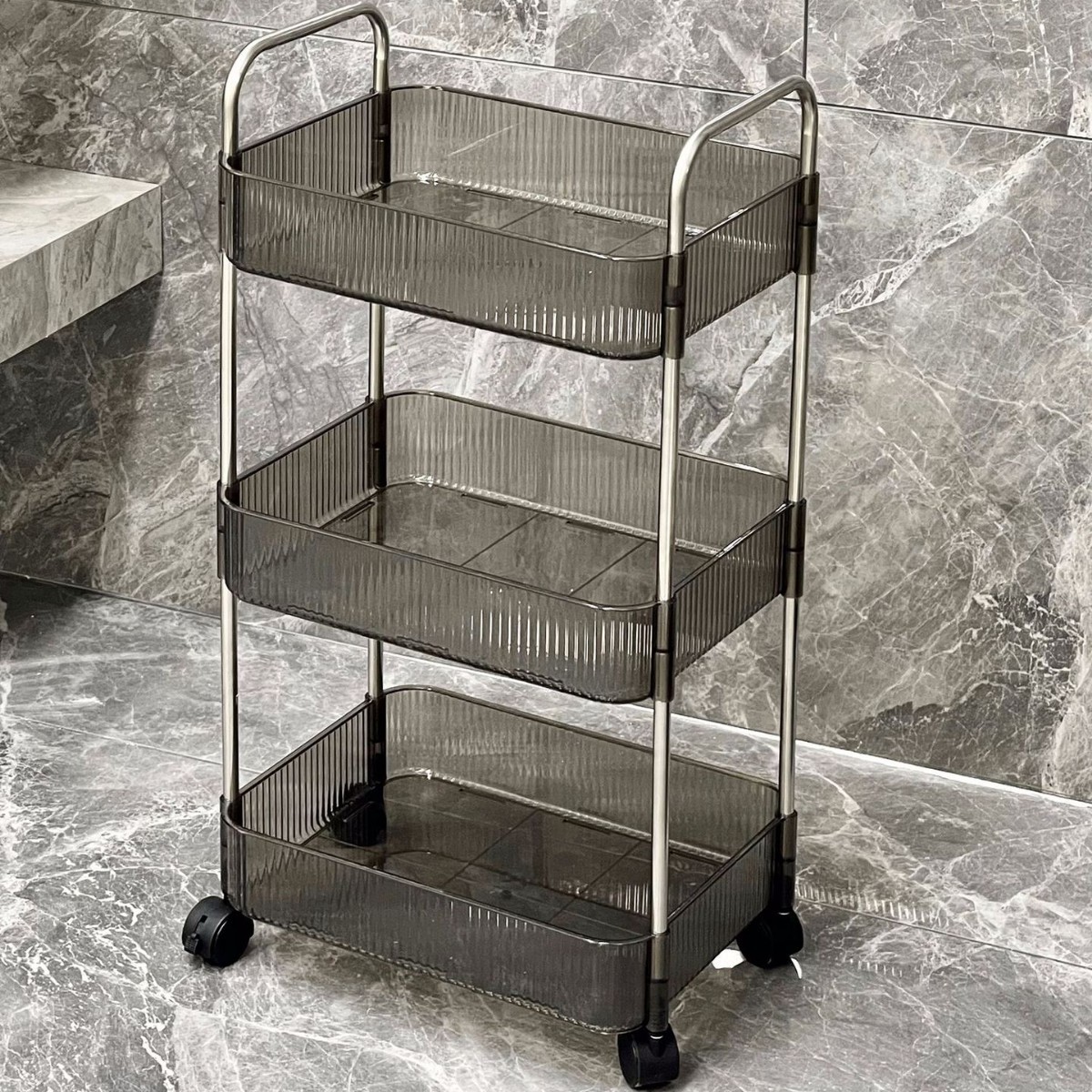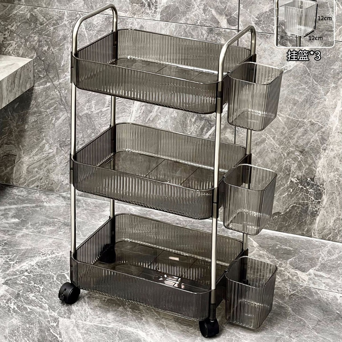• [물결무늬 반투명 그레이] 특대형 3단 + 행잉바구니
