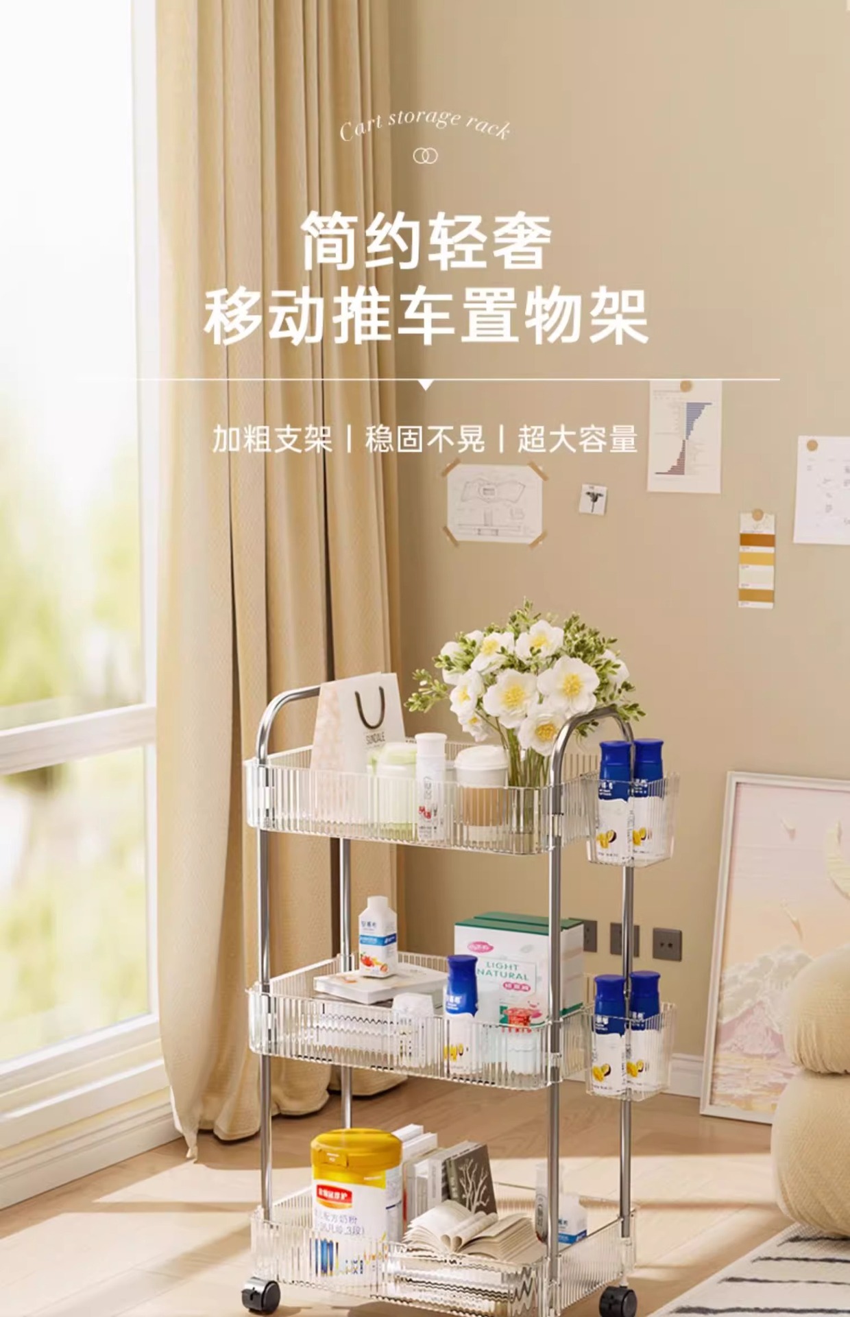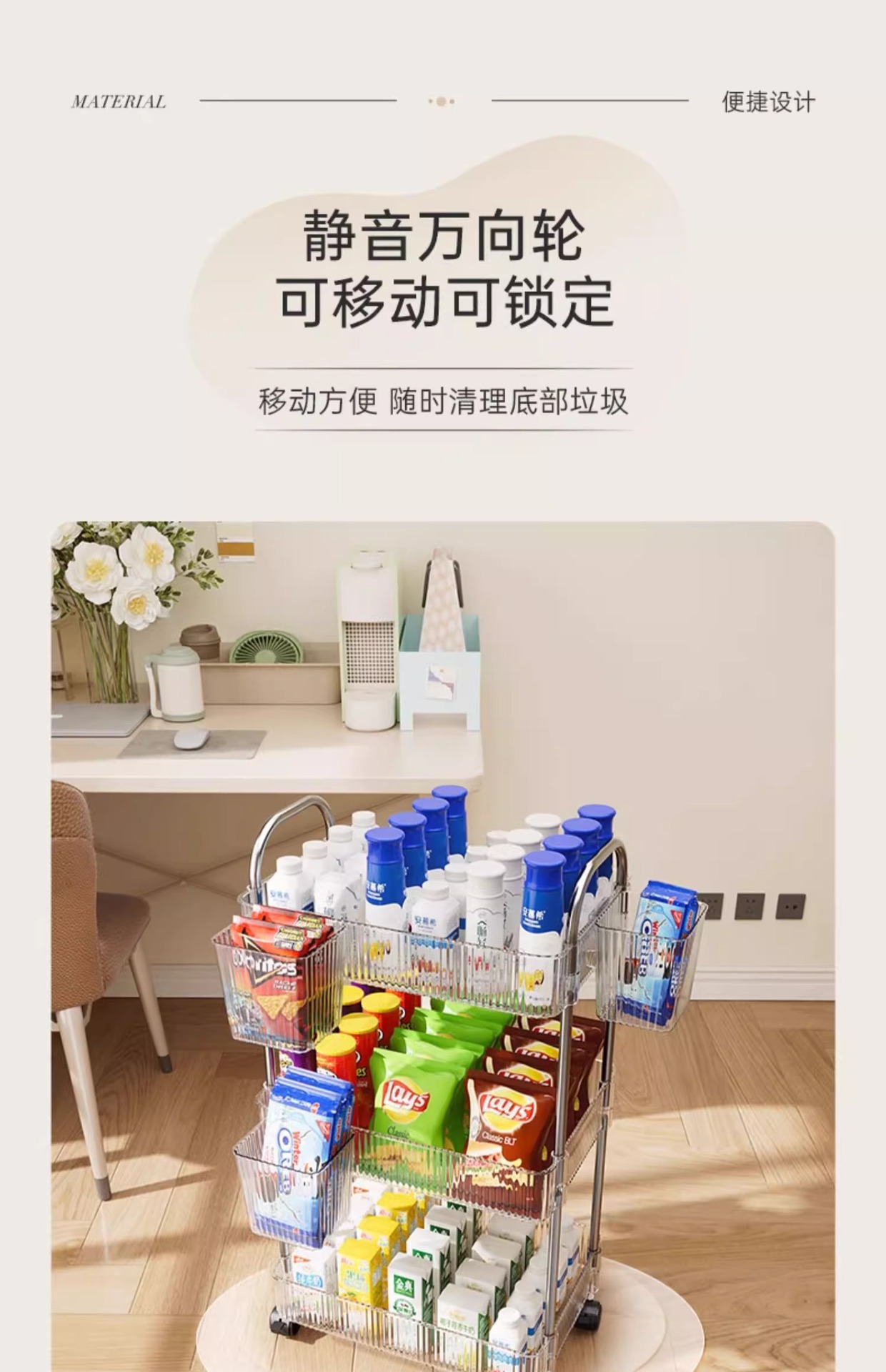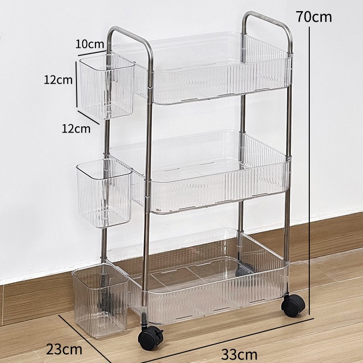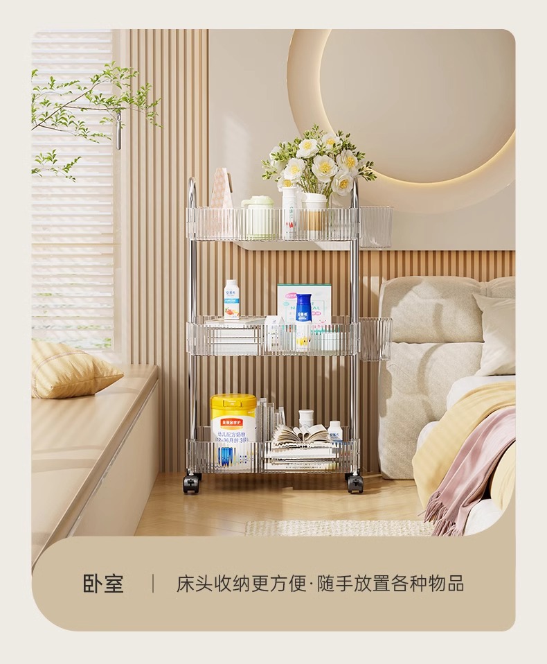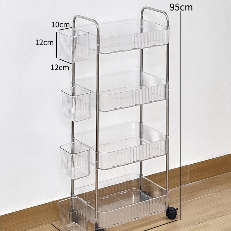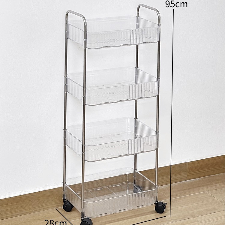 투명 카트 스토리지 랙 다층 투명 이동식 스토리지 랙 가정용 스낵 다기능 바닥 뷰티 카