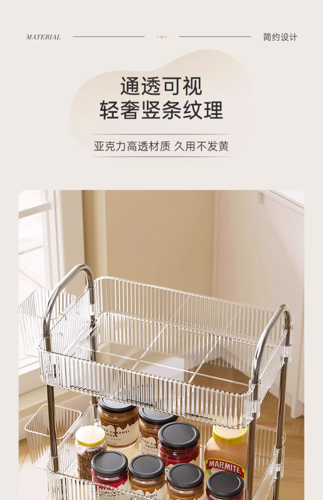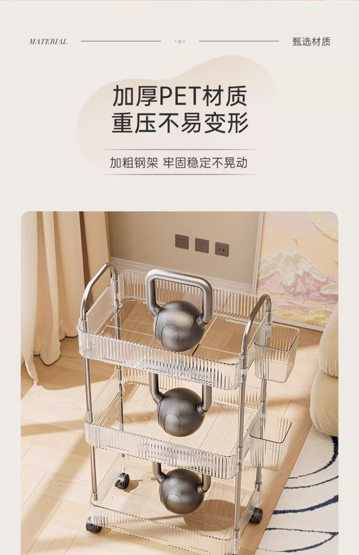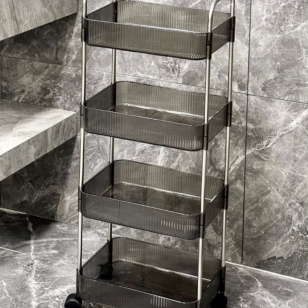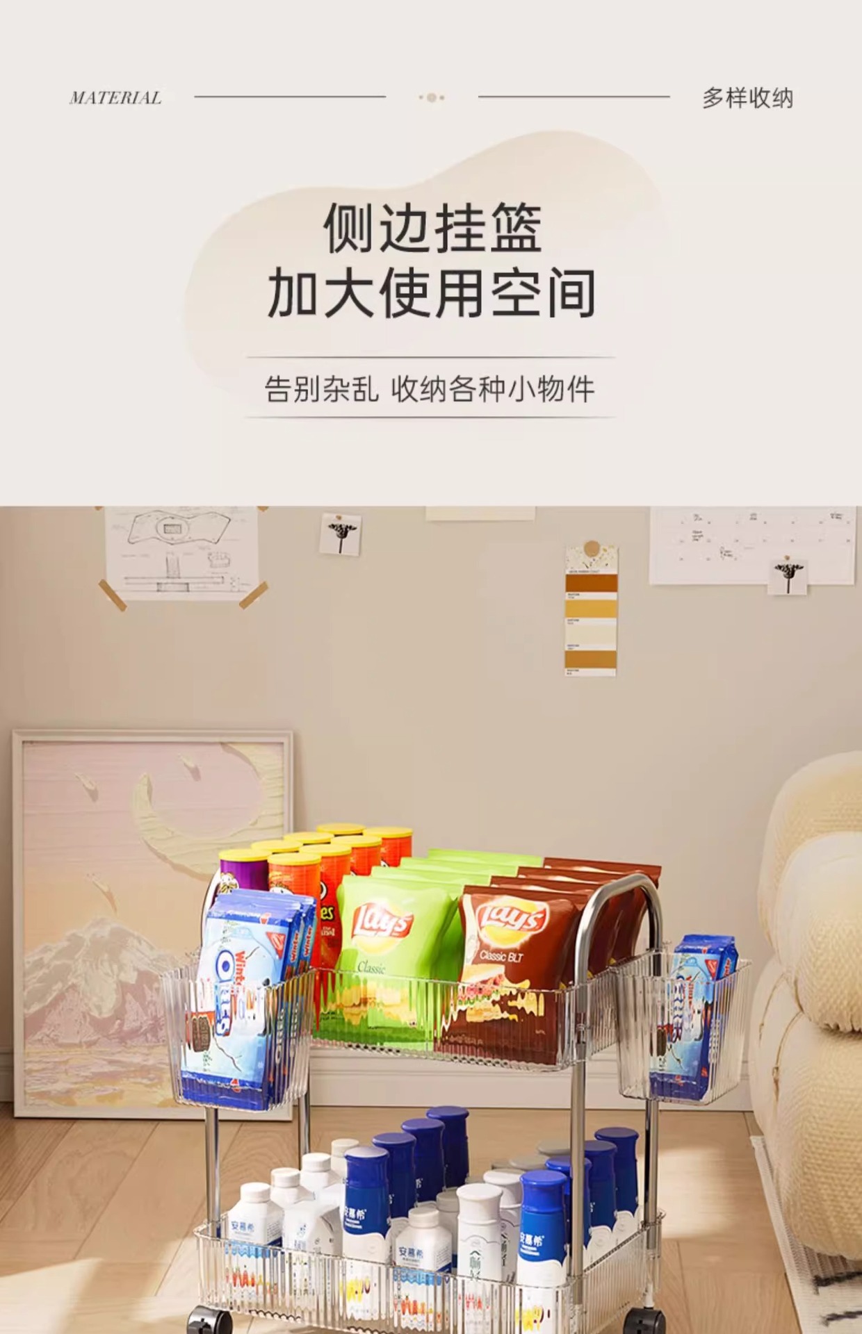 투명 카트 스토리지 랙 다층 투명 이동식 스토리지 랙 가정용 스낵 다기능 바닥 뷰티 카