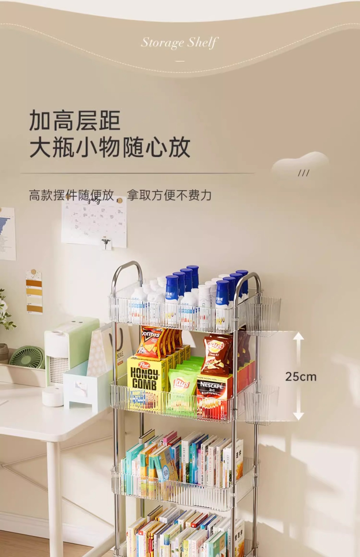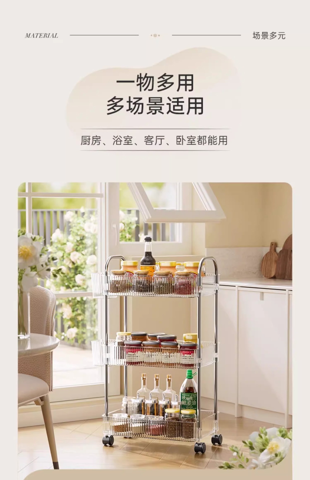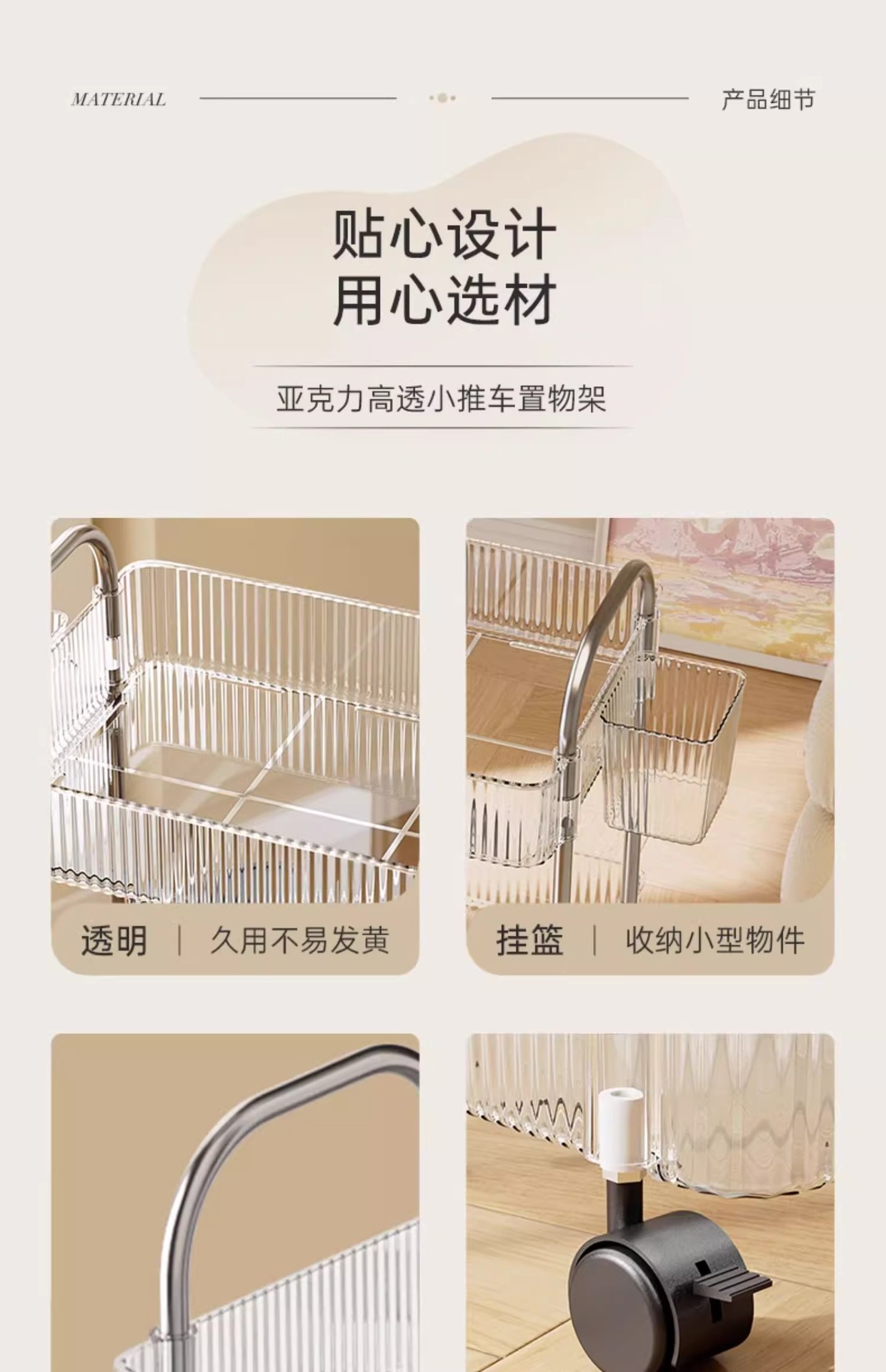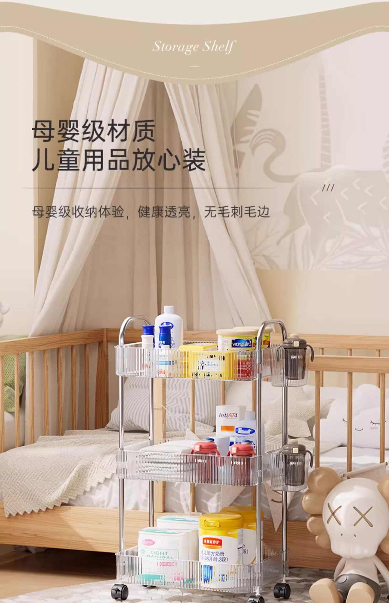 투명 카트 스토리지 랙 다층 투명 이동식 스토리지 랙 가정용 스낵 다기능 바닥 뷰티 카